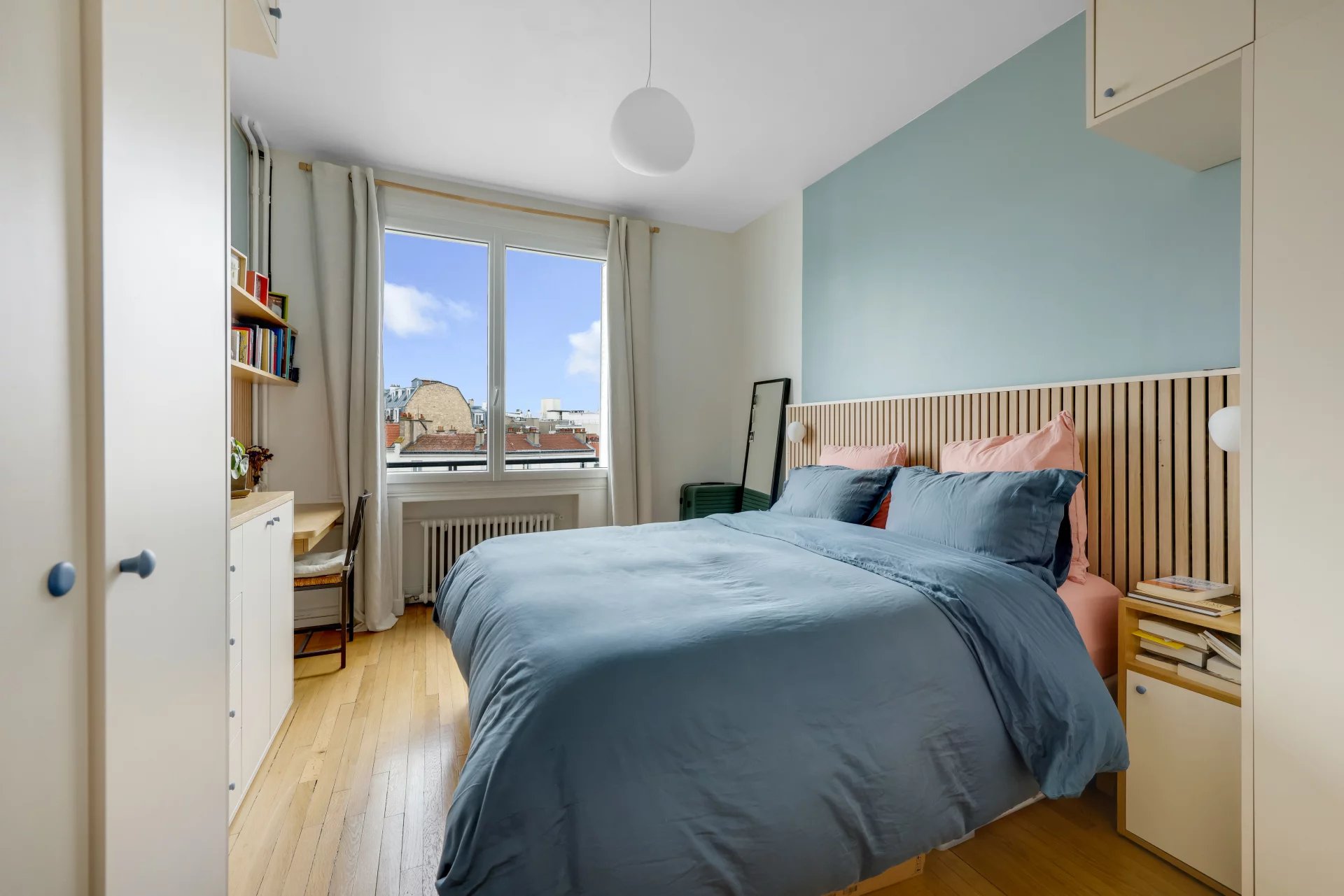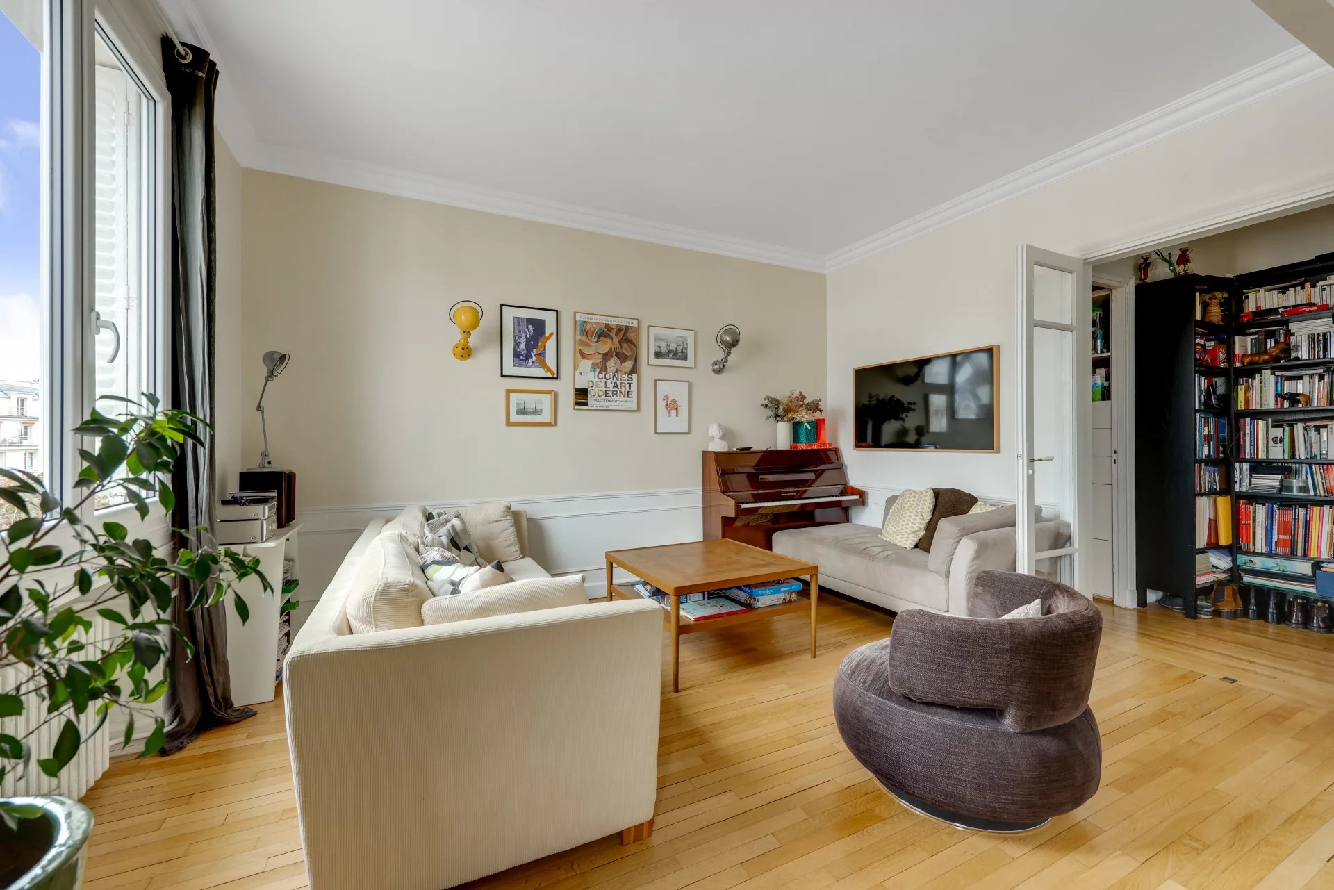 AUTEUIL SUD APPARTEMENT baigné de lumière, de 102m² au 6ème et avant dernier étage d'un immeuble de 1947 bien entretenu, avec une vue sud-Ouest très dégagée.