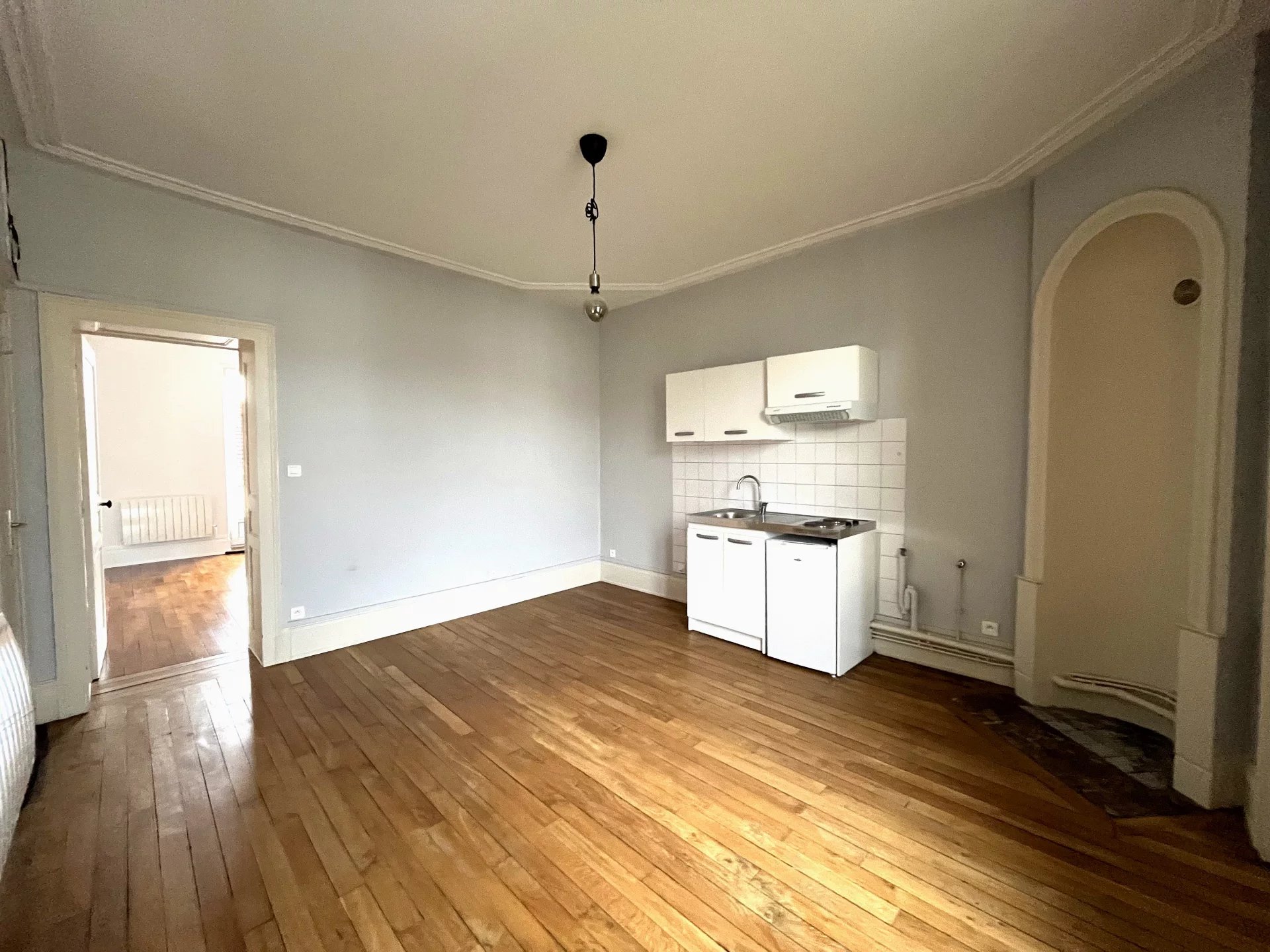 Appartement T2 rénové, situé au 3ème et dernier étage d'un petit immeuble proche du quartier du Faubourg des Trois Maisons. A proximités des commodités, des lignes de bus 12,13 et 16 et à 5 minutes à pieds du parc de la Pépinière. Ce bien se compose d'une entrée sur le pièce de vie avec un coin kitchenette, d'une chambre et d'une salle de bains avec WC. Chauffage individuel électrique.