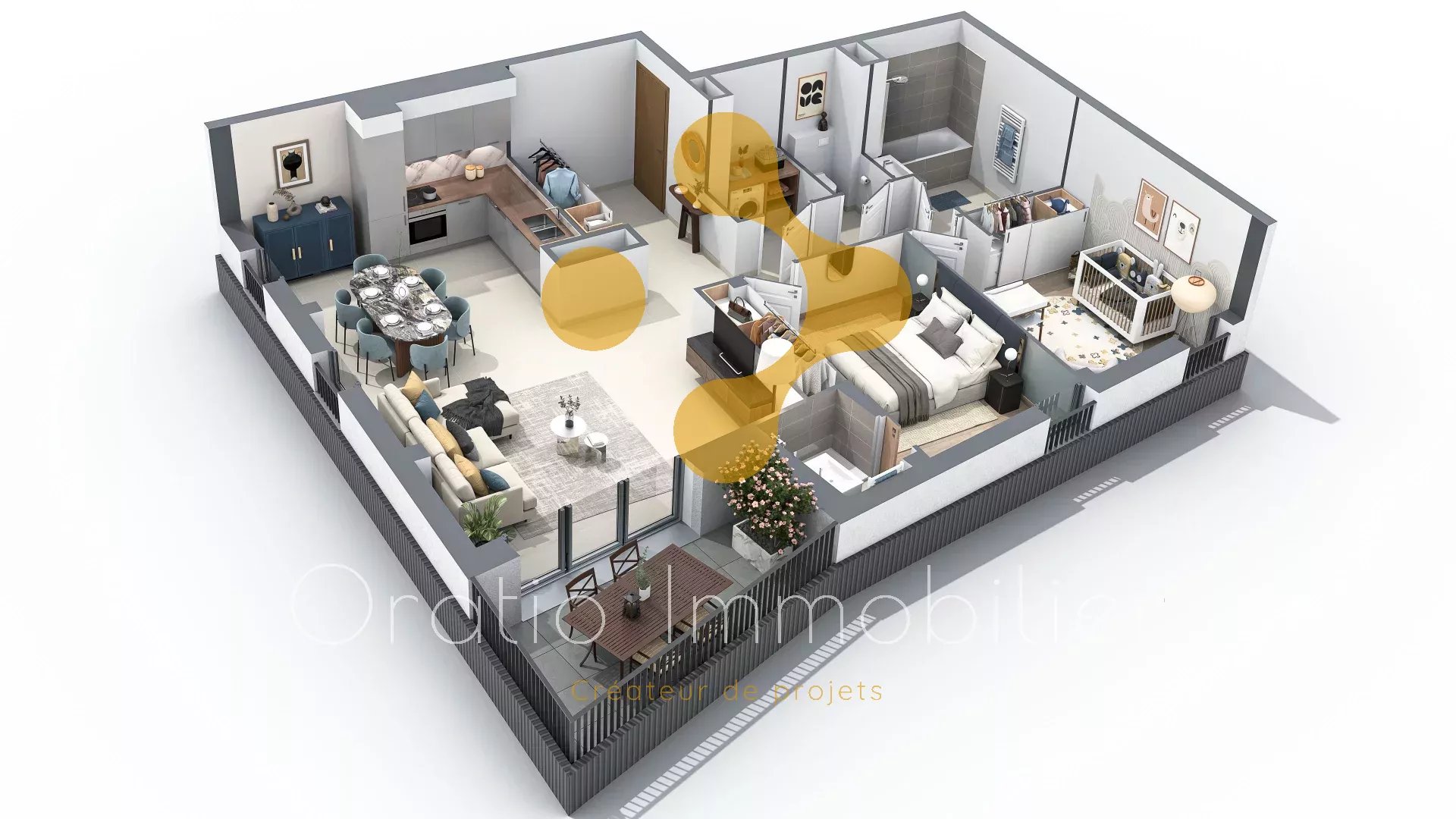 Il comprend un séjour/Cuisine de plus de 33 m² ouvert sur un large balcon, 3 grandes chambres dont une suite parentale avec salle d'eau, une salle de bains, WC séparé.