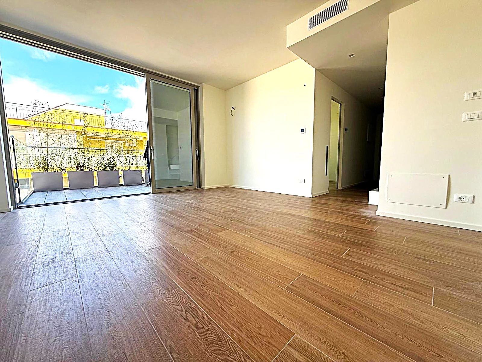 Attico di recentissima costruzione ipertecnologico in classe A4. In complesso costruito nel 2023 a soli 100 Mq. dal mare, Al terzo e quarto piano questo alloggio offre la sua unicitàper posil'appartamento è gestito da un impianto di condizionamento in tutte le stanze. . Inoltre un posto auto coperto di circa 15 mq.zionamento con vista aperta ed una vivibilità a misura d'uomo. Giunti all'allogio con ascensore si ha un ingresso con salone e cucina a vista con balcone, due camere un bagno, una grande terra di 50 mq. al piano superiore una metratura totale di mq.90