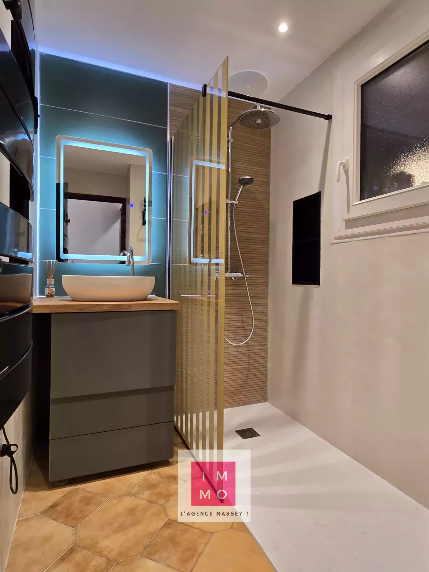 - une chambre confortable, une salle d'eau avec douche à l'italienne (rénovation récente) et un toilette séparé.