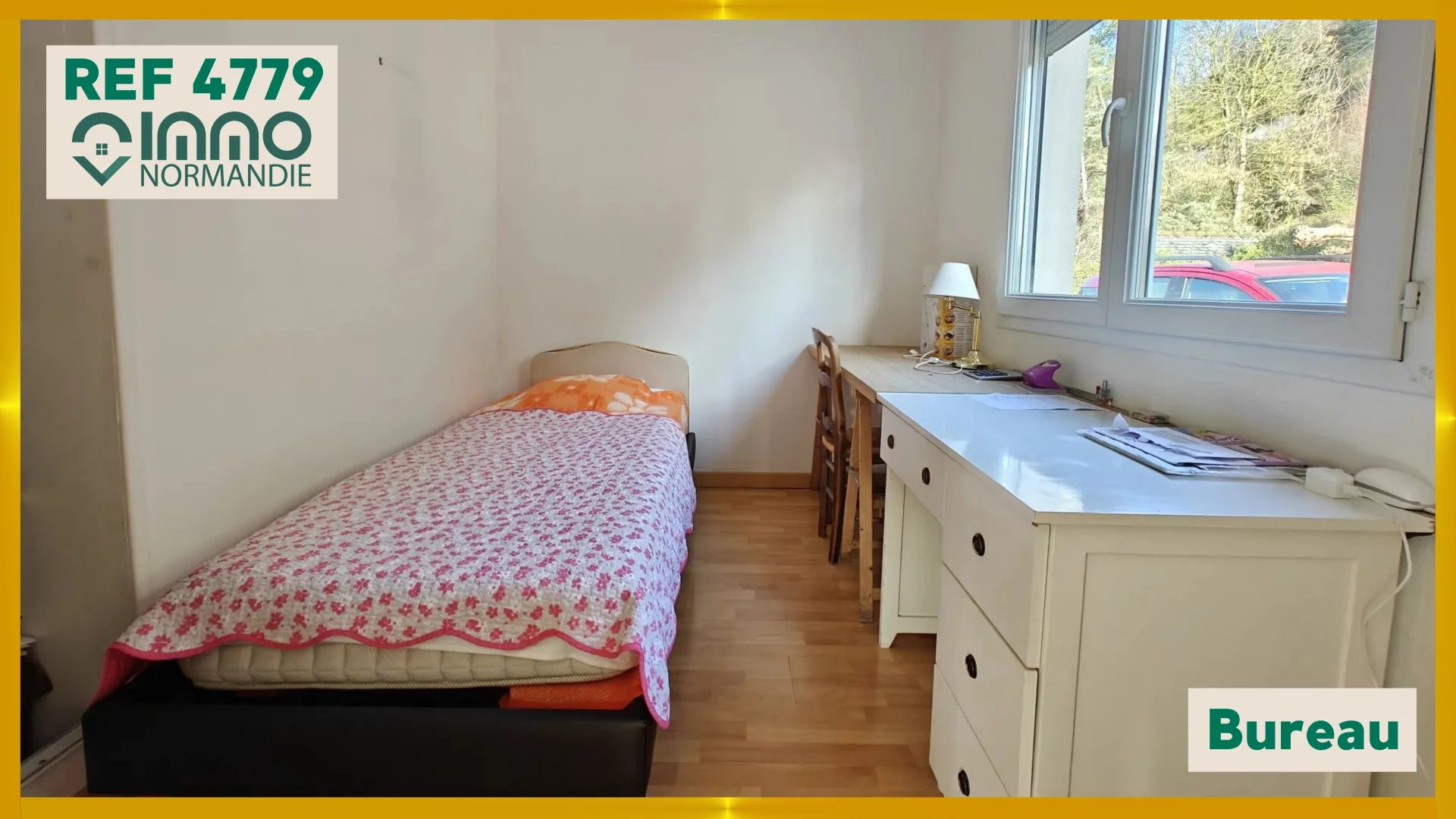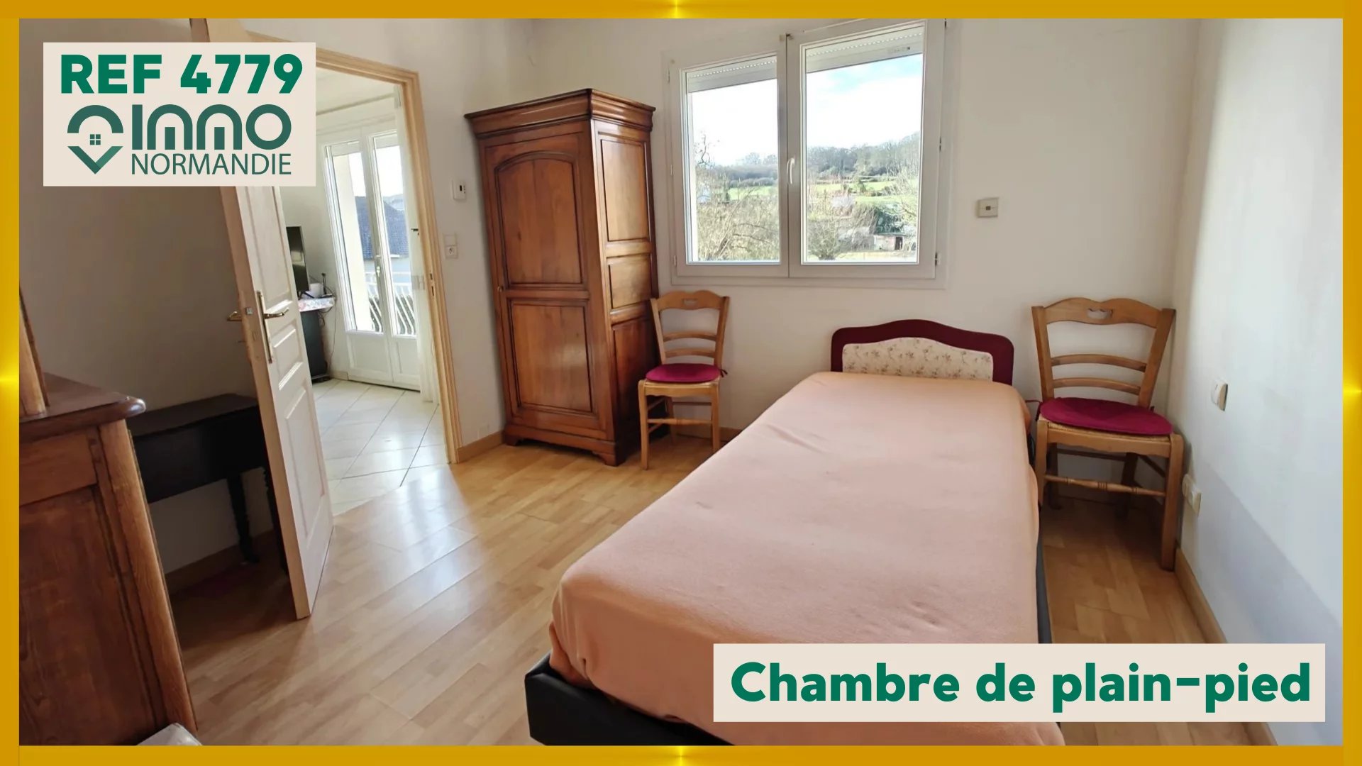 Maison vivable de plain-pied sur sous-sol comprenant : RDC : entrée, salon/séjour avec cuisine ouverte, chambre, bureau, salle de douche avec WC. A l'étage : palier, chambre, WC avec point d'eau. RDJ : double garage avec buanderie. Chauffage au sol électrique, PVC double vitrage, volets roulants électriques, tout à l'égout. Terrain de 1.315m².