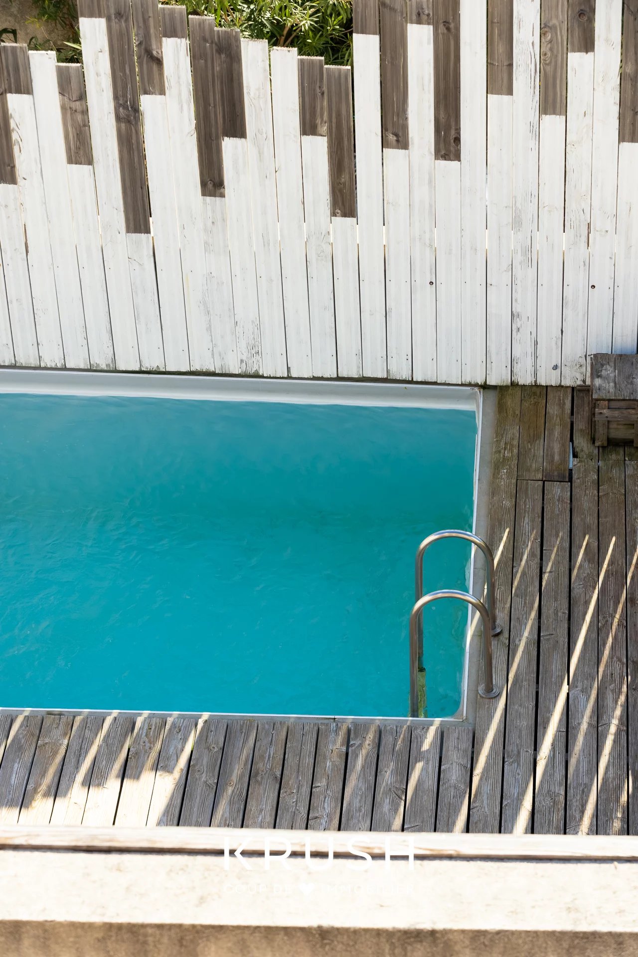 Dès l’entrée, les volumes respirent. Le salon s’articule autour d’une cuisine ouverte contemporaine, conviviale, parfaitement intégrée. Les baies s’effacent et prolongent naturellement l’espace vers une terrasse avec piscine. La frontière entre dedans et dehors disparaît. On passe du café du matin au plongeon de 18h sans y penser. Et que dire des flambées dans la cheminée en hiver ? (si si ça arrive, surtout en ce moment !)