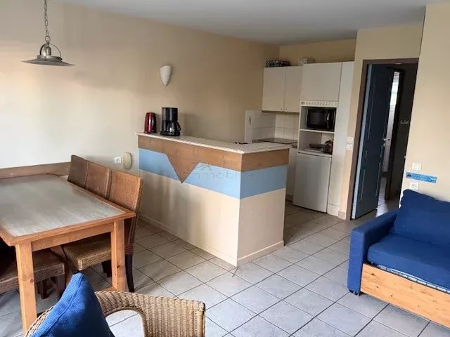 Maison dans le domaine de belle dune à proximité du centre, comprenant : une entrée, un séjour avec cuisine ouverte donnant accès sur une terrasse, une petite chambre, une salle de douche avec toilette, à l'étage : un palier, une chambre et une salle de bain. + Un cellier