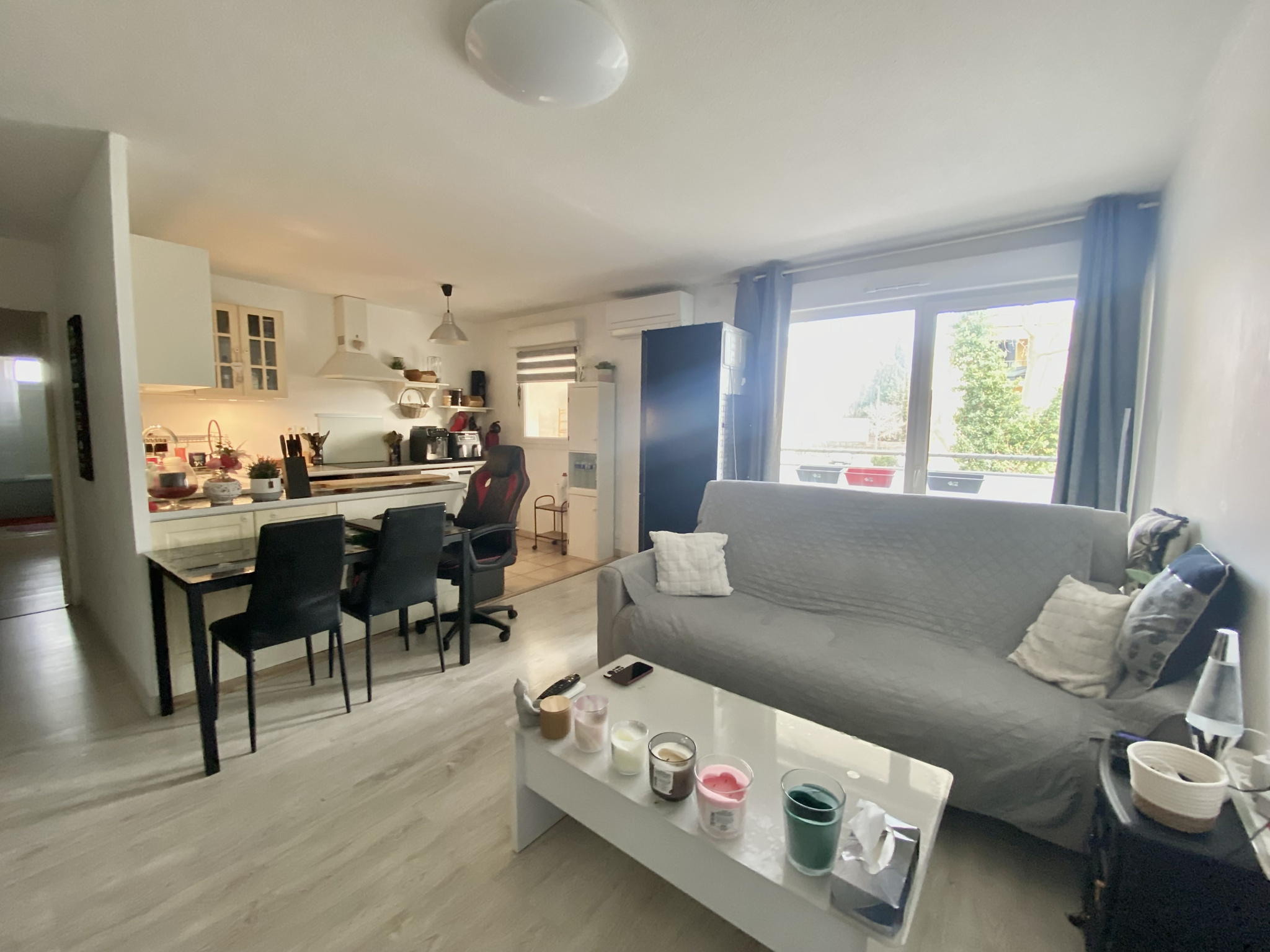 Il se compose d'un séjour agréable avec cuisine ouverte, entièrement équipée et meublée, offrant un espace de vie convivial.L'appartement dispose de deux chambres avec placards, d'un grand couloir avec rangements, d'un WC séparé et d'une salle de bains.