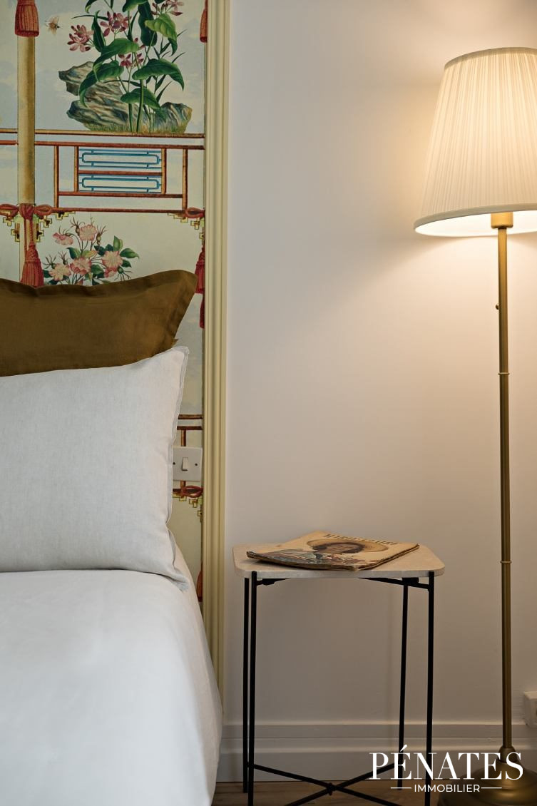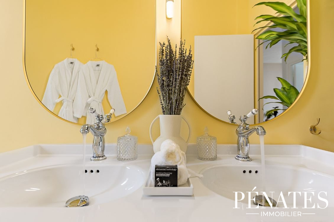 La belle hauteur sous plafond de 3,30 m renforce les volumes et la sensation d'espace, apportant un réel cachet à l'ensemble.