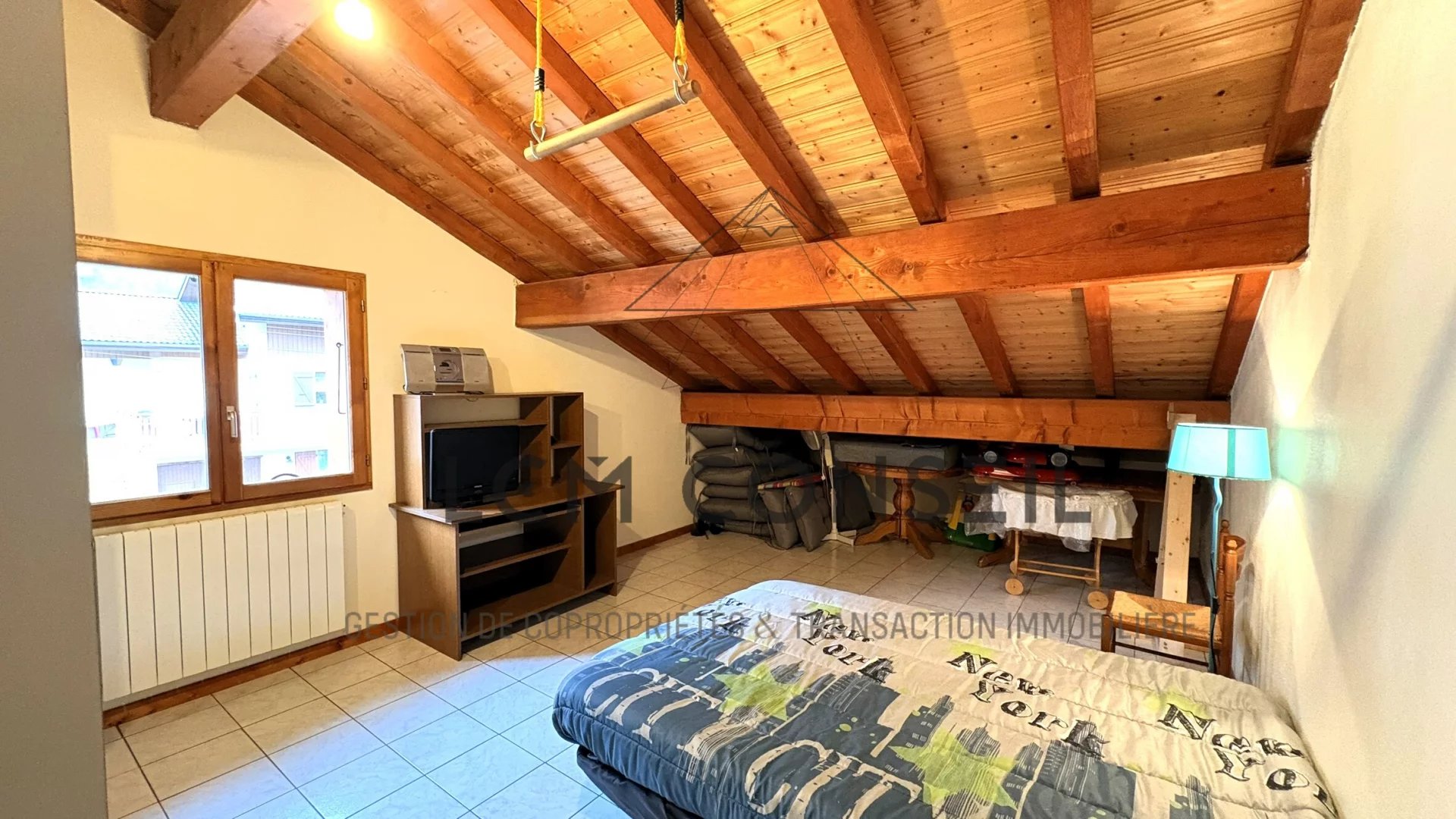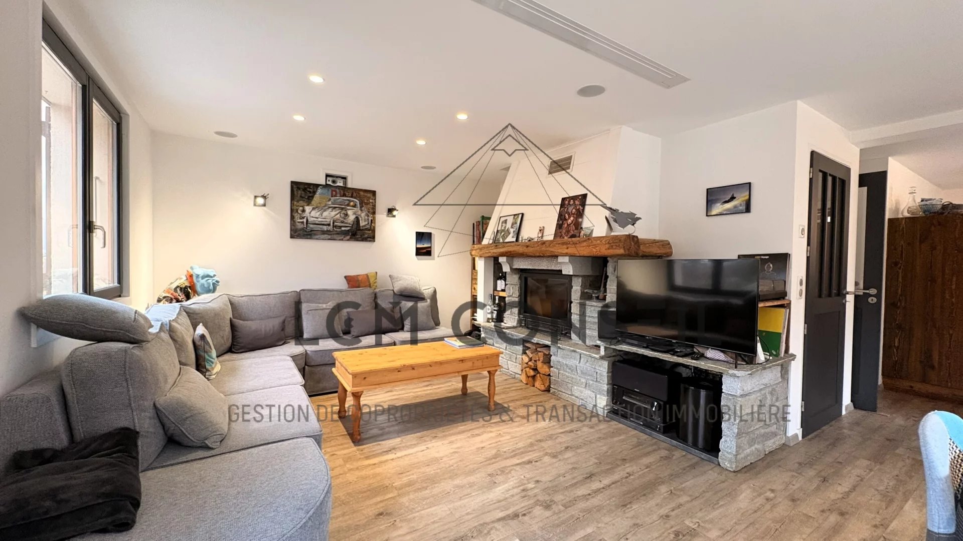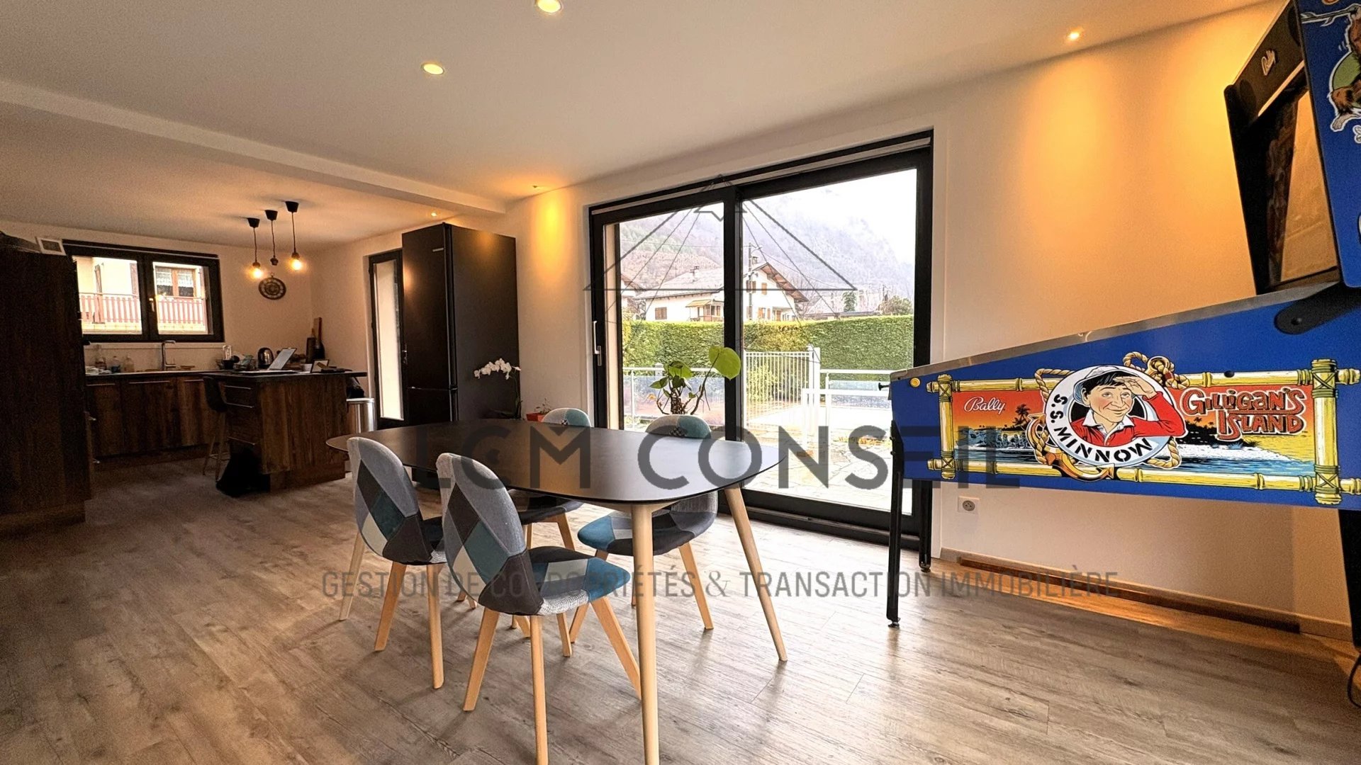Extérieurs soignés : piscine 8x4 avec volet roulant, deux terrasses dont une avec vue Lauzière, cuisine d’été, carport et stationnement 5 véhicules.