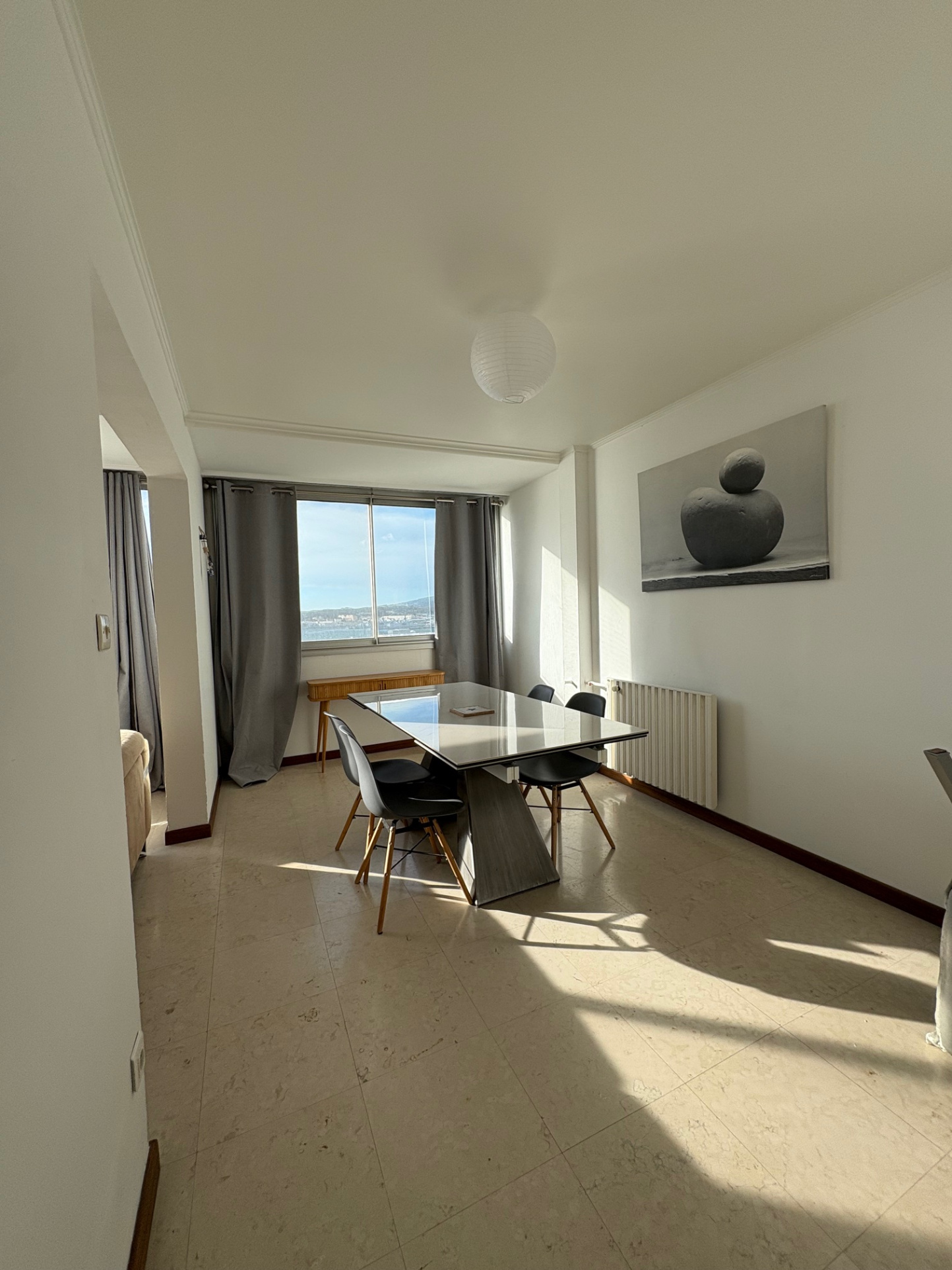MOURILLON- Dans résidence de standing, calme et sécurisée avec gardien,appartement type 4 meublé baigné de lumière avec superbe vue mer et Rade comprenant entrée, séjour double, cuisine aménagée et équipée, salle de bains, dressing, deux chambres, salle d'eau, toilettes indépendants, balcon, cave, local commun à vélo- Proche toutes commodités commerces et plages - Loyer 1100 EUR + charges 220 EUR (qui comprennent chauffage, eau froide , eau chaude, gardien, ascenseur, taxe d'enlèvement des ordures ménagères)