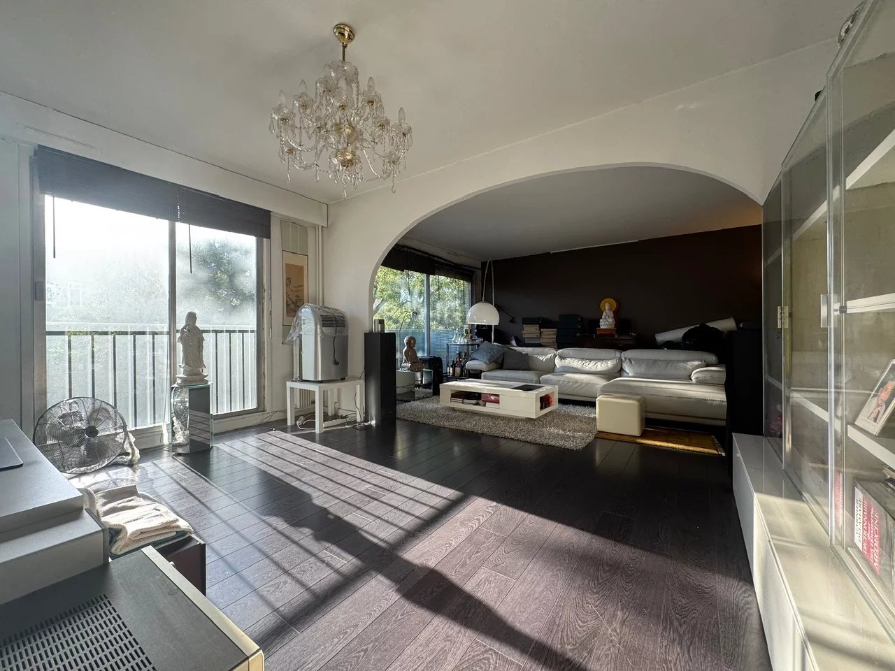 Proche métro et tous commerces, au 4e étage avec ascenseur dans un immeuble moderne de standing avec Gardien, 4 pièces de 90m2 + petite terrasse de 4m2. L'appartement se compose d'une entrée, cuisine indépendante indépendante, double séjour exposé ouest, sans vis à vis avec vue sur jardin, deux chambres, une salle de bains, 1 salle d'eau, 2 wc, nombreux rangements. Appartement traversant, au calme et ensoleillé. Cave comprise.