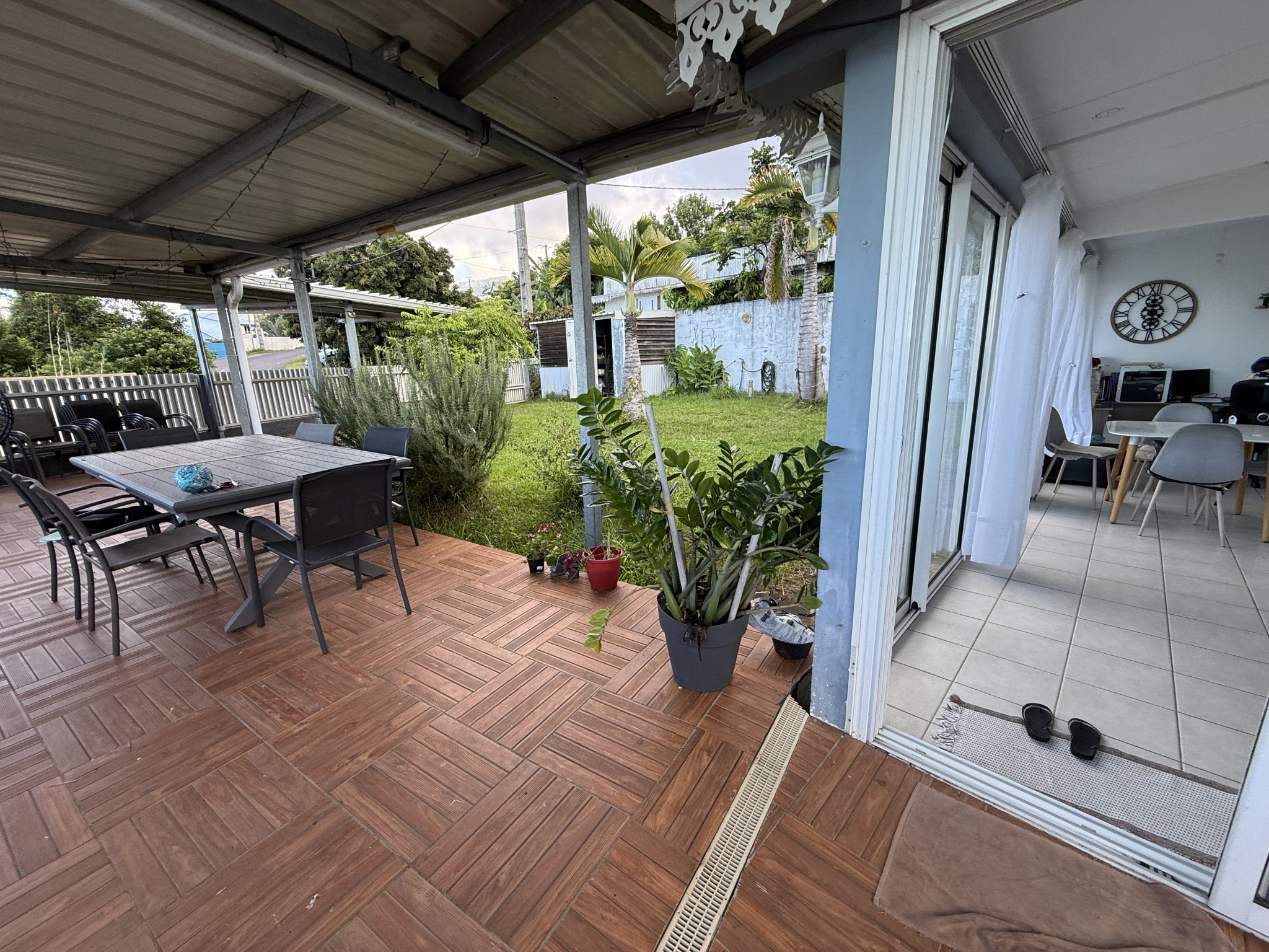 Achat immobilier d'une maison T4 dotée d'une grande terrasse agréable sur le territoire de Saint-Denis. Ce logement saura répondre aux besoins d'un couple avec deux enfants. sur un terrain de 375 m2 sur à Sainte Clotilde Bois de Nèfles, elle dispose de 3 chambres climatisées dont une avec dressing, espace séjour climatisé et cuisine équipée, salle d'eau ,WC , une varangue de 17 m2 et un garage. l'espace extérieur dispose d'un abri de 40 m2 et un débarras de 8 m2. équipée d'un chauffe eau solaire, relié au tout à l'égout. taxe foncière de 1800 euros. prix de vente 315 000 euros soit 300 000 euros net vendeur et honoraires à charge acquéreur 5%. Visite virtuelle disponible sur kaze-immobilier.fr