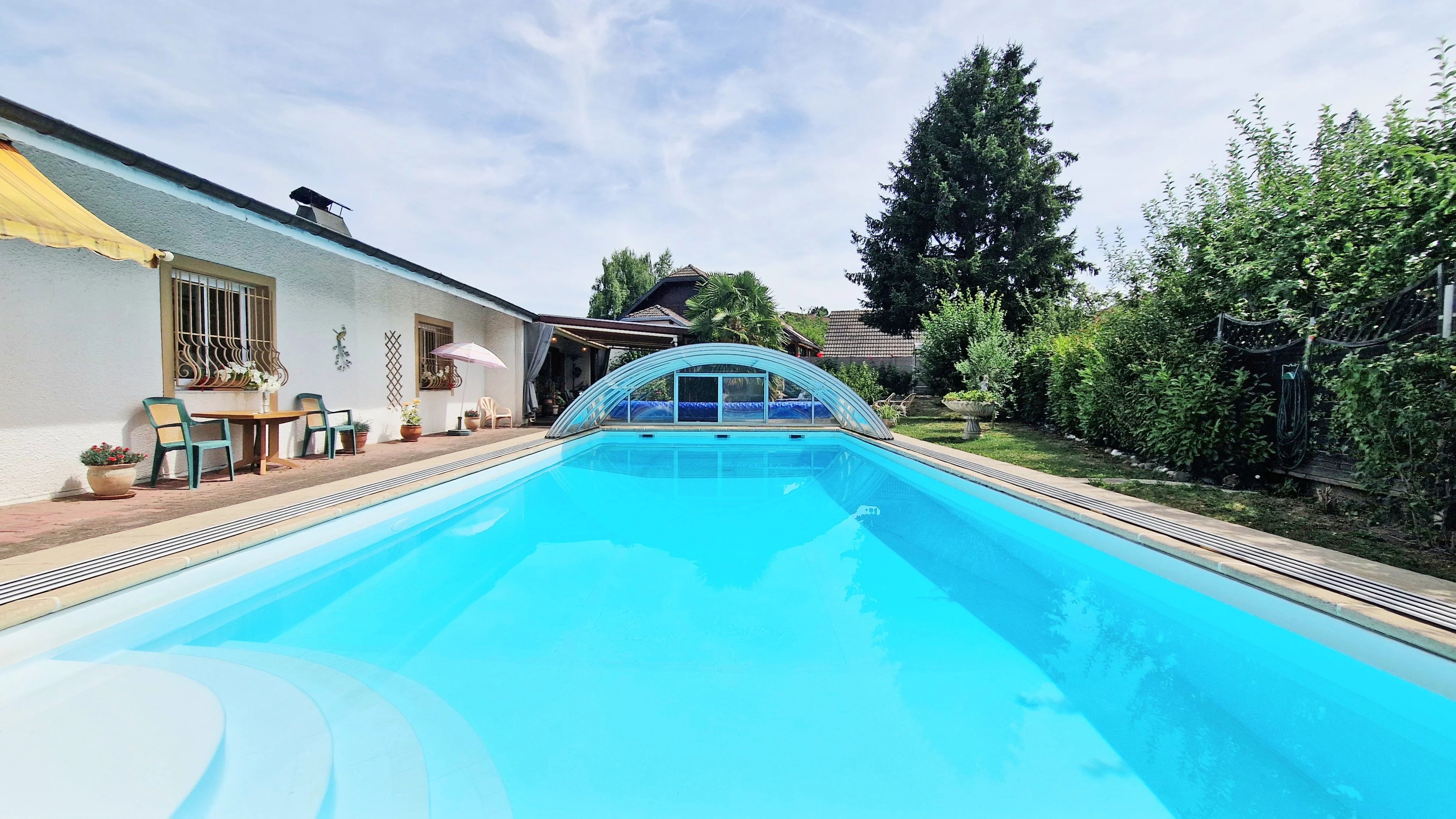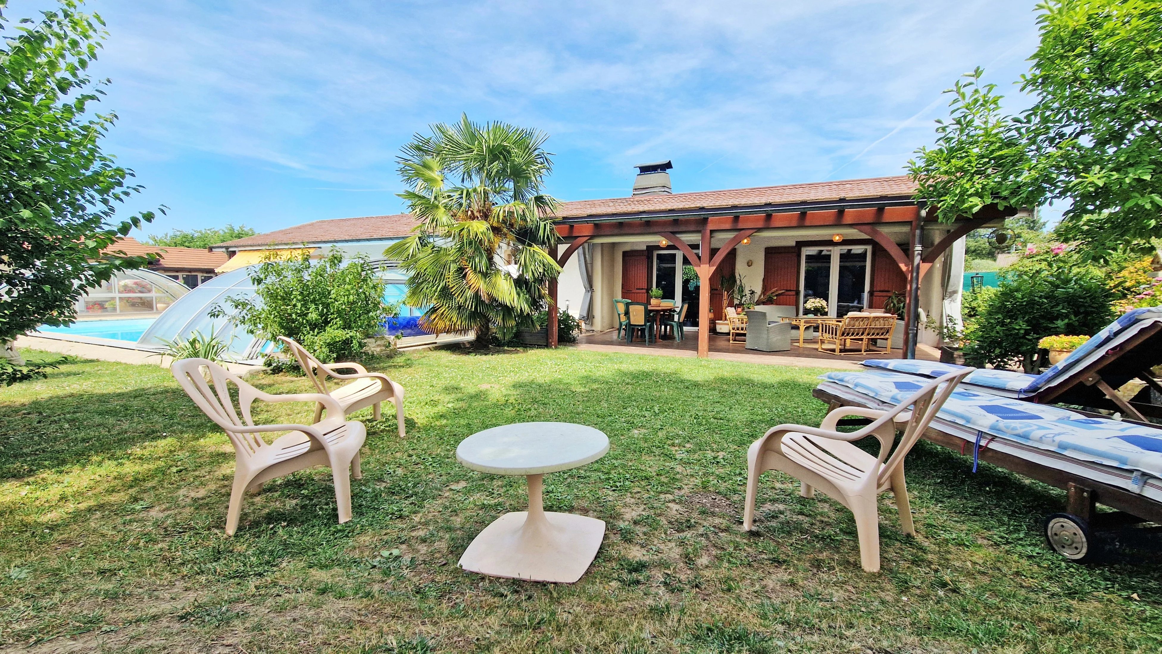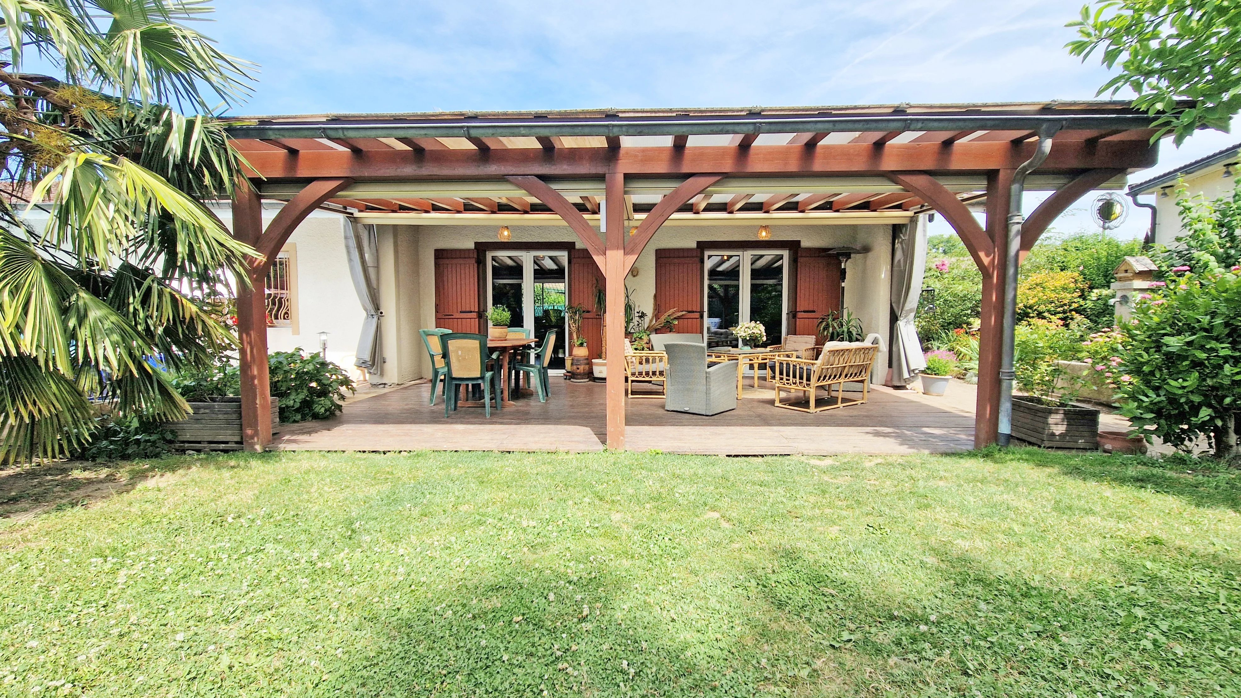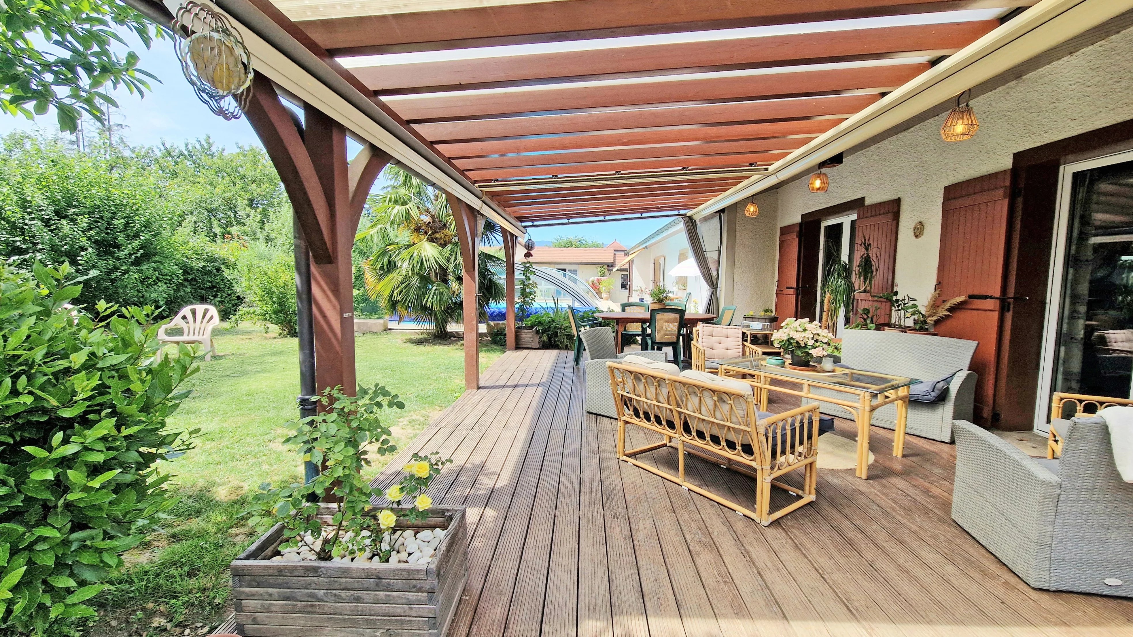 Une offre a été acceptée et un compromis signé pour ce bien. Vous avez un projet de vente, besoin d'une estimation ? Contactez-moi pour en parler ! Nouveauté en exclusivité à découvrir sans tarder ! À quelques pas du centre de Valleiry (74520), cette villa rare dévoile un art de vivre singulier. Édifiée de plain-pied et offrant 296 m² bâtis dont 148,12 m² habitables, cette demeure élégante se compose de 3 chambres, d’un garage, d’une cave, d’un jardin harmonieusement entretenu et d’une piscine invitant au repos. Les volumes généreux, magnifiés par de superbes hauteurs sous plafond et par une orientation sud-ouest célébrant la lumière, confèrent à ce lieu une atmosphère unique. En arrière-plan, les montagnes esquissent un décor apaisant. Construite en 1980 sur une parcelle paysagée de 1.060 m², la maison a bénéficié d’une rénovation complète en 2019, incluant notamment le remplacement des menuiseries. Dotée d’une isolation performante et d’équipements modernes — pompe à chaleur air-eau, poêle à granulés — elle se distingue par un excellent DPE en classe B. Si cette propriété vous inspire, je vous invite à me contacter dès aujourd’hui. Agencement intérieur : -Un espace de vie de 57 m² réunissant séjour et cuisine ouverte, prolongé d’un cellier ; -Un dégagement fonctionnel et des WC indépendants ; -Une vaste salle de bains de 11,37 m², équipée d’une douche et d’une double vasque ; -Trois chambres généreuses de 18,05 m², 16,35 m² et 25 m², dont deux profitent d’une mezzanine ; Parties annexes et sous-sol : -Une chaufferie/buanderie ; -Une authentique cave à vin ; Extérieurs aménagés : -Une terrasse protégée par une pergola, s’étendant sur 33 m² ; -Une piscine au sel de 5 x 13 mètres pour savourer les beaux jours ; -Un garage motorisé de 17,82 m² accompagné d’un espace de rangement de 8,85 m² ; -Un cabanon de jardin de 11,24 m² pour vos outils ou envies de stockage ; -Un pool house de 27,26 m² à agencer selon vos projets ; -Une salle d’eau extérieure avec WC, 4,74 m² ; -Un barbecue en pierre abrité ; -Un terrain de pétanque pour partager des instants conviviaux ; Une vidéo immersive de cette propriété est intégrée à l’annonce et disponible sur mes réseaux sociaux : Facebook, Instagram, YouTube : @agencemaitre. Contactez-moi au plus tôt, avec un plan de financement abouti, afin de bénéficier d’une visite prioritaire et de vous positionner dans les meilleures conditions. Cadre de vie et commodités : -À moins de vingt minutes à pied : crèche, école, collège, gare, centre-ville, supermarché, boulangerie, restaurants, commerces, club de tennis, terrains de sport, salle de fitness, parc arboré, cabinets médicaux ; -À 650 mètres, un arrêt de bus dessert Vulbens, Saint-Julien-en-Genevois et le Lycée Madame de Staël ; -La gare, située à 800 mètres, permet de rejoindre Évian-les-Bains, Bellegarde, Saint-Gervais-les-Bains et Annemasse par TER ; -La frontière suisse se trouve à seulement six minutes, via la douane de Chancy ; -Annecy, la perle des Alpes, est accessible en quarante minutes ; Vous avez un projet immobilier, d’achat ou de vente ? Vous souhaitez connaître la valeur de votre bien ? Je suis votre interlocuteur privilégié en Savoie, Haute-Savoie, dans l’Ain et sur le Canton de Genève. Confrères agents, je reste ouvert à la collaboration, sous réserve de la présentation d’un acquéreur sérieux et non encore en contact avec l’agence. N’hésitez pas à me solliciter.