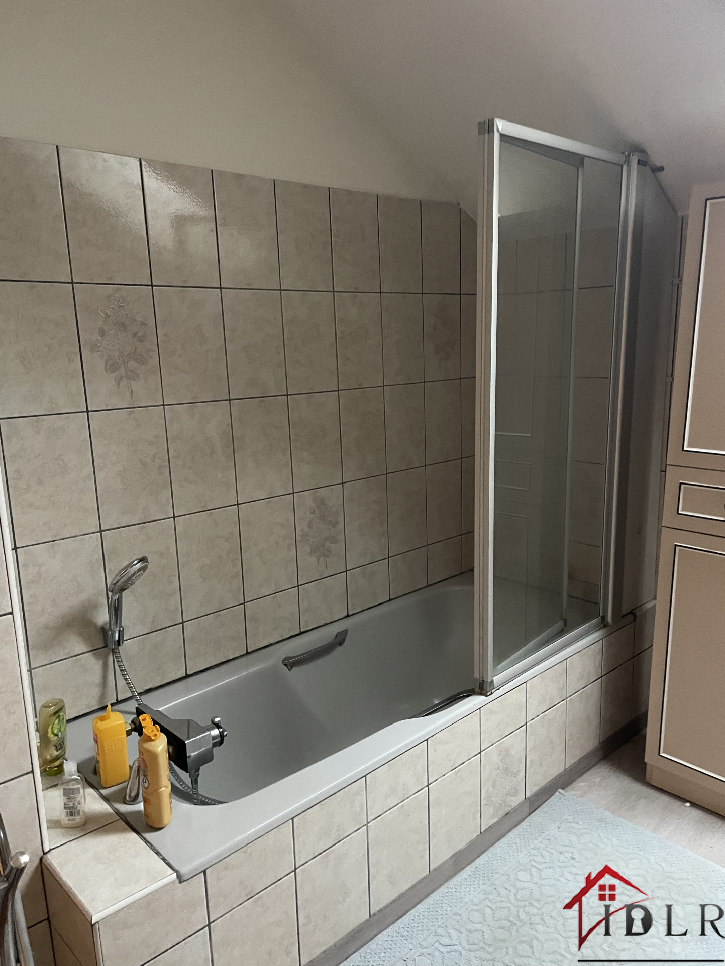 À l'étage, 3 chambres et une salle de bain avec baignoire.