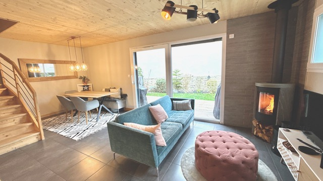 01170 SEGNY coeur du village, mieux qu'un appartement, nous vous proposons ce magnifique T5 (4 chambres) très fonctionnel, en triplex-garden de 121m2 au sol (105m2 loi carrez). De construction très récente (2017) de qualité en bois par un constructeur réputé et régional, avec un classement énergétique performant (chauffage gaz de ville individuel + poêle à bois.