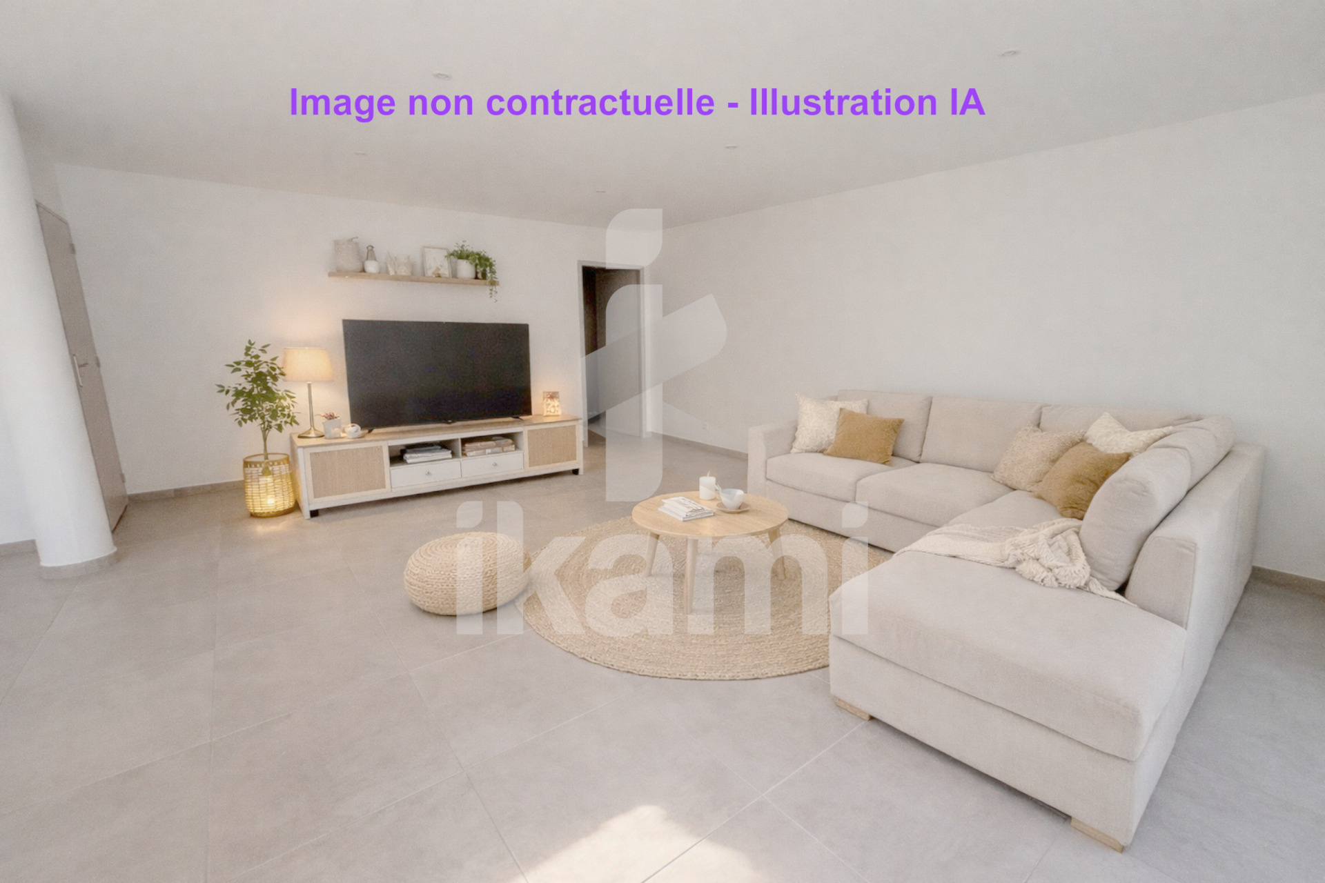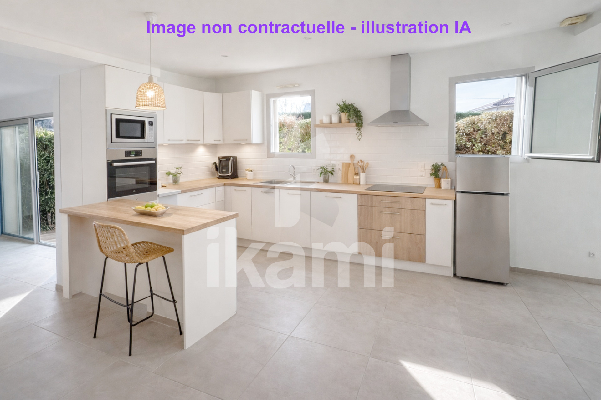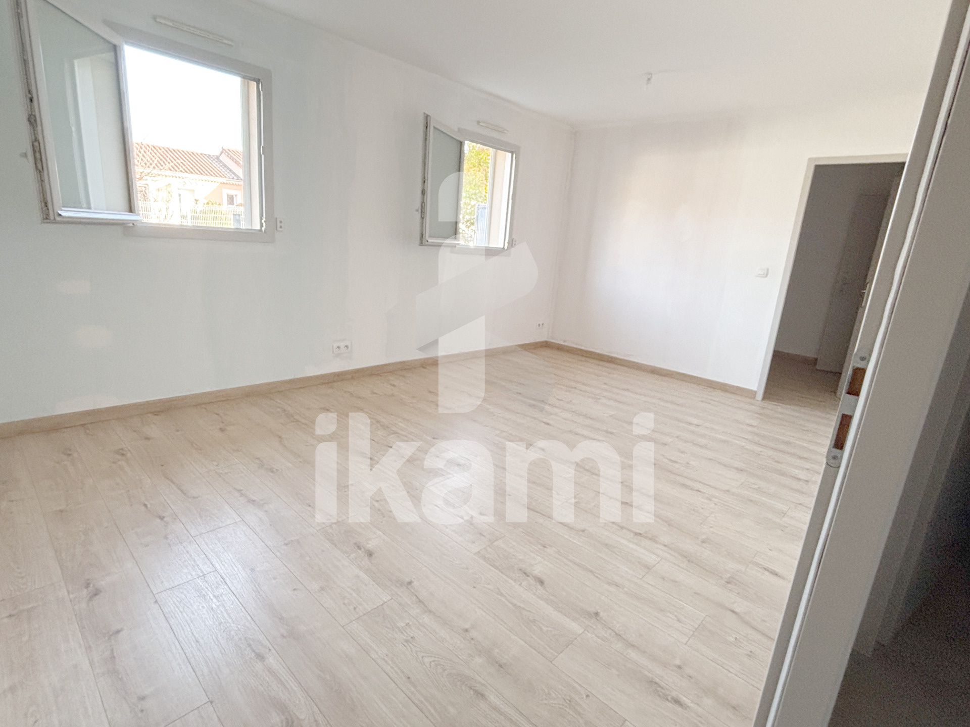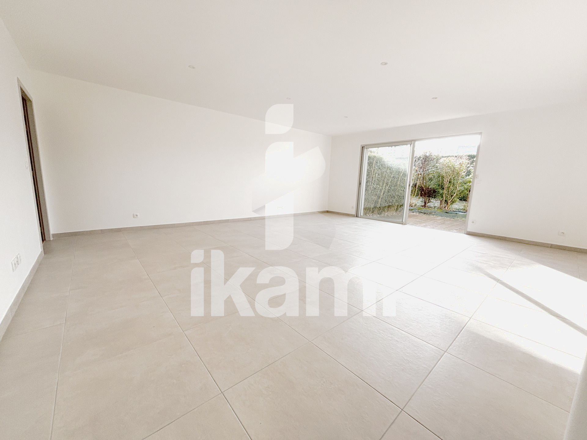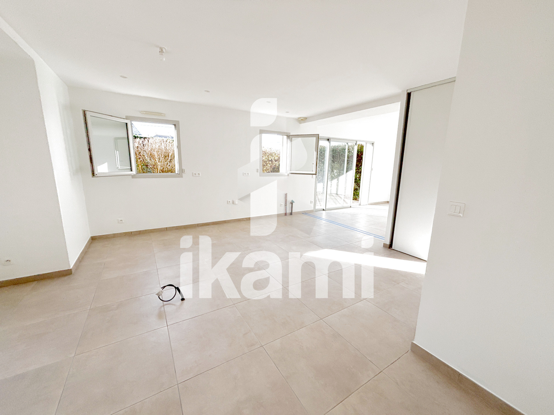 Belle pièce de vie lumineuse avec cuisine ouverte et accès direct à l'extérieur, 3 chambres + salle d'eau + WC indépendant