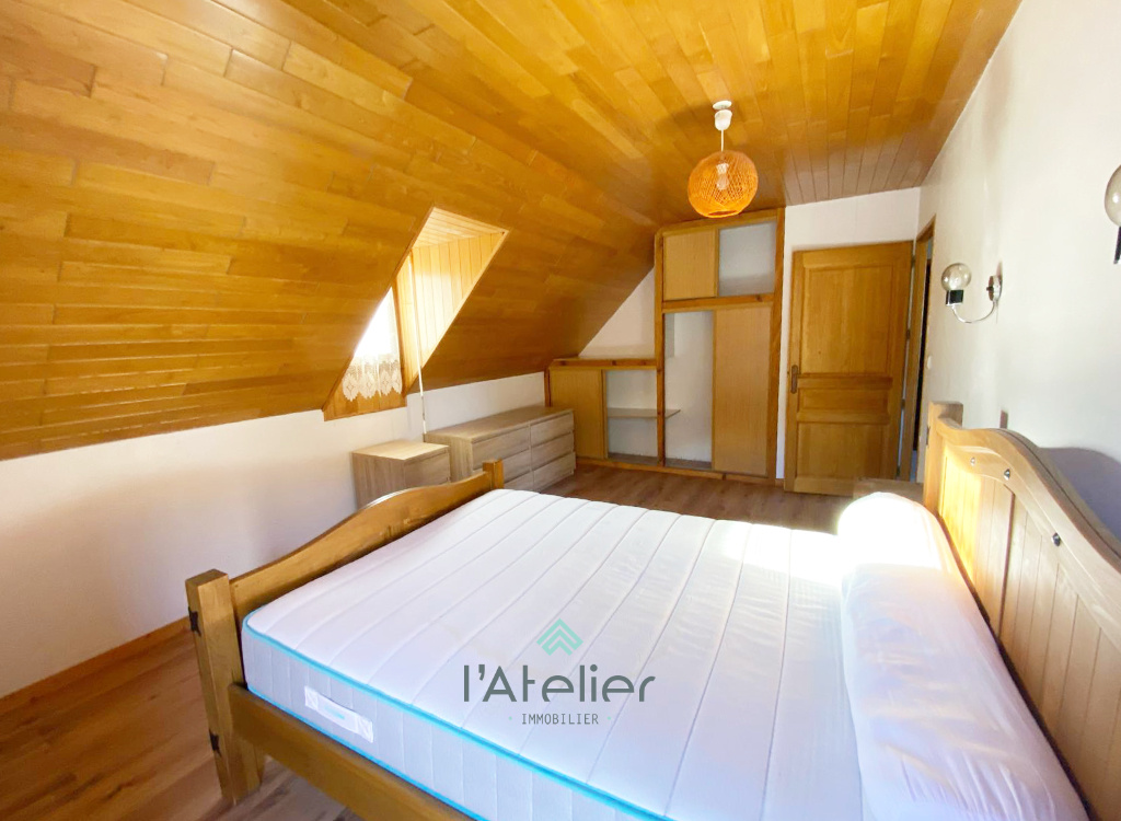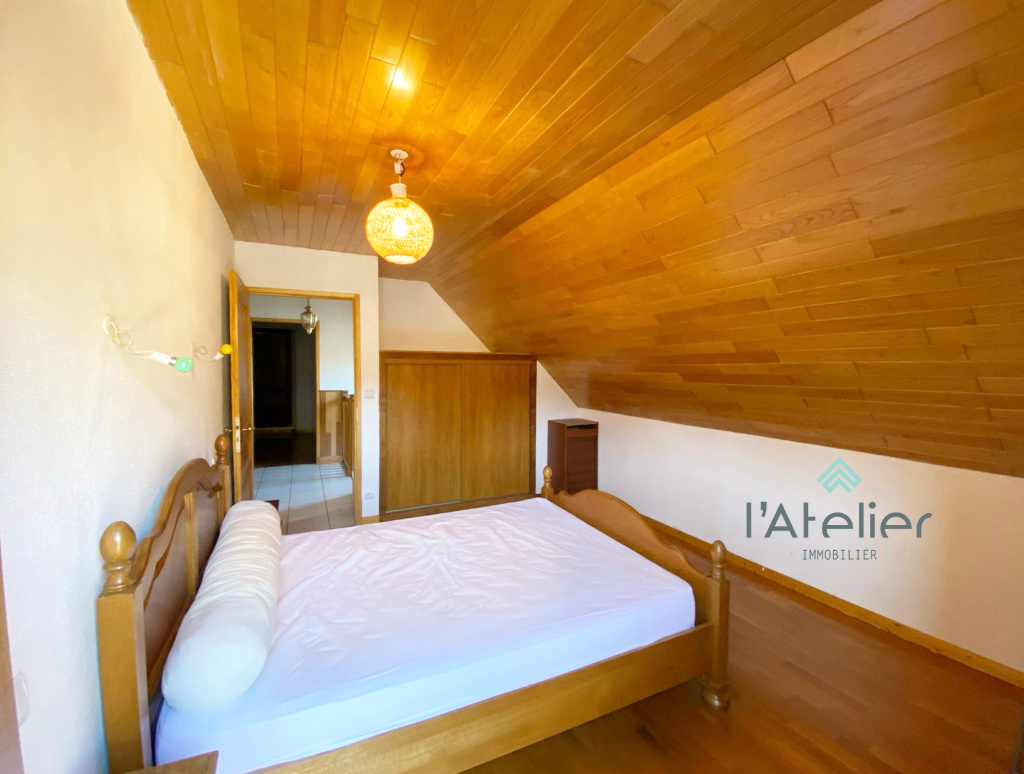 Le séjour s'anime autour de la cheminée qui crépite lors des soirées d'hiver, enveloppant l'espace d'une atmosphère douce et montagnarde. À l'étage, trois chambres généreuses offrent chacune leur propre ambiance, tandis qu'une grande salle d'eau, pensée pour le confort, complète l'ensemble. La maison propose aussi une buanderie pratique, deux WC et ce souffle d'authenticité qui fait toute la différence.