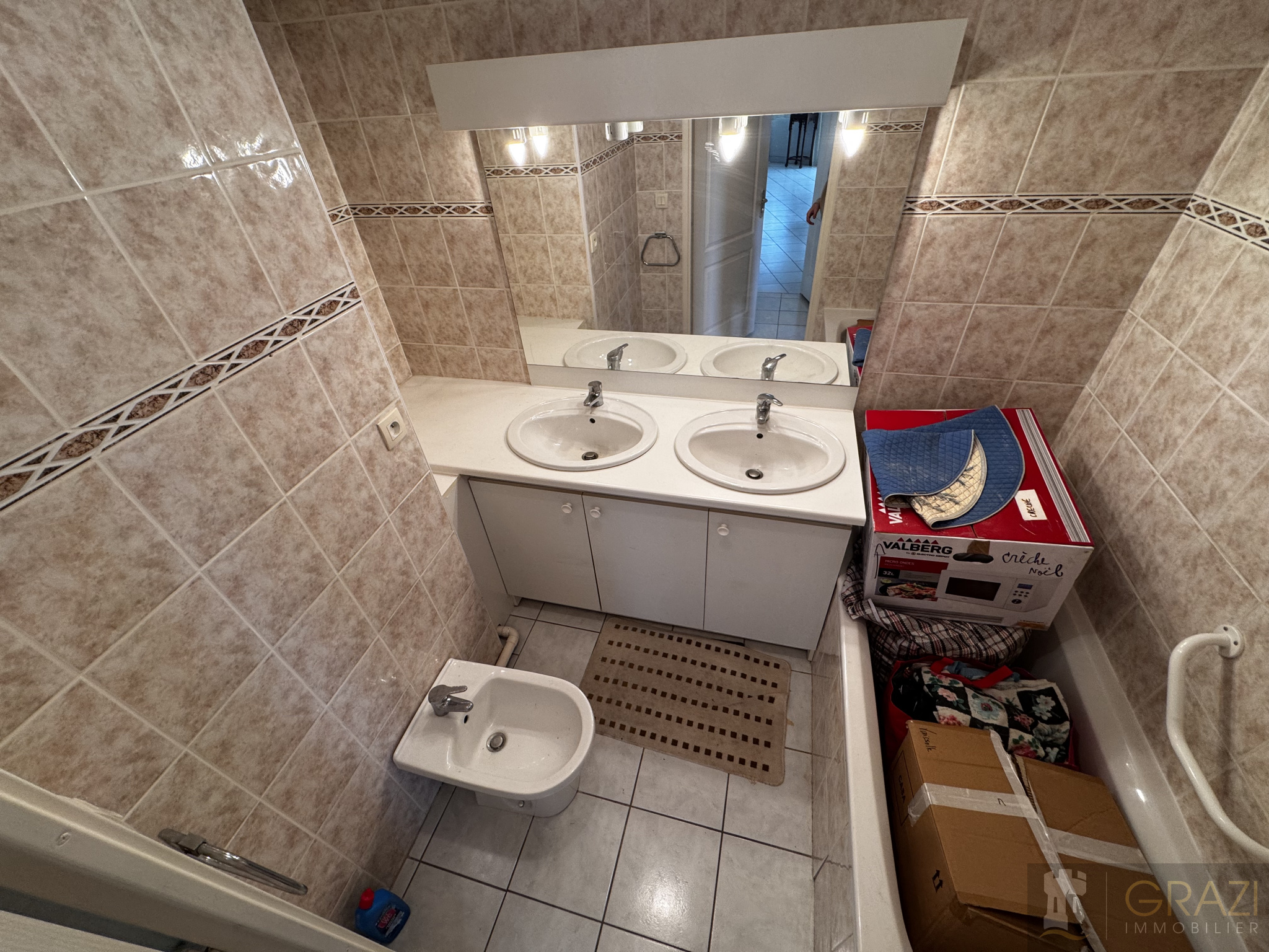 L'appartement dispose de trois chambres, chacune équipée de grands placards, deux salles de bains l'une avec double vasque, baignoire et bidet, l'autre avec double vasque et douche , de deux WC séparés, et de nombreux rangements répartis dans l'ensemble du logement.
