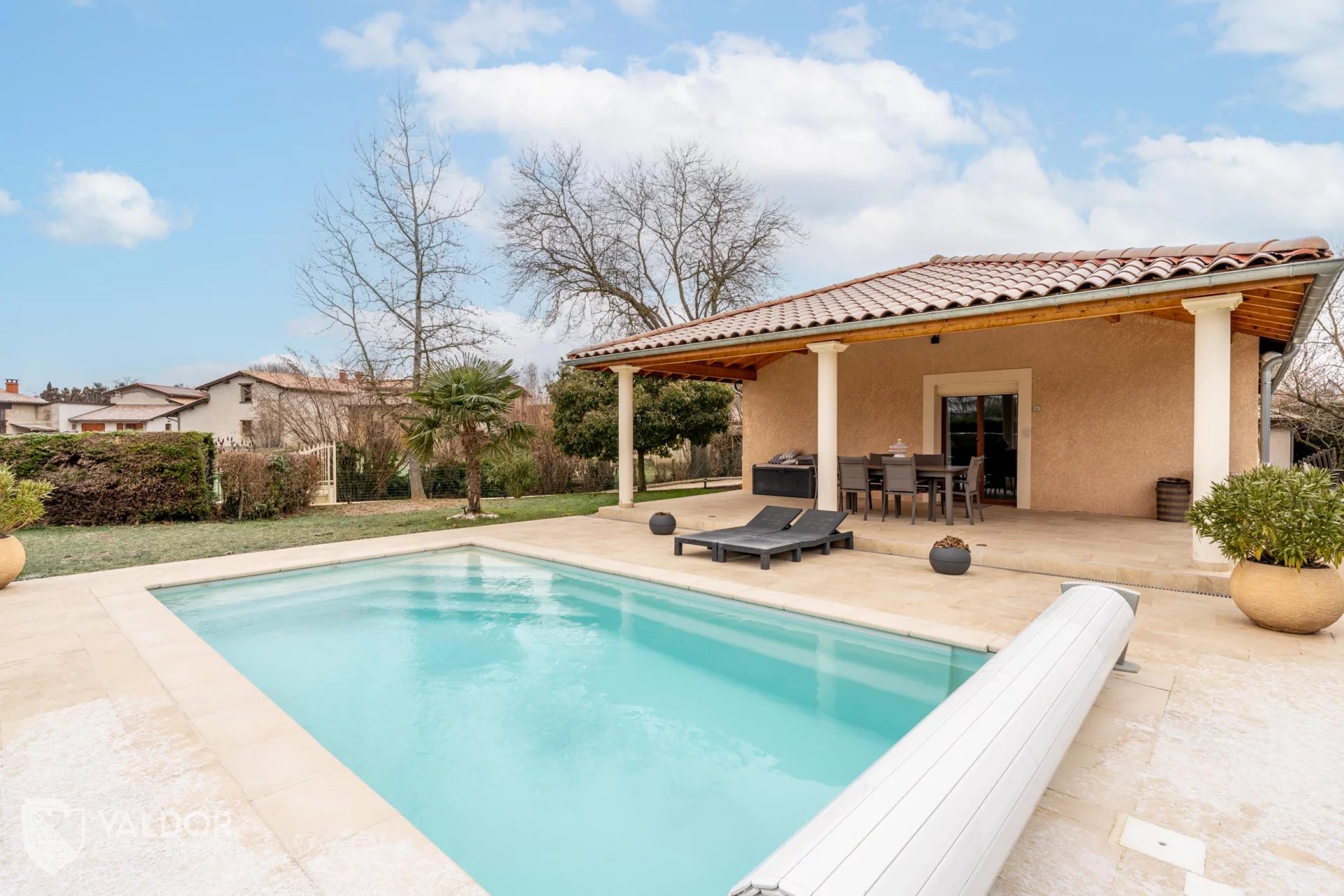 Exclusivité Yannick SAUVIGNET - Dans un environnement champêtre et résidentiel, au calme absolu, maison exclusivement de plain-pied en parfait état, composée d'une pièce de vie à la luminosité abondante avec cuisine ouverte toute équipée, 4 chambres dont une avec dressing, une salle de bain et une buanderie. La vaste terrasse, entièrement couverte, vous permettra de bénéficier de ses aménagements malgré les épisodes caniculaires, et jusqu'aux derniers rayons du crépuscule, de part son exposition Ouest. La piscine au sel, toute automatisée, bénéficie d'une pompe à chaleur pour optimiser la saison de baignade. La parcelle de 1072 m² est entièrement close et affranchie de tous vis à vis. Un terrain de jeux de boules et un petit atelier indépendant complètent ce bien particulièrement fonctionnel. 100 m des arrêts de bus, 300 m de la nouvelle crèche, de l'école et des commodités, 7 km de Jassans, 10 km de l'accès A6/A46 Villefranche s/Saône, 12 km de la gare, 40 km de LYON... Pour tous renseignements complémentaires ou visite, et pour bénéficier de conseils pertinents, avec près de 400 biens vendus sur les secteurs rurbains Lyonnais, des Monts d'Or à la Calade, du Val de Saône aux Pierres Dorées, de la Vallée d'Azergues au Beaujolais... Vous pouvez contacter Yannick SAUVIGNET au 06 69 42 69 69, statut salarié, dirigeant. Annonce conçue sans l’assistance de l’intelligence artificielle Les informations sur les risques auxquels ce bien est exposé sont disponibles sur le site Géorisques : www.georisques.gouv.fr