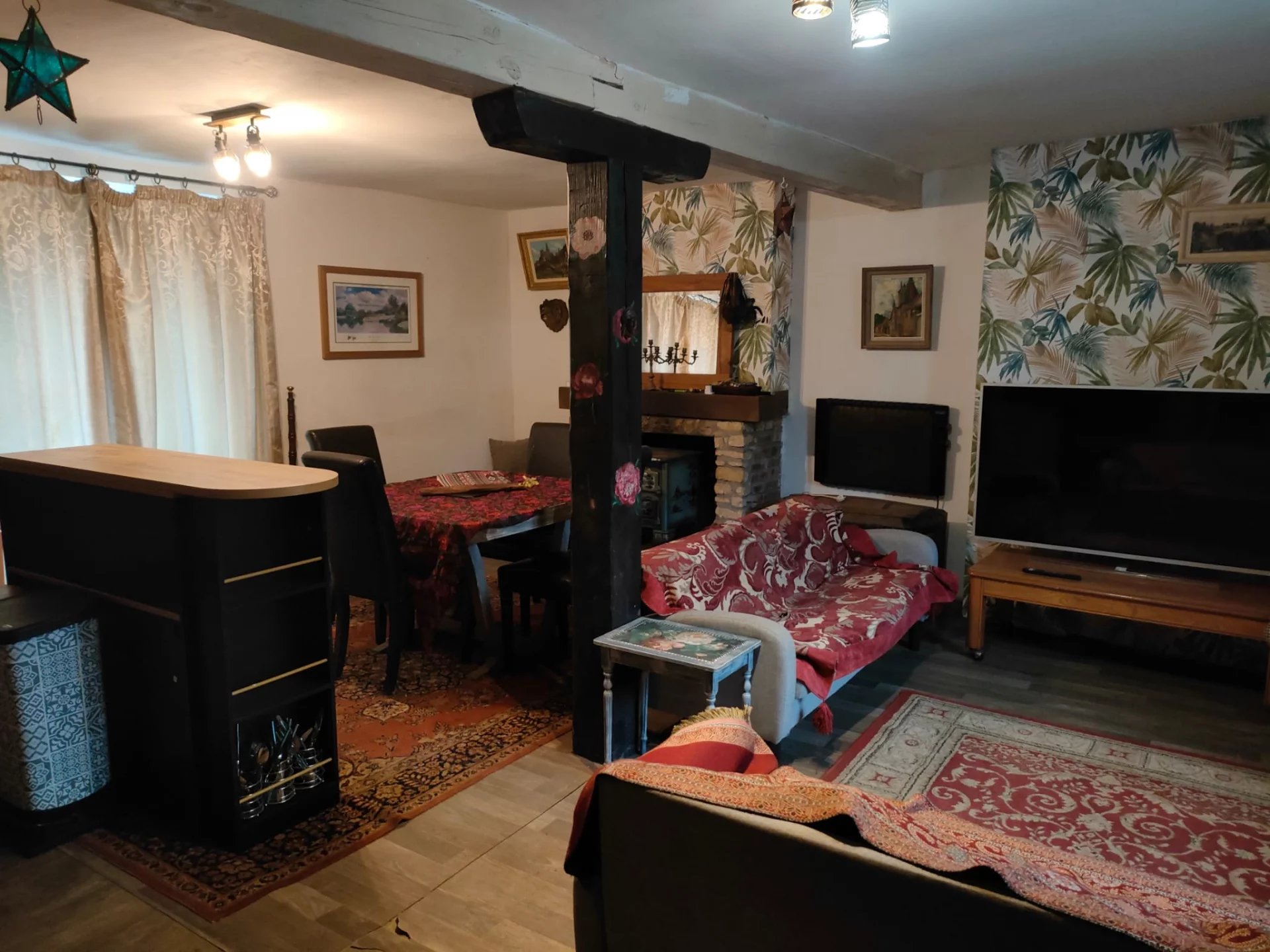 Venez découvrir cette maison atypique de 3 chambres située dans la commune de Bussière-Galant. À seulement quelques minutes de la gare de Bussière et également de la plus grande ville de Châlus. L'entrée de la maison possède son propre poêle à bois pour créer un petit coin cosy, un grand salon ouvert avec cuisine et salle à manger donnant sur le jardin à l'arrière. À l'arrière de la propriété se trouve une pièce actuellement utilisée comme buanderie/salon avec des escaliers menant à la salle de bain familiale avec douche et WC, un WC séparé, une chambre double, une chambre légèrement plus petite et la chambre principale avec sa propre baignoire ! En face de la maison se trouve une petite grange avec un jardin.