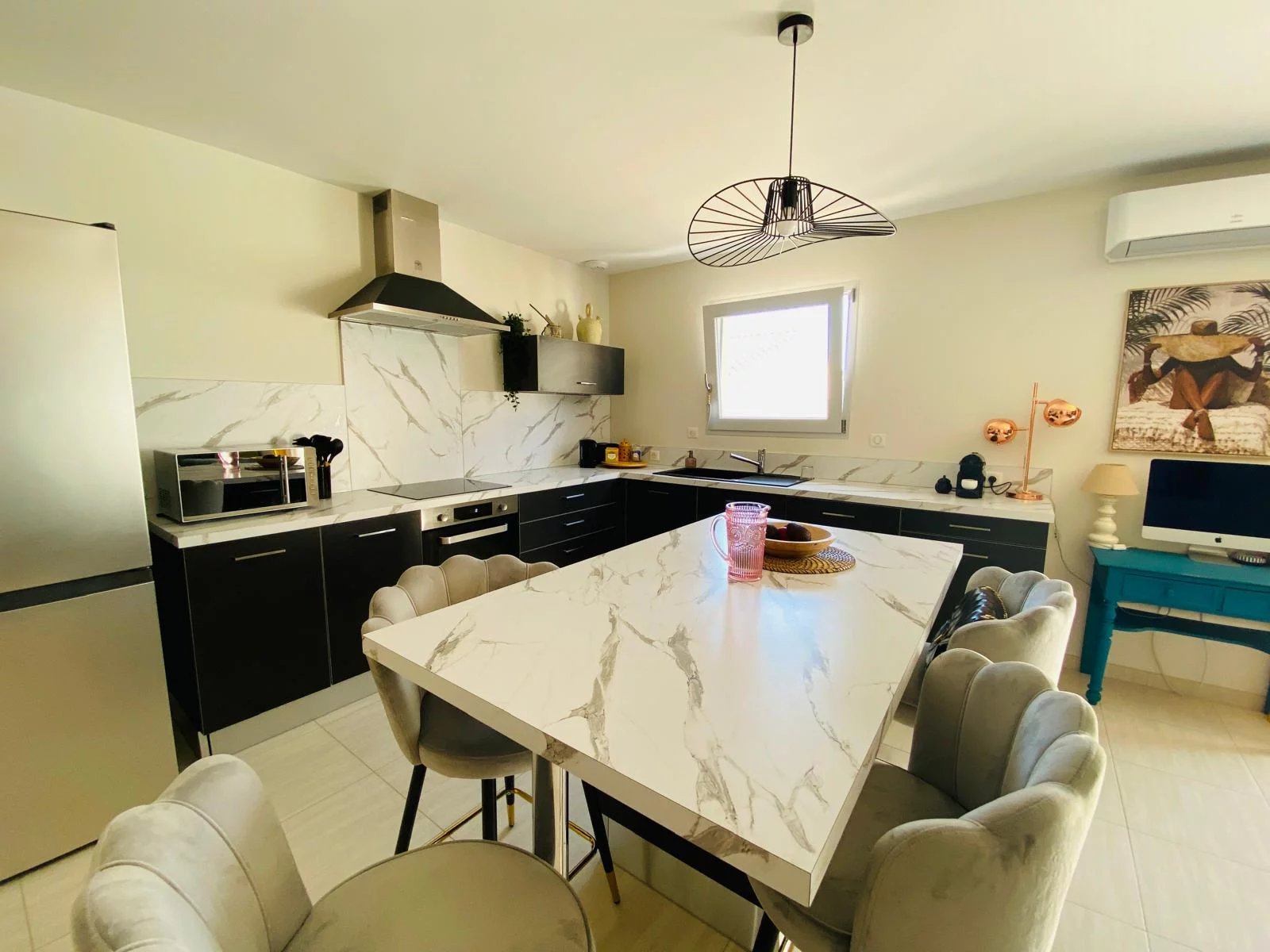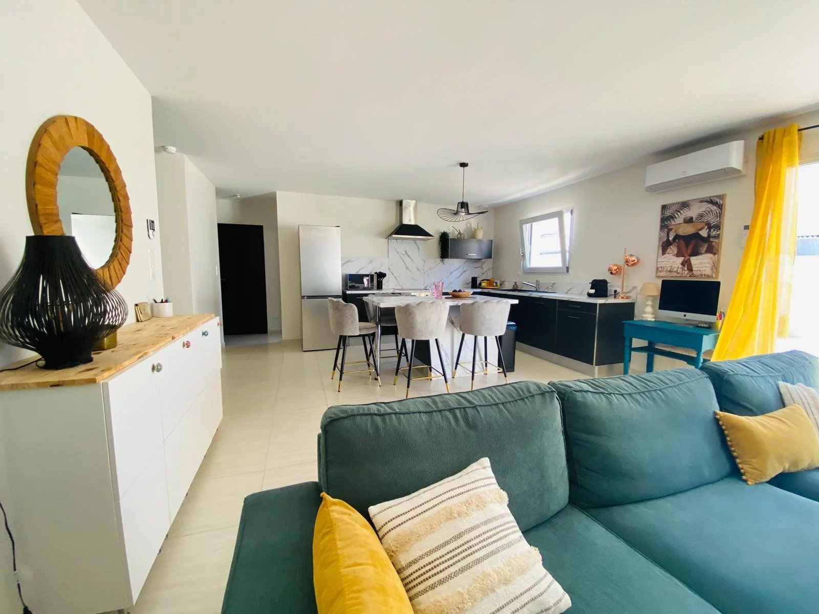 Construction de 2018, cette maison de plain pied vous offre un grand séjour lumineux de 43m² avec cuisine ouverte, 3 chambres dont une suite parentale avec dressing et salle d'eau, ainsi qu'une salle de bains et un toilette. Espace extérieur aménagé avec terrasse et pergola. Excellent DPE : construction norme RT2012. Ses + : Exposition SUD, Garage/buanderie, 2 places de parking, et SURTOUT son état intérieur irréprochable ! Réf.: LC1052 AGENCE ORPHEA-LC IMMOBILIER 0468320320 choix 1.