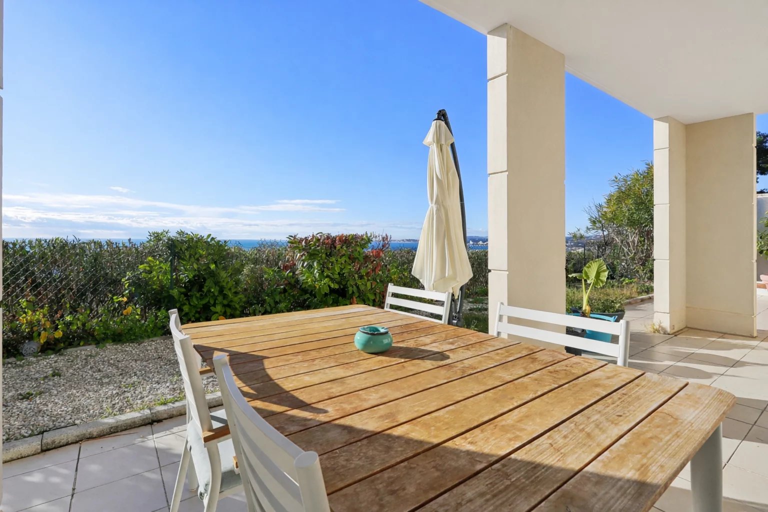 Exclusivité - Saint-Laurent-du-Var: Cet appartement de 3 pièces est situé dans un quartier résidentiel calme et agréable, à proximité du centre de Saint-Laurent-du-Var, de ses plages, de ses restaurants. Exposé plein sud, il bénéficie d’une vue panoramique sur la Méditerranée depuis un grand jardin privatif d’environ 33m². L’appartement se compose d'un séjour lumineux avec un accès direct sur la grande terrasse et le jardin (62m²), d'une cuisine indépendante, de deux chambres avec placards. Toutes les pièces à vivre ont un accès direct sur la terrasse. Des travaux de rafraîchissement sont à prévoir, mais le bien présente un fort potentiel et de belles possibilités de personnalisation. Un garage, une place de parking intérieure ainsi qu’une cave spacieuse complètent ce bien. La copropriété dispose également d’une piscine commune avec vue sur la mer. Charges : 220 € / mois Nombre de lots principaux : XX Pas de procédure en cours à notre connaissance Saint-Laurent-du-Var est une ville située entre Nice et Cannes, en bord de Méditerranée et proche de l’aéroport Nice Côte d’Azur. Appréciée pour son port de plaisance, ses plages, ses commerces et sa promenade en front de mer, elle offre un cadre de vie agréable alliant douceur du littoral, accessibilité et vitalité urbaine. Les informations sur les risques auxquels ce bien est exposé sont disponibles sur le site Géorisques : georisques.gouv.fr
