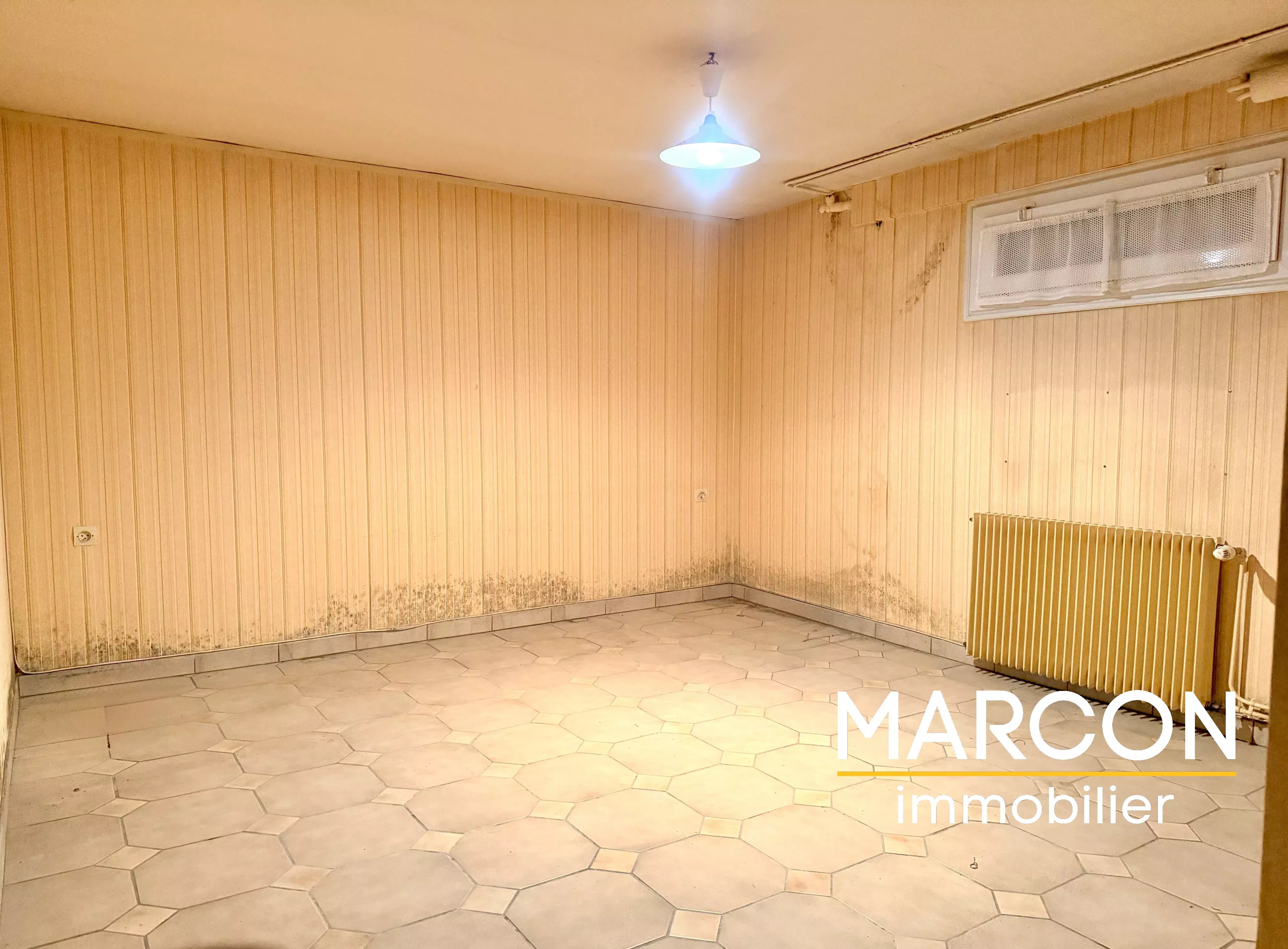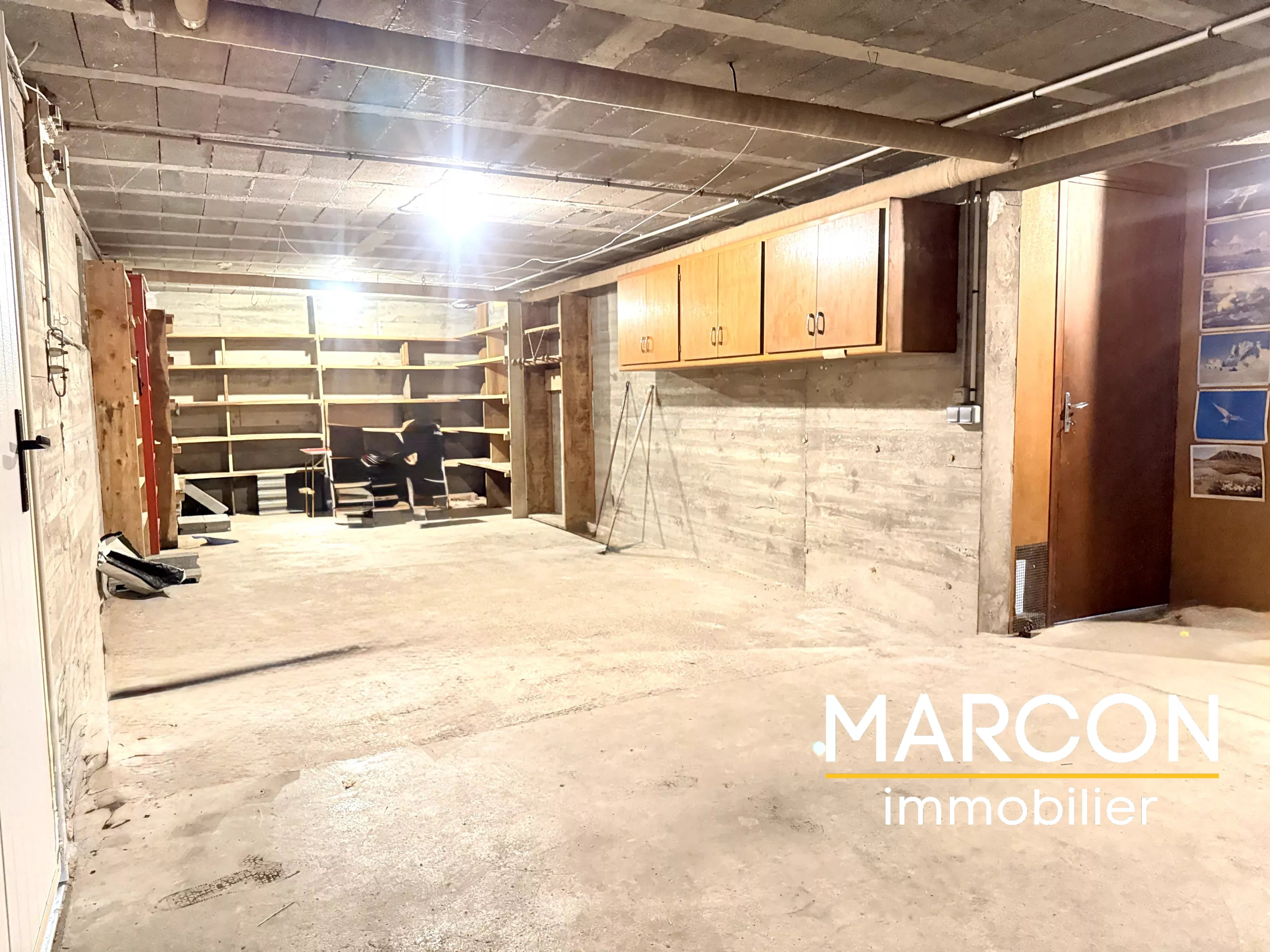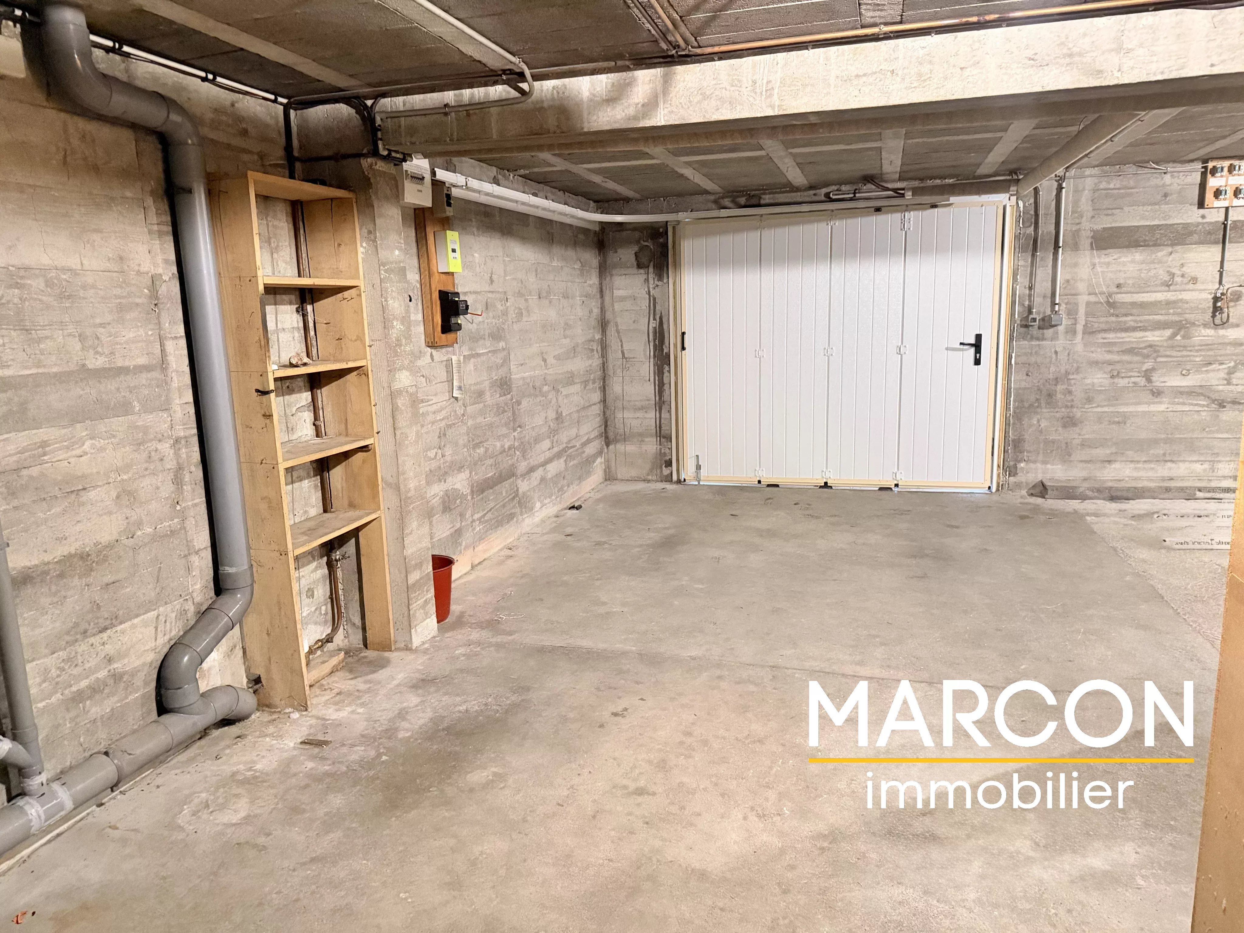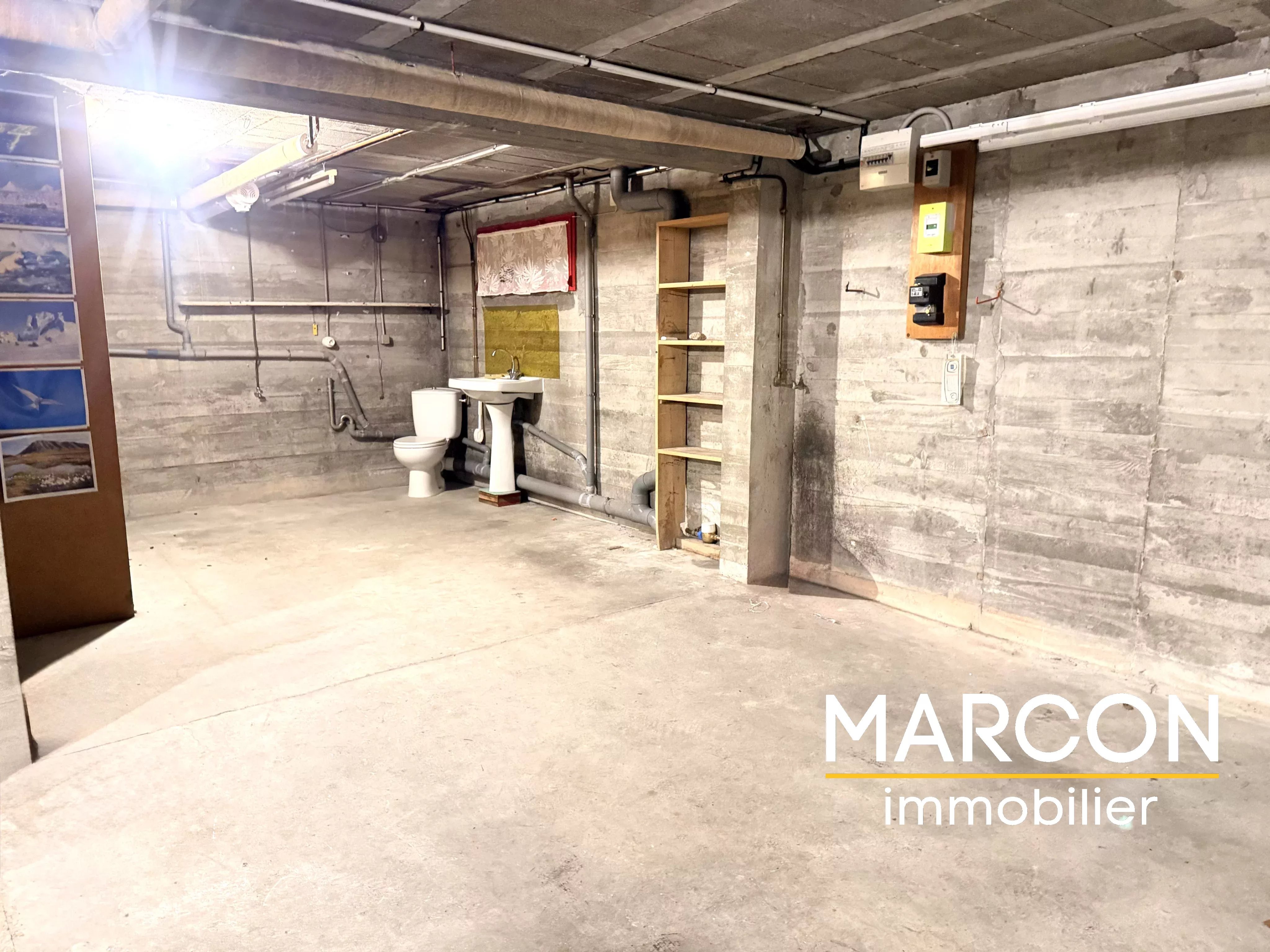 Sous-sol semi-enterré avec dégagement/coin chaufferie, une chambre supplémentaire, garage avec coin lavabo/WC et remise.