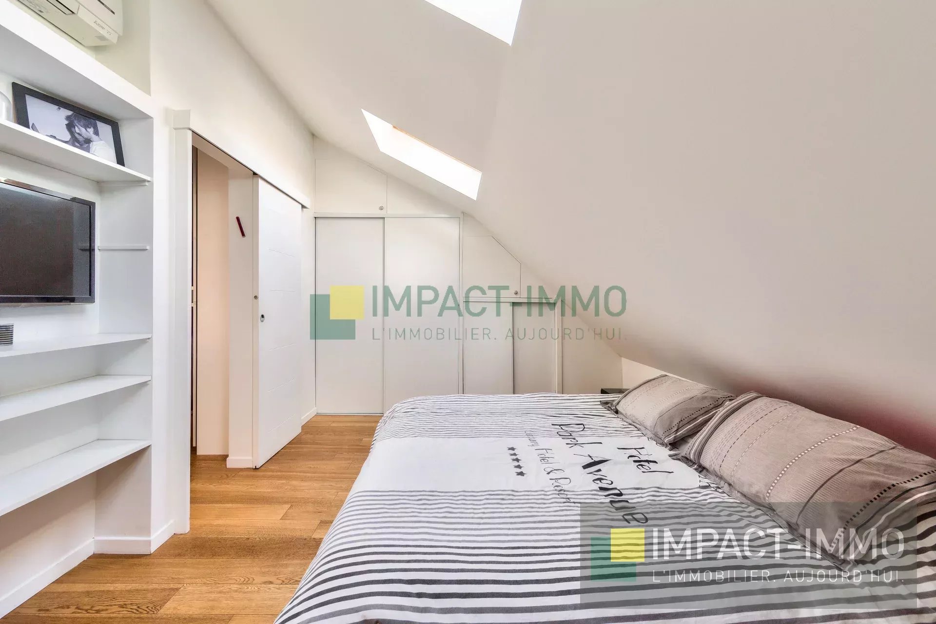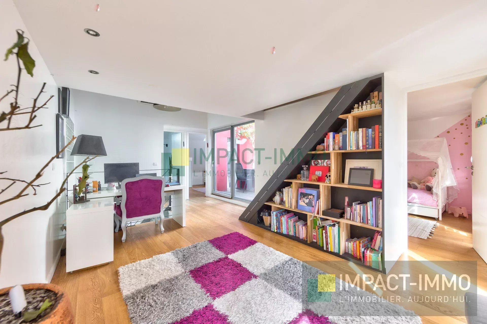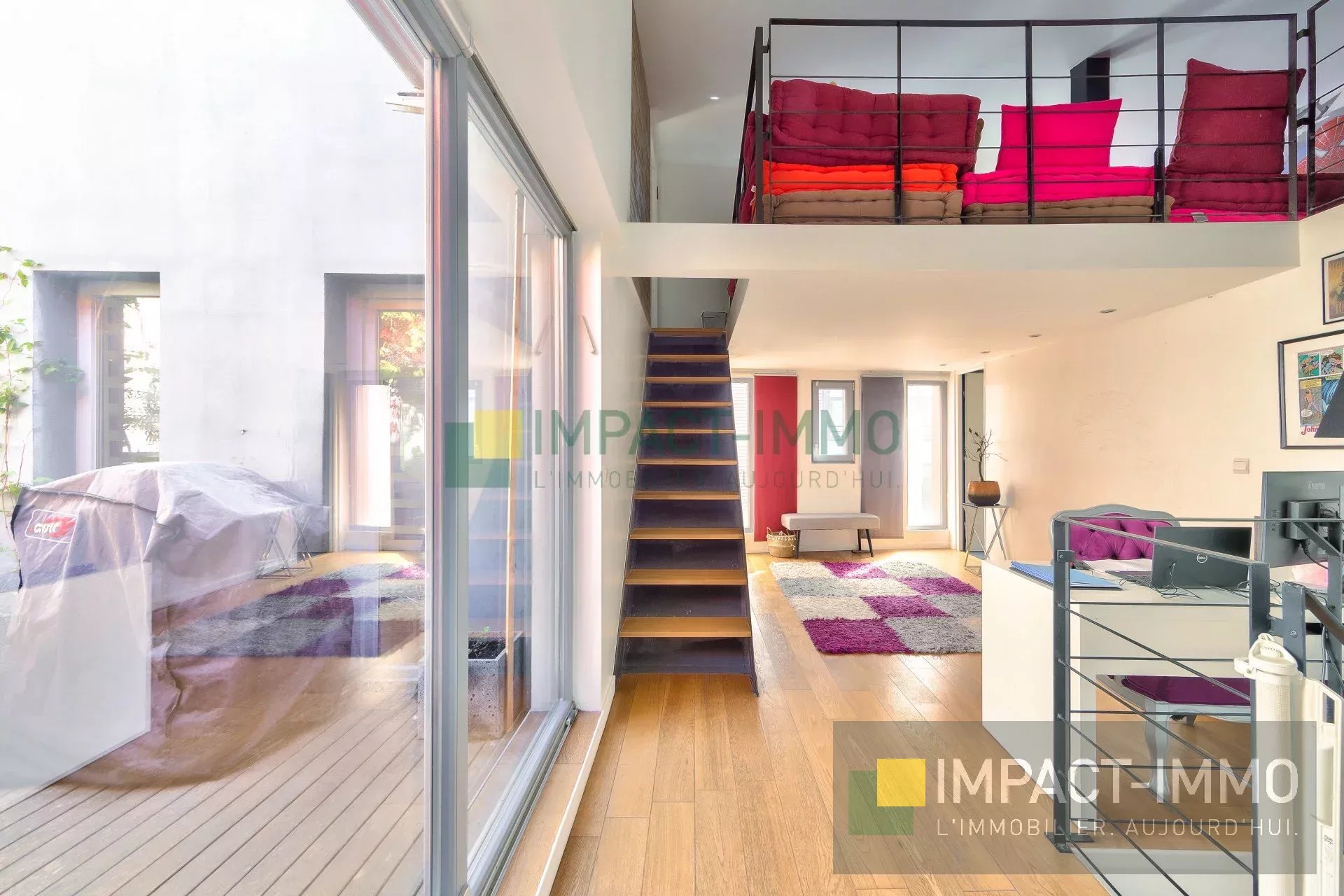 Notre agence immobilière IMPACT IMMO PUTEAUX (92800) vous propose, à la lisière de Puteaux et à deux pas de la gare, comme une maison, ce charmant appartement atypique aux beaux volumes. Organisé sur deux niveaux avec mezzanine optimisée, il développe une surface Carrez de 114 m² (147 m² au sol facilement exploitable). Il se compose d’une vaste réception avec cuisine ouverte aménagée d’environ 40 m², de quatre chambres dont une suite parentale avec véritable dressing et salle de bains, d’une salle d’eau avec WC, d’un bureau ainsi que d’un espace salle de jeux ou détente ouvrant sur un patio sans vis-à-vis. De nombreux rangements complètent ce bien, ainsi qu’une cave. Situé dans une copropriété à taille humaine, parfaitement entretenue, l’appartement est en bon état. Lumineux, bénéficiant d’une exposition principale Sud/Est. Bien rare sur le secteur. DPE en cours ... Nous sommes à votre disposition pour toute information complémentaire et pour organiser une visite dans les meilleurs délais : 📧 puteaux@impact-immo.com 📞 01 75 61 42 00 Découvrez l’ensemble de nos annonces sur : www.impact-immo.com Vous avez un projet immobilier ? Rencontrons-nous… (Achat, vente, estimation, gestion, location)