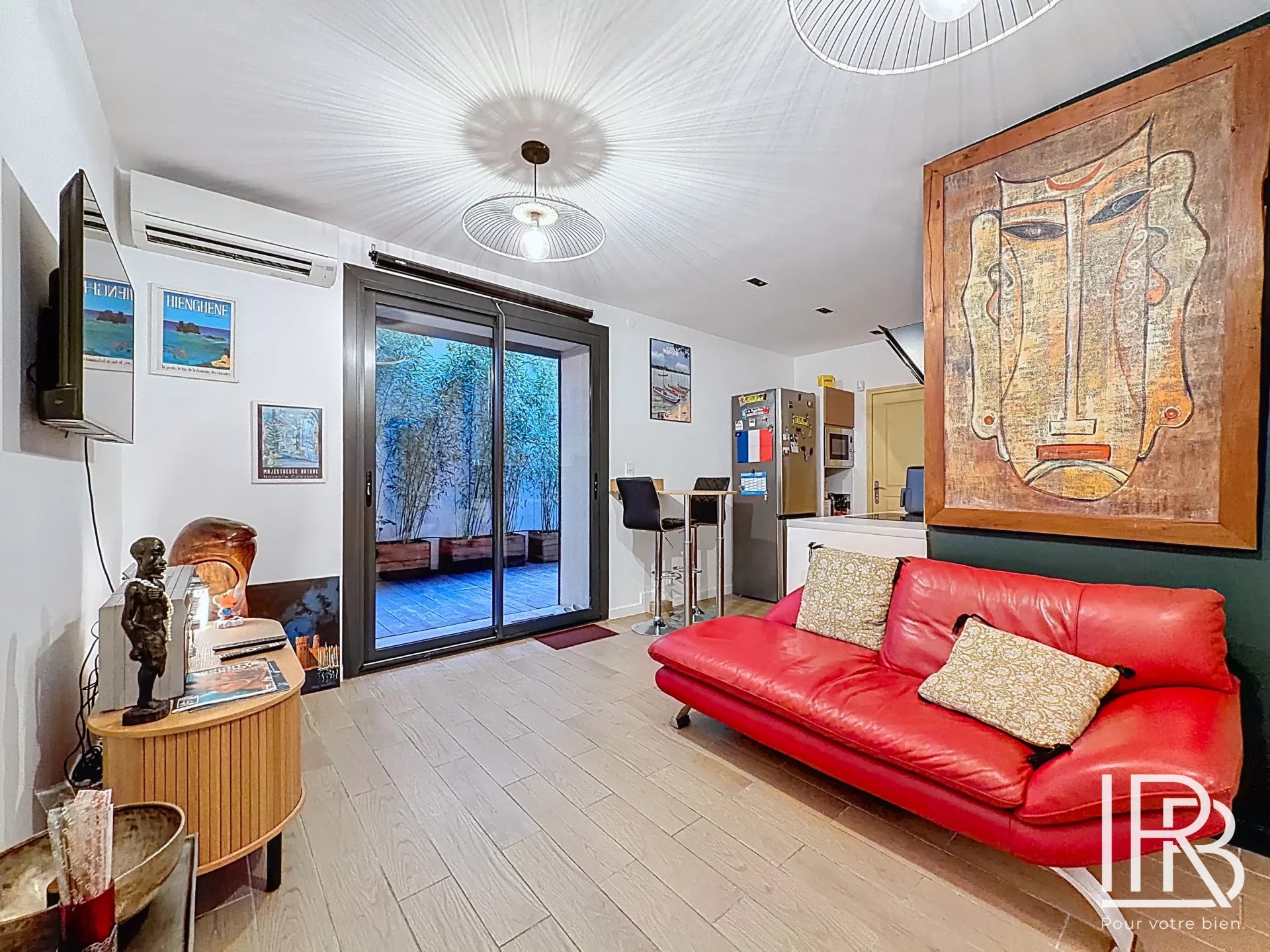 Ce bien rare se compose d’un grand séjour lumineux avec cuisine ouverte, entièrement aménagée et équipée, de deux chambres confortables, et d’une salle d’eau avec WC.