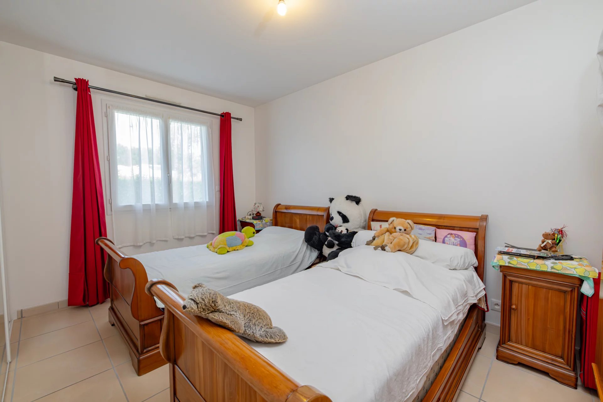 Venez découvrir cette maison parfaitement entretenue,offrant de belles prestations et idéalement située. Dés l'entrée, vous serez séduits par la vaste pièce de vie d'environ de 47 M², regroupant un salon convivial et une cuisine ouverte aménagée et équipée, en chéne avec plan de travail en granit alliant élégante et fonctionnalité. Cet espace bénéficie d'une cheminée avec insert et système de diffusion de chaleur dans l'ensemble de la maison, complété part un chauffage au sol pour un confort optimal en toute saison. La partie nuit propose trois chambres lumineuses ainsi qu' une salle d'eau moderne équipée d'une grande douche à l'italienne. Un garage attenant de 25 M², accessible depuis la cuisine, peut faire également office de cellier et buanderie, il peut facilement être réaménagé selon vos besoins. A l'extérieur vous profiterez d'un jardin entièrement clos et sécurisé, avec portail électrique,une grande terrasse, idéal pour accueillir famille et amis. Un espace dédié au stationnement vient parfaire l'ensemble. Une opportunité rare sur le secteur, à visiter sans tarder! Pour celà, merci de contacter votre agent commerciale Mme Bezos Tatiana.
