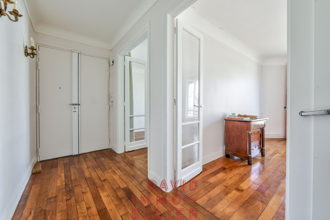Dans un bel immeuble 1930 Art Déco bien entretenu, au 5ème étage avec ascenseur, cet appartement de 3 pièces de 74,77 m² Loi Carrez offre de belles vues dégagées sur les toits de Paris et la tour Eiffel, au dessus du métro aérien.