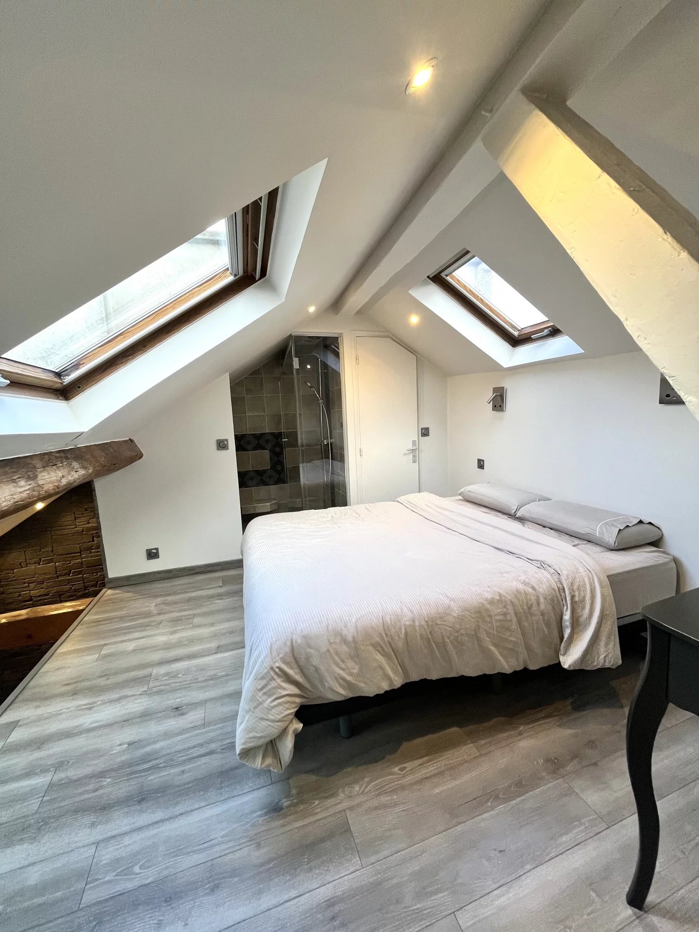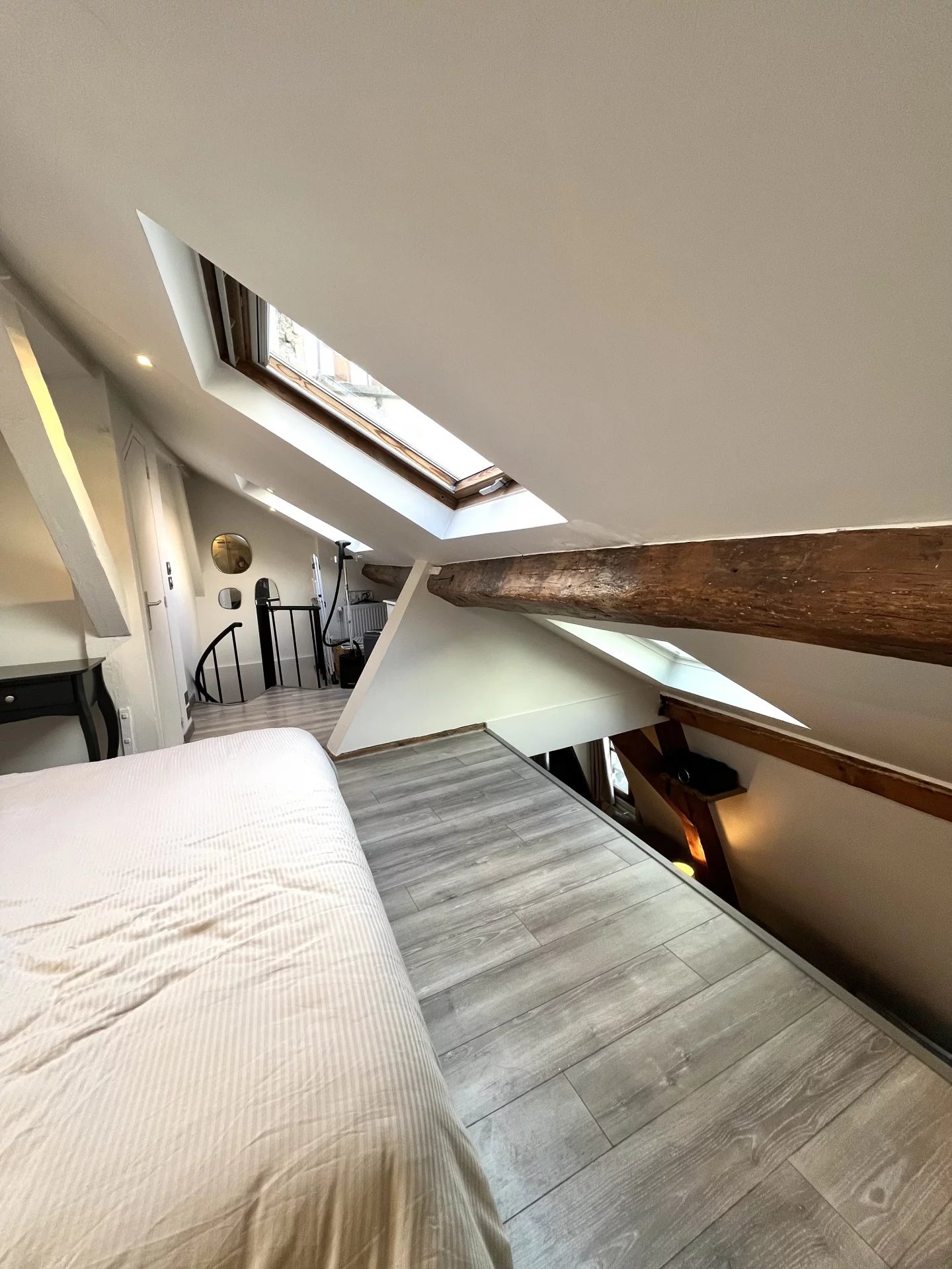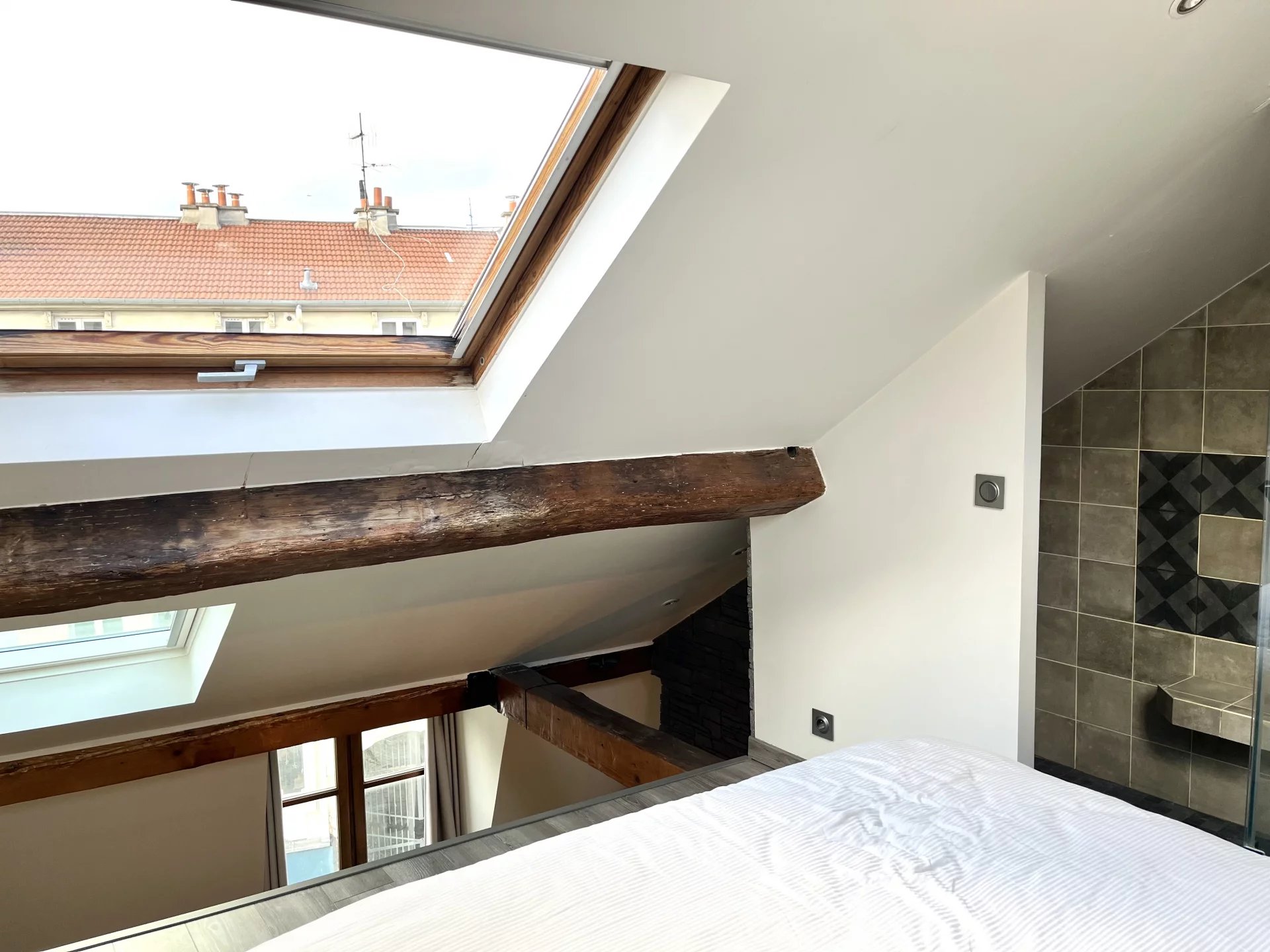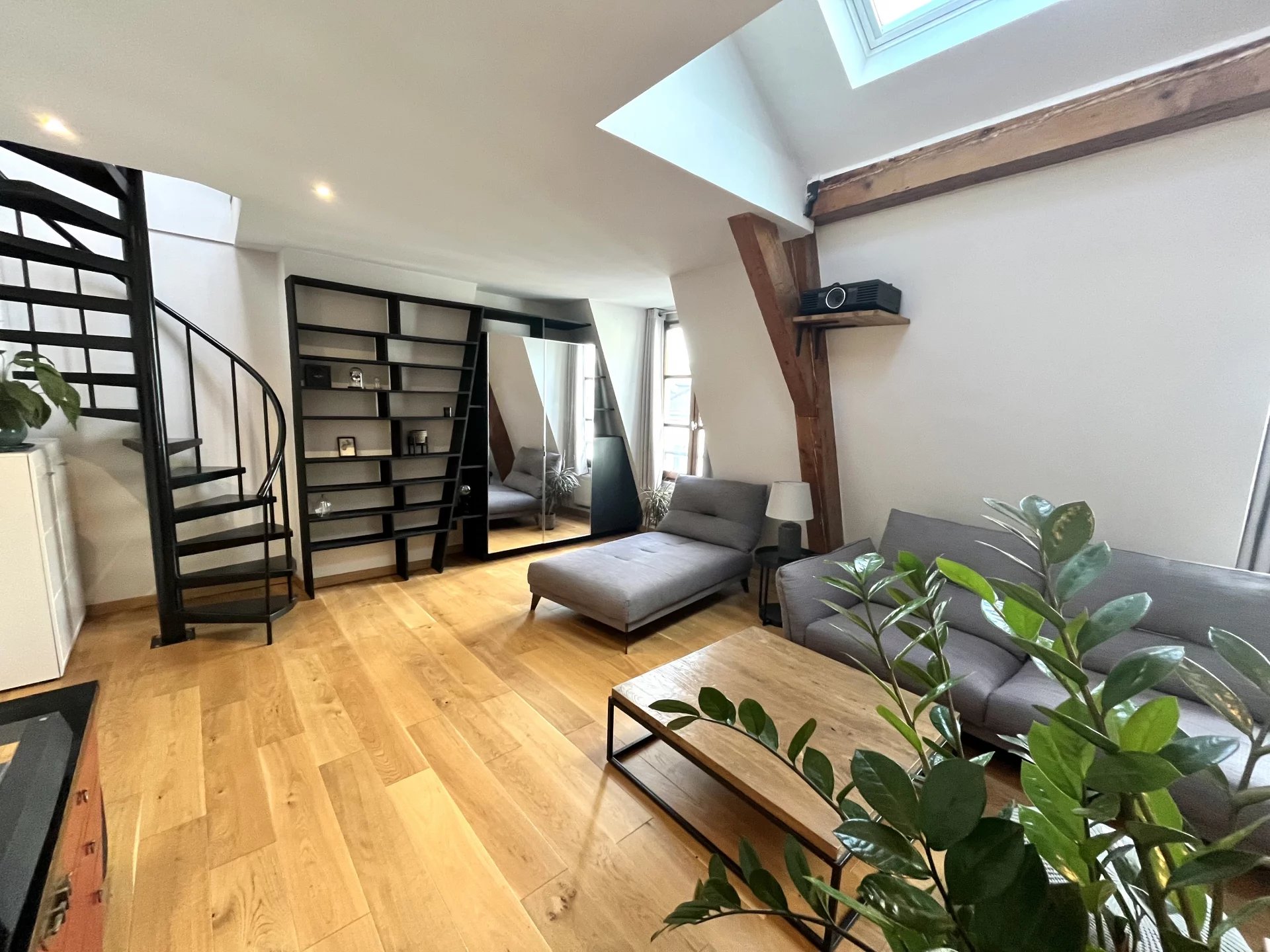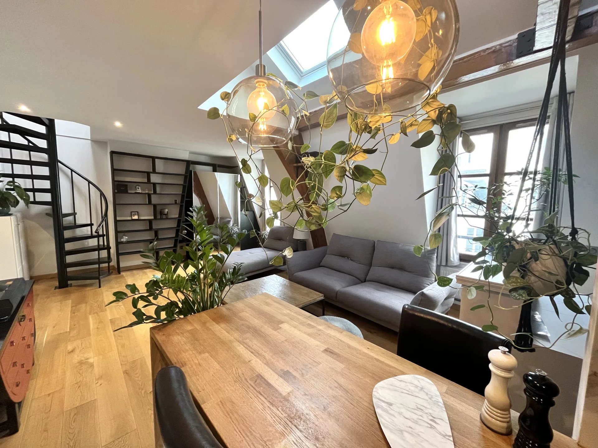 A proximité des commerces et transports, au 3ème étage sans ascenseur d'un immeuble ancien avec digicode, vous serez subjugués dès votre entrée par la lumière, la décoration raffinée et le charme de ce duplex de 61,22m².