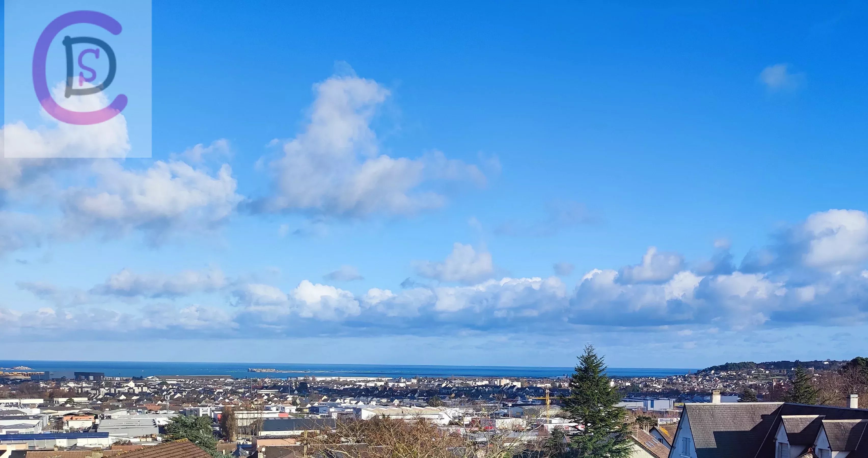 Venez découvrir sans tarder cette maison en exclusivité située sur les hauteurs de Tourlaville qui offre une vue à 180° sur la mer.