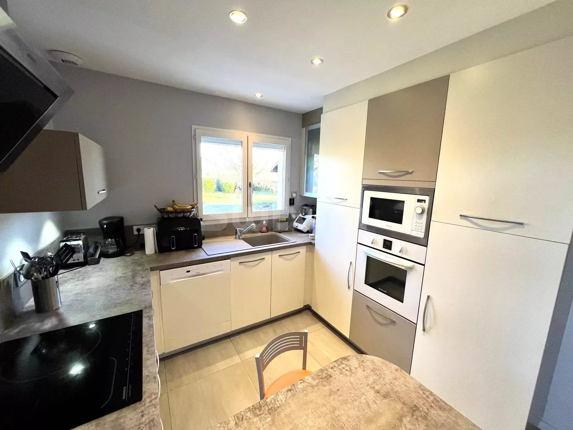 Maison individuelle construite en 1980, parfaitement entretenue et régulièrement modernisée, offrant de beaux volumes et un cadre de vie confortable. Dès l’entrée, vous serez séduit par la luminosité des pièces de vie et l’espace généreux dédié au séjour/salle à manger, prolongé par une agréable véranda ouvrant sur le jardin. La cuisine équipée, récente et fonctionnelle, complète harmonieusement cet espace convivial.