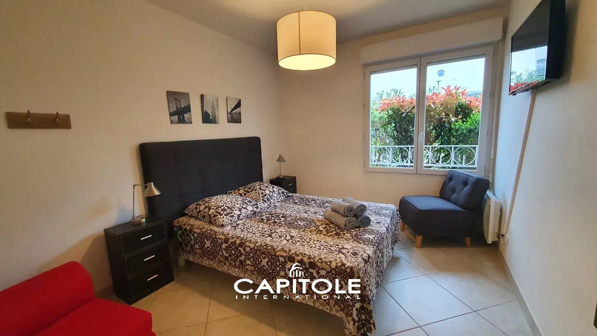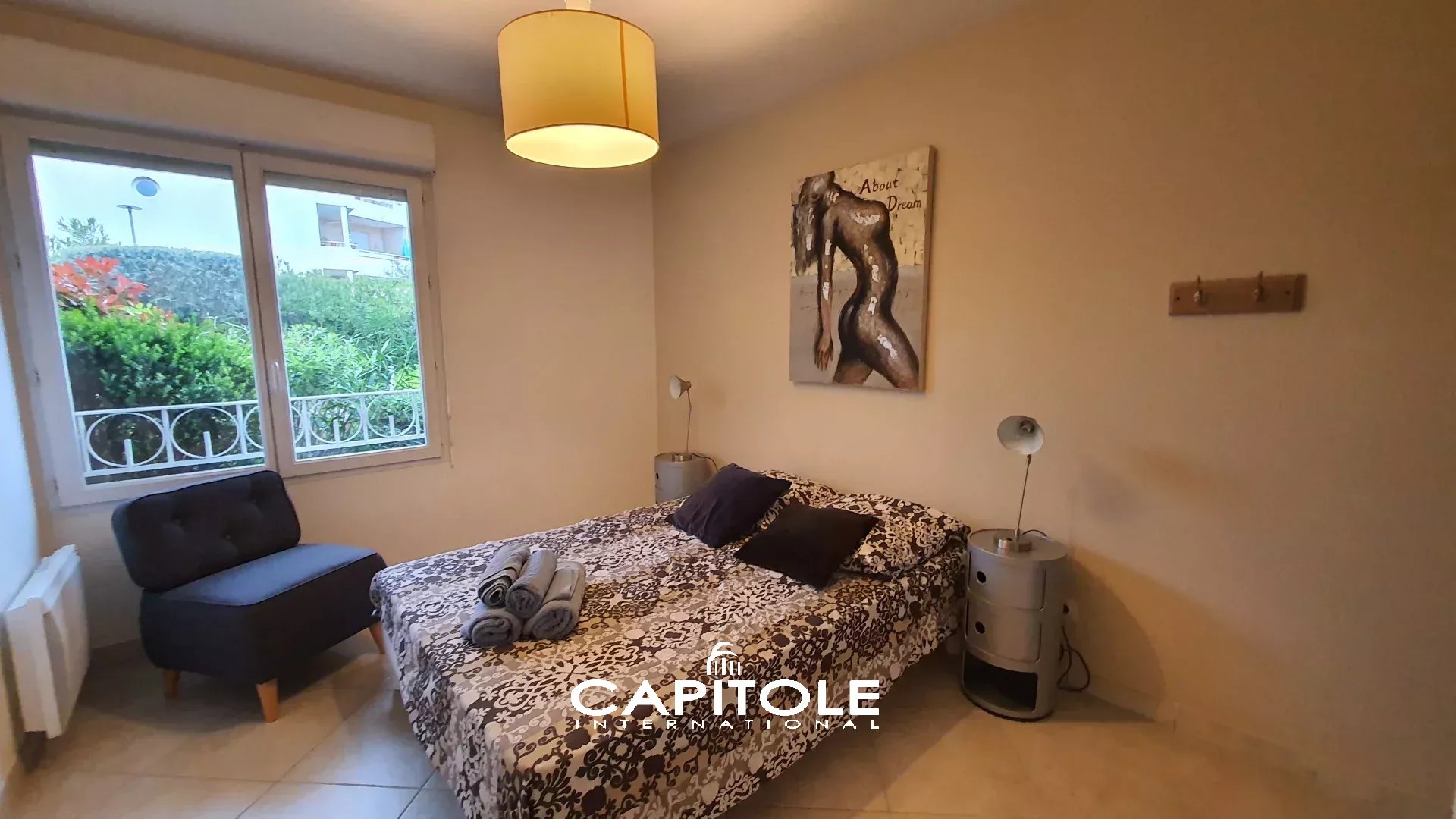 Magnifique appartement meublé de 3 pièces d'environ 64 m² traversant. Il comprend une belle pièce à vivre d'environ 30 m² avec cuisine équipée prolongée d'une belle terrasse et un jardin privatif, ainsi que deux chambres et une salle de bain. Appartement très lumineux, au calme profitant d'une belle exposition. Vendu avec un garage. Plages et commerces à pied. Réf: CB1918VA.