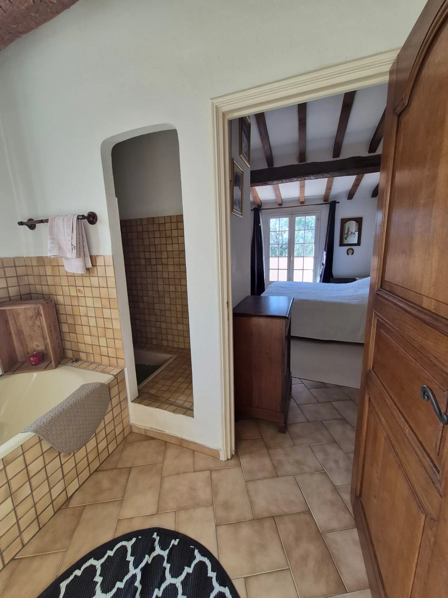 La partie nuit comprend deux chambres, une suite parentale avec salle de bains/douches et toilettes, une salle de douches, des toilettes séparés.