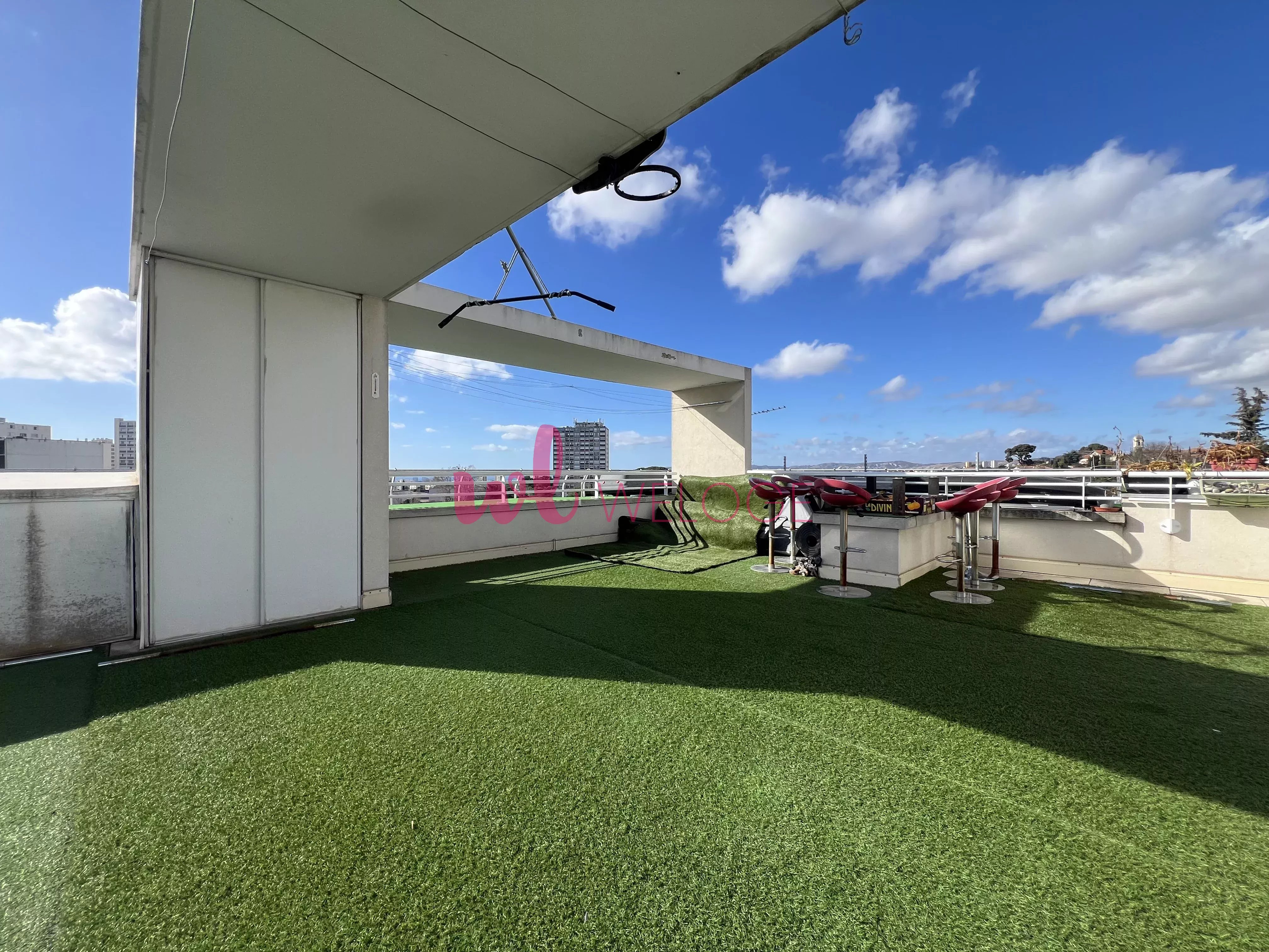 Votre agent Weloge Leslie LORIOT vous propose à la vente ce magnifique appartement T5 en toit terrasse, situé sur le secteur du Merlan/Sainte-Marthe dans une résidence récente et sécurisée. Laissez-vous porter par la sensation de bien-être et de liberté que vous offre cet appartement très bien entretenu. Situé au 2ème étage avec ascenseur, ce T5 se compose d'une cuisine ouverte sur séjour donnant sur un magnifique et lumineux toit- terrasse de 80m2 vue mer, exposé Sud-Ouest, l'espace nuit se compose de 4 chambres, d'une Salle de bain avec toilettes et d’une salle de douche avec toilettes. Possibilité d'acquérir deux places de parking en sus Charges trimestrielles 500€ comprenant: eau froide, eau chaude, parking, ascenseur, parties communes. Bien soumis au statut de copropriété (32 lots). Proche de toutes commodités, axes autoroutier, écoles et transports en commun. Aucun travaux à prévoir. Estimation des coûts annuels : entre 490 € et 710 € par an Prix moyens des énergies indexés sur les années 2021, 2022, 2023 Les informations sur les risques auxquels ce bien est exposé sont disponibles sur le site Géorisques : www.georisques.gouv.fr