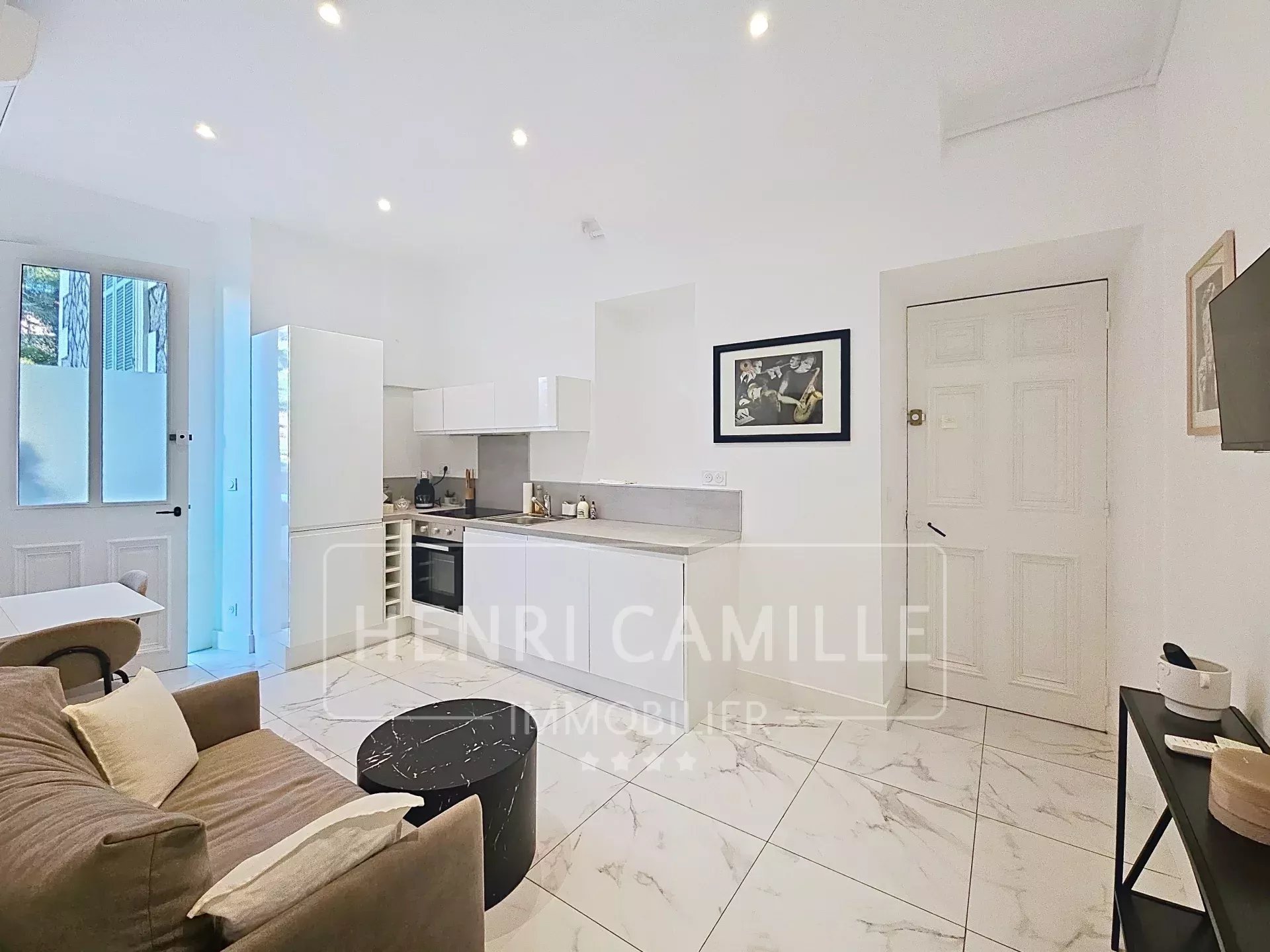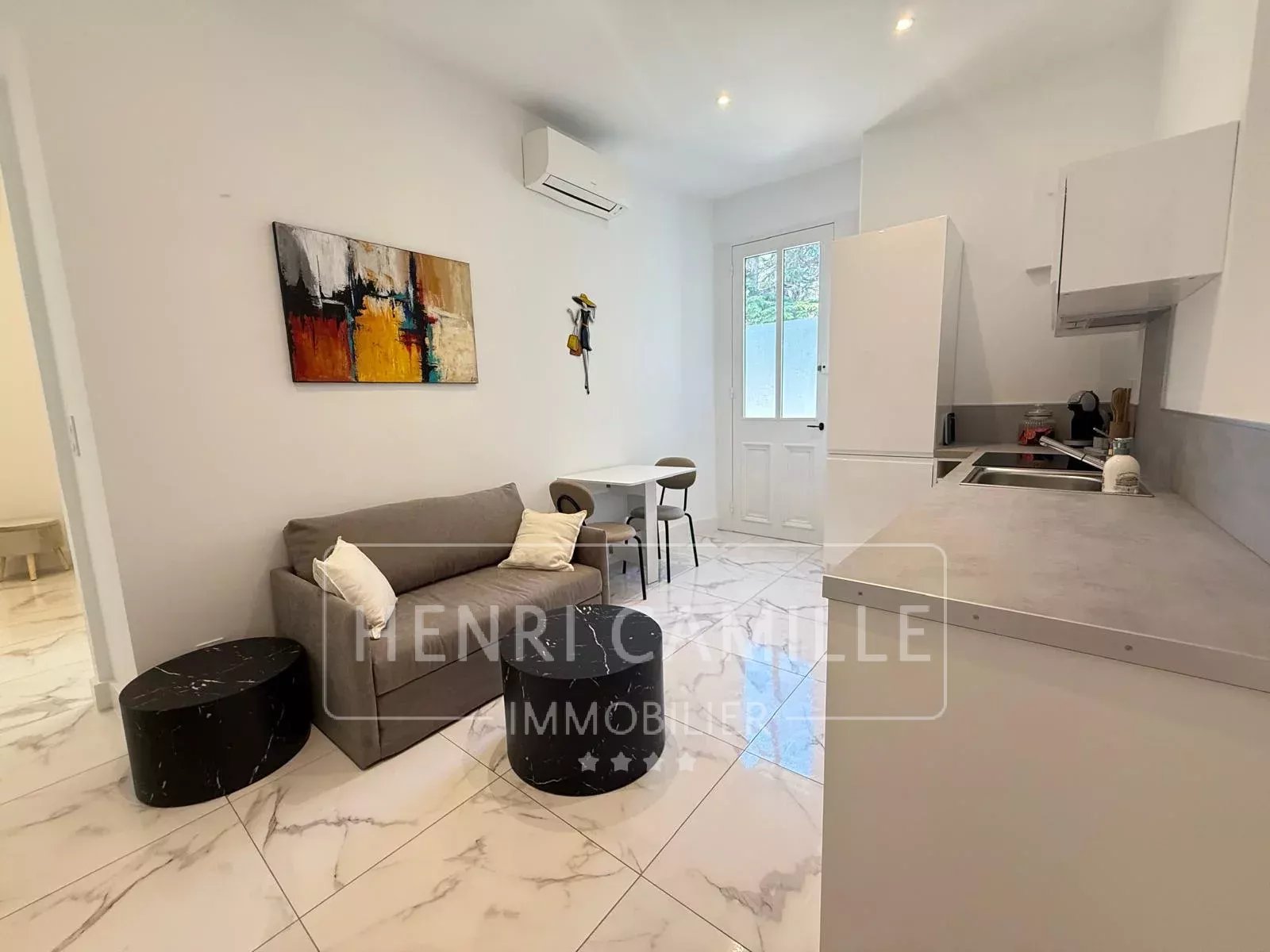 Notre agence vous propose en location longue durée meublée, 1 an renouvelable, cet appartement 2 pièces de 40m2, entièrement rénové en 2025, à la décoration moderne et épurée, au rez-de-chaussée d'une résidence de charme du quartier, sécurisée, et boisée.