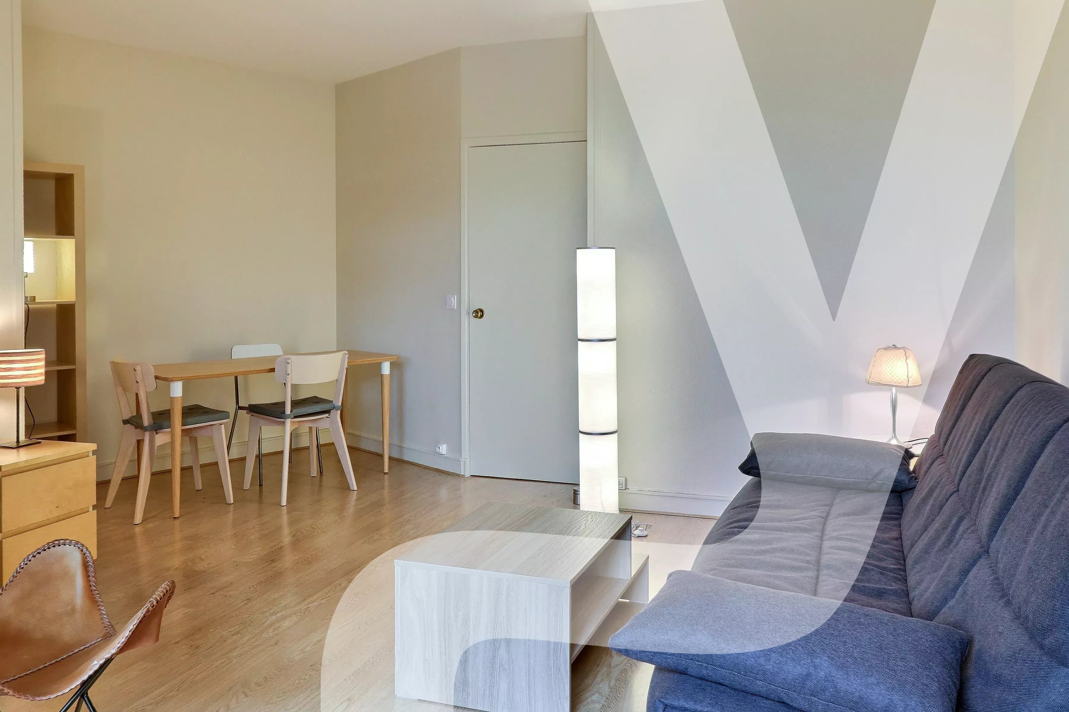 Découvrez cet appartement charmant de 27,85 m² situé dans un immeuble récent entièrement rénové au 1er étage avec ascenseur proche de Bastille et de la place des Vosges, Paris 11ème. Ce bien propose une pièce de vie lumineuse grâce à ses grandes fenêtres en aluminium avec double vitrage, assurant isolation et tranquillité. Le mobilier moderne et fonctionnel inclut un canapé confortable, grand placard pour le rangement et une table basse élégante, parfaits pour se détendre ou recevoir des invités.