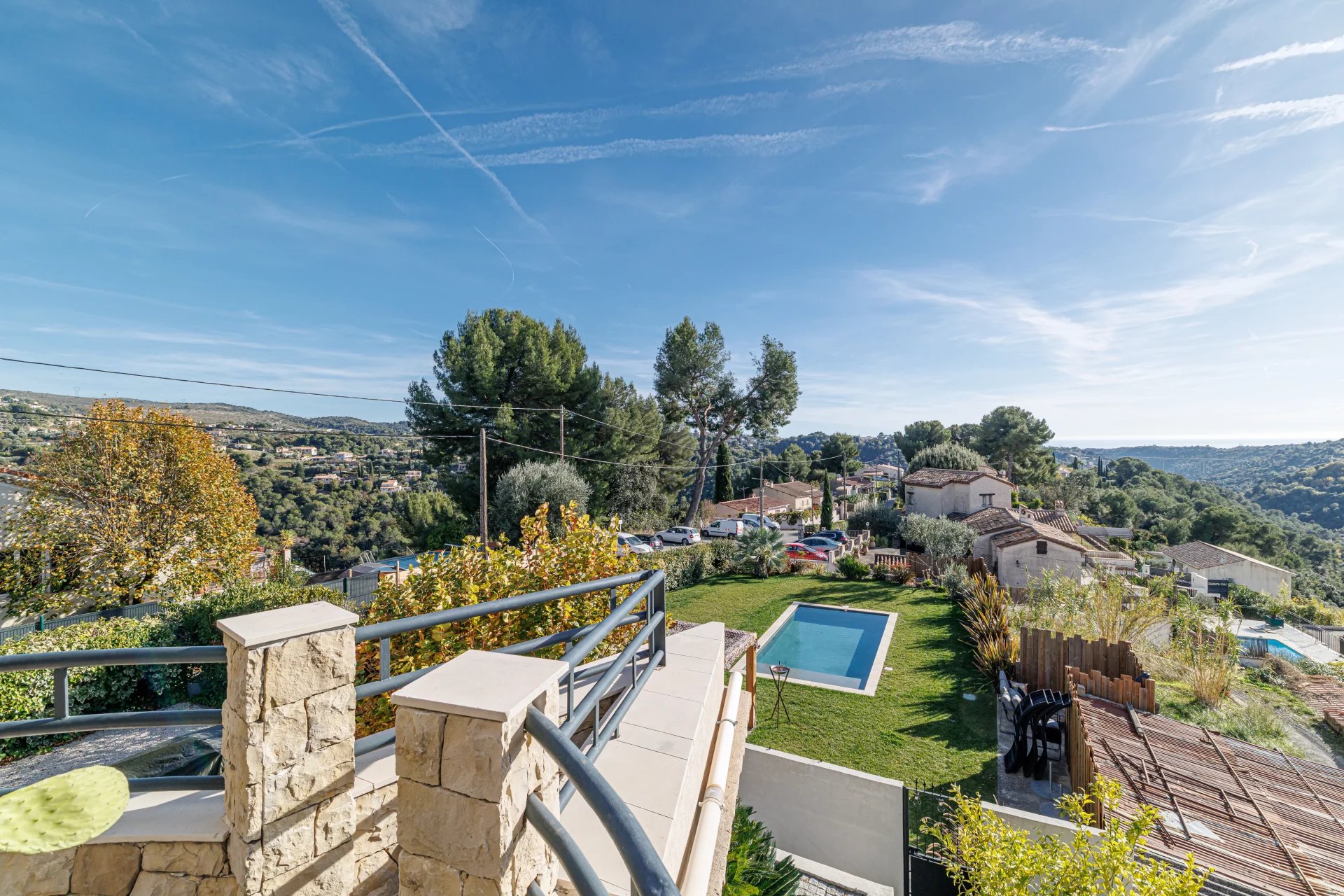 À l’extérieur, un terrain plat soigneusement aménagé entoure une belle piscine, le tout dans un cadre naturel paisible, riche en végétation.