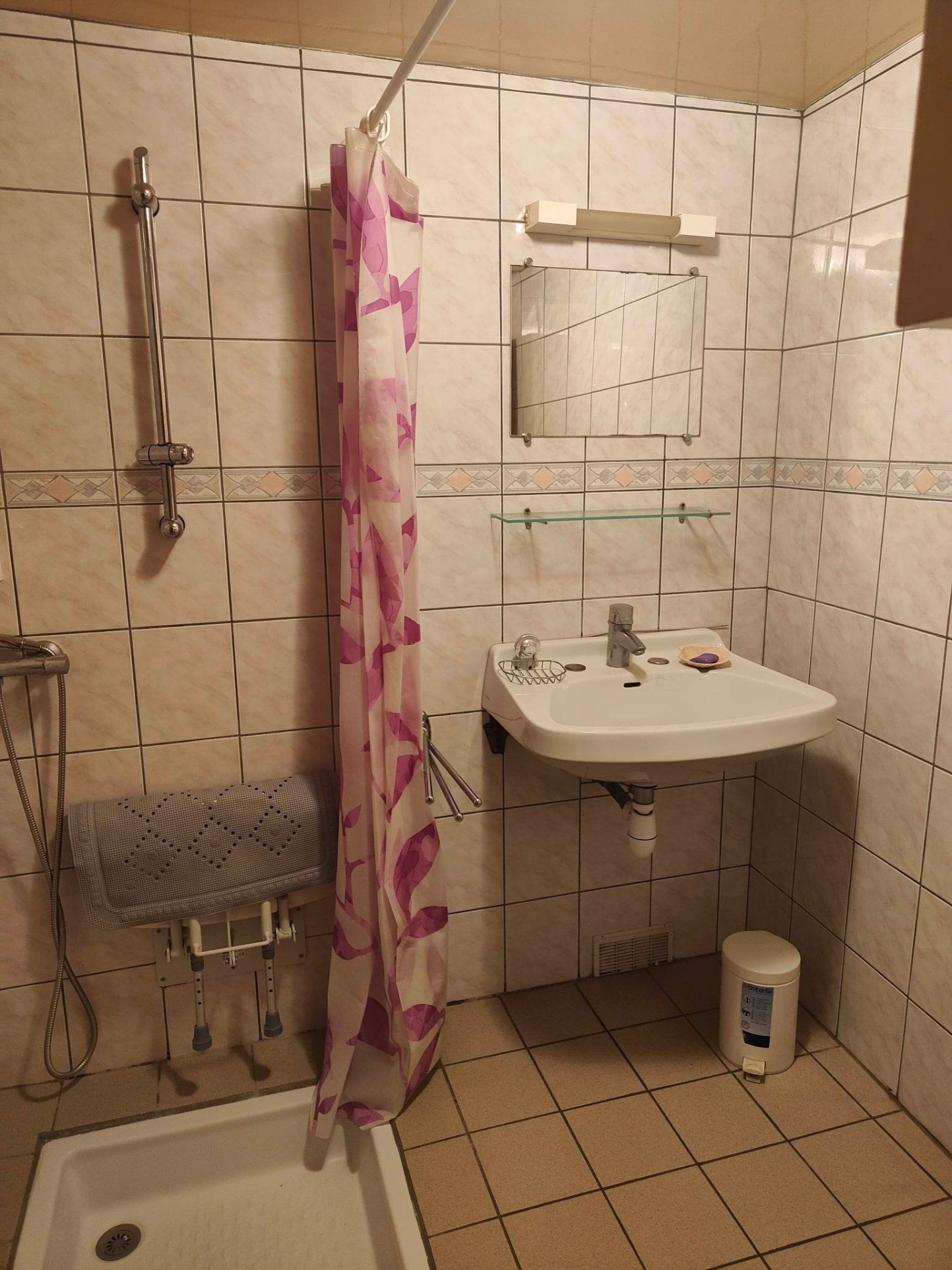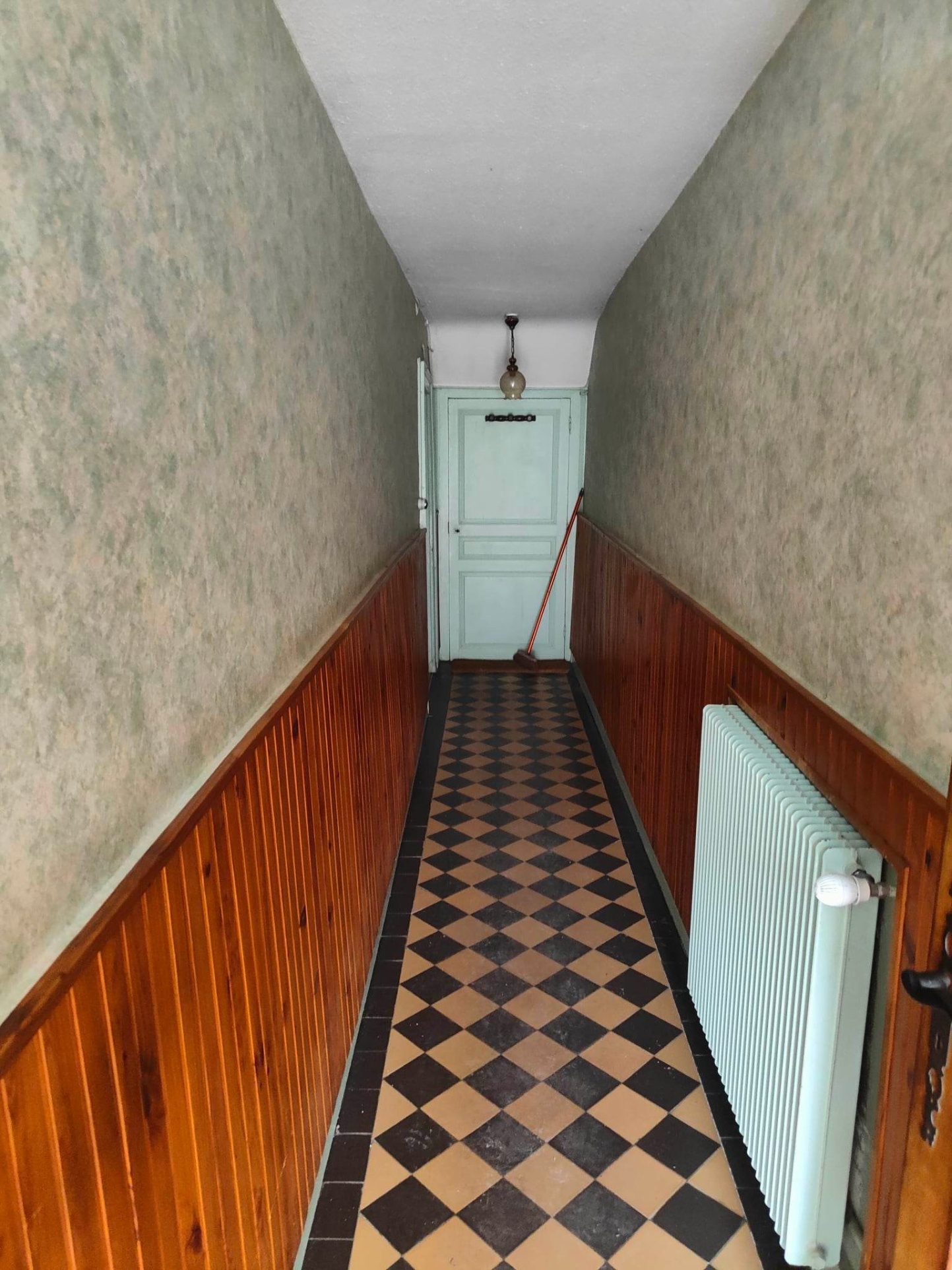 Une entrée desservant une cuisine avec flamande,un salon /séjour,une chambre ,une salle de douche et un WC séparé