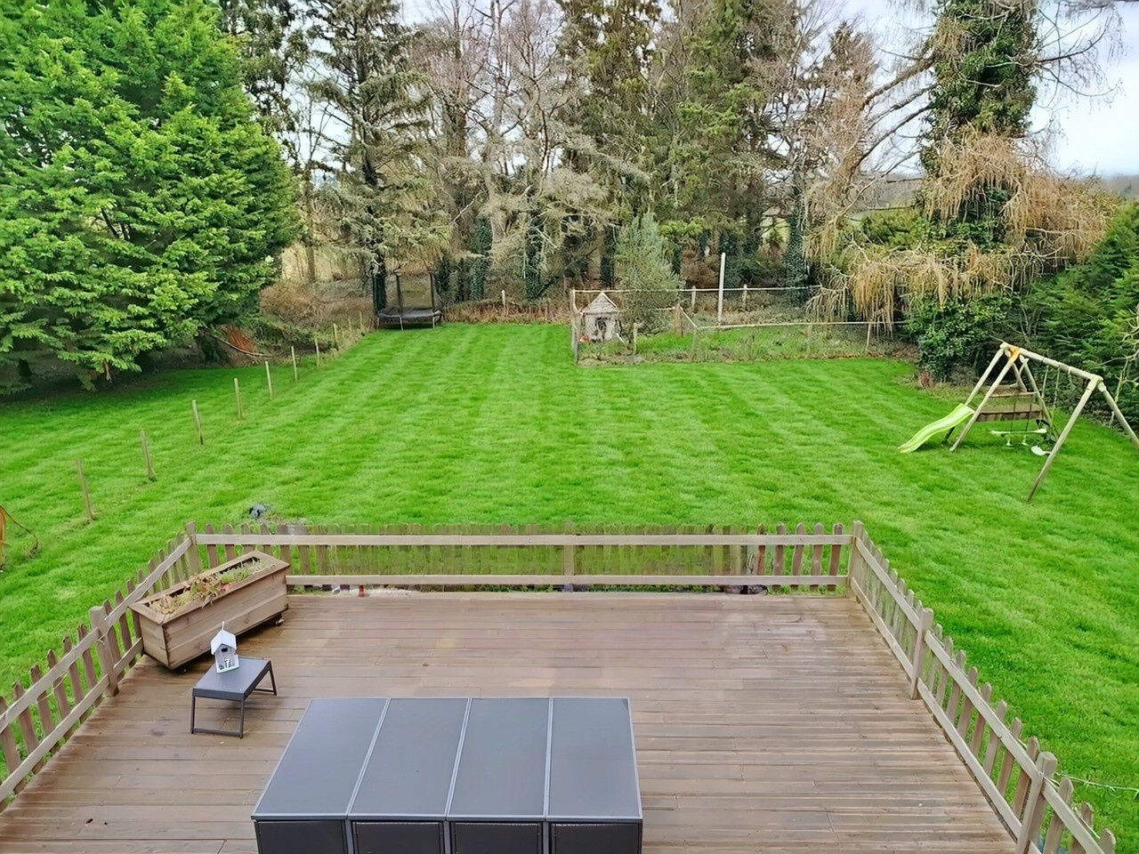 Située dans un environnement calme et verdoyant, à seulement 200 mètres du centre-bourg de Trans-la-Forêt, cette maison familiale de 167 m² offre un cadre de vie privilégié alliant confort moderne, grands volumes et fort potentiel d'aménagement. Des espaces généreux et lumineux : au rdc : Dès l'entrée, vous découvrirez une agréable pièce de vie de 38 m² avec un poêle à bois, idéale pour partager des moments conviviaux en famille. La cuisine, quasi neuve, offre fonctionnalité et modernité. Un dégagement donne accès au sous-sol et à l'étage, et dessert deux belles chambres avec placards dont une avec un accès terrasse, un wc suspendu avec lave-mains. A l'étage : Vous retrouvez un palier desservant 4 chambres avec placard, une salle de bains avec WC, un débarras pouvant être transformé en laverie. au sous-sol : un espace garage donnant sur la chaufferie, laverie, et espaces de stockage. Des prestations techniques déjà réalisées : Toiture refaite Électricité rénovée Isolation performante (sols et grenier) Cuisine récente Maison saine et prête à vivre Un extérieur rare et recherché : Vous profiterez d'une superbe terrasse en bois de 60 m², exposée sur un magnifique terrain arboré de 9 000 m², offrant calme et intimité. Un véritable atout : environ 3 000 m² sont constructibles, laissant entrevoir de nombreuses possibilités (extension, seconde habitation, investissement). Un emplacement pratique et accessible : La maison bénéficie d'une situation idéale, à proximité immédiate des services et infrastructures : École primaire dans la commune Ramassage scolaire pour collèges et lycées Vie associative active (sport, loisirs, culture) Commerces et services de proximité dans les communes voisines (épicerie, boulangerie, services) Temps de trajet : 15 minutes de Dol-de-Bretagne 15 minutes de la Gare de Dol-de-Bretagne (liaisons vers Rennes et Saint-Malo) 35 minutes de Rennes 25 minutes du Mont-Saint-Michel Les points forts : 6 chambres Maison rénovée techniquement Grande pièce de vie lumineuse Terrasse bois de 60 m² Terrain exceptionnel de 9 000 m² 3 000 m² constructibles Proximité immédiate du bourg Environnement calme et naturel avec une vue sur le mont dol. Cette propriété représente une opportunité rare, idéale pour une famille recherchant espace et tranquillité, ou pour un projet immobilier avec potentiel de valorisation. A découvrir sans tarder. Prix FAI : 255 000 euros Romuald LOPES (EI) Agent Commercial - Numéro RSAC : 848663928 - SAINT MALO.