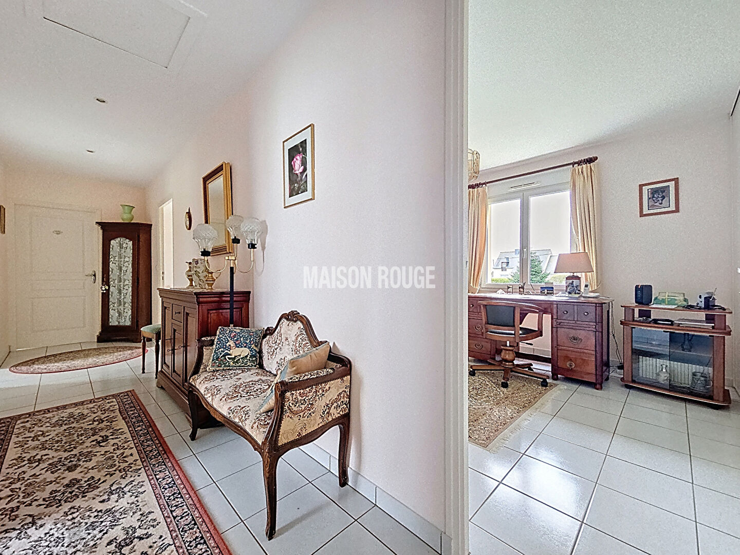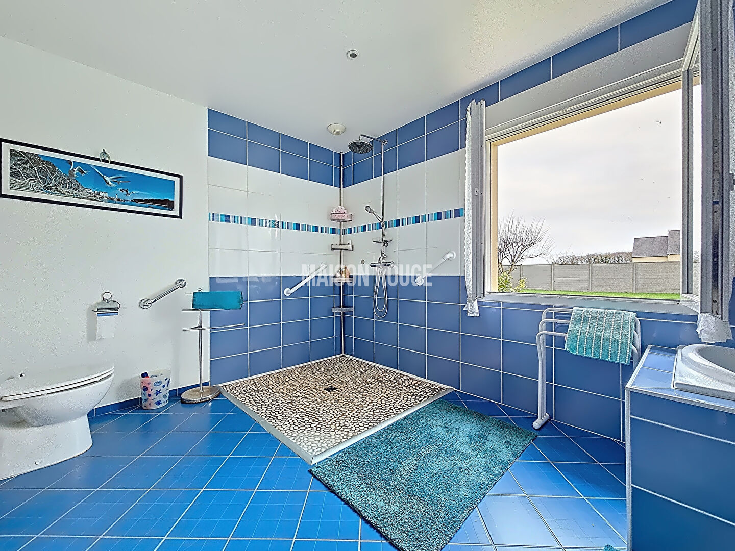 Située dans un environnement campagne, cette belle maison individuelle contemporaine de plain-pied développe une surface habitable de 154m² et séduit dès l'entrée par ses volumes généreux, sa luminosité naturelle et la qualité de ses prestations, le tout à seulement dix minutes de Matignon et quinze minutes des plages de Saint-Cast-le-Guildo, offrant ainsi un parfait équilibre entre calme rural et proximité du littoral. La maison s'ouvre sur une entrée dégagée menant à une vaste pièce de vie où la cuisine ouverte s'intègre harmonieusement à un double salon séjour baigné de lumière, l'ensemble bénéficiant de larges ouvertures donnant directement accès à une terrasse ensoleillée, idéale pour profiter des beaux jours et du cadre verdoyant. L'espace nuit propose trois chambres confortables, pensées pour le bien-être et la tranquillité, ainsi qu'une salle de bains équipée d'une baignoire balnéo et d'une douche, complétée par des toilettes indépendantes avec lavabo. Fonctionnelle au quotidien, la maison dispose également d'une arrière-cuisine pratique, d'un grenier offrant un espace de stockage supplémentaire, d'un double garage avec atelier, d'un cabanon de jardin et d'un préau, renforçant le confort et les possibilités d'aménagement. Le chauffage par géothermie avec chauffage au sol, les menuiseries en double vitrage et l'assainissement individuel témoignent d'un bien conçu pour offrir performance énergétique et confort moderne. Implantée sur une superbe parcelle paysagée de 2 988 m², cette maison lumineuse et parfaitement entretenue bénéficie d'un cadre naturel privilégié, sans renoncer à l'accessibilité des commodités et des axes menant rapidement vers la côte. Un bien rare sur le secteur, idéal pour une vie de plain-pied, en résidence principale comme secondaire. Pour plus de renseignements ou pour organiser une visite, contactez-nous. Prix FAI : 408 720 euros dont 4.80 % honoraires TTC à la charge de l'acquéreur.