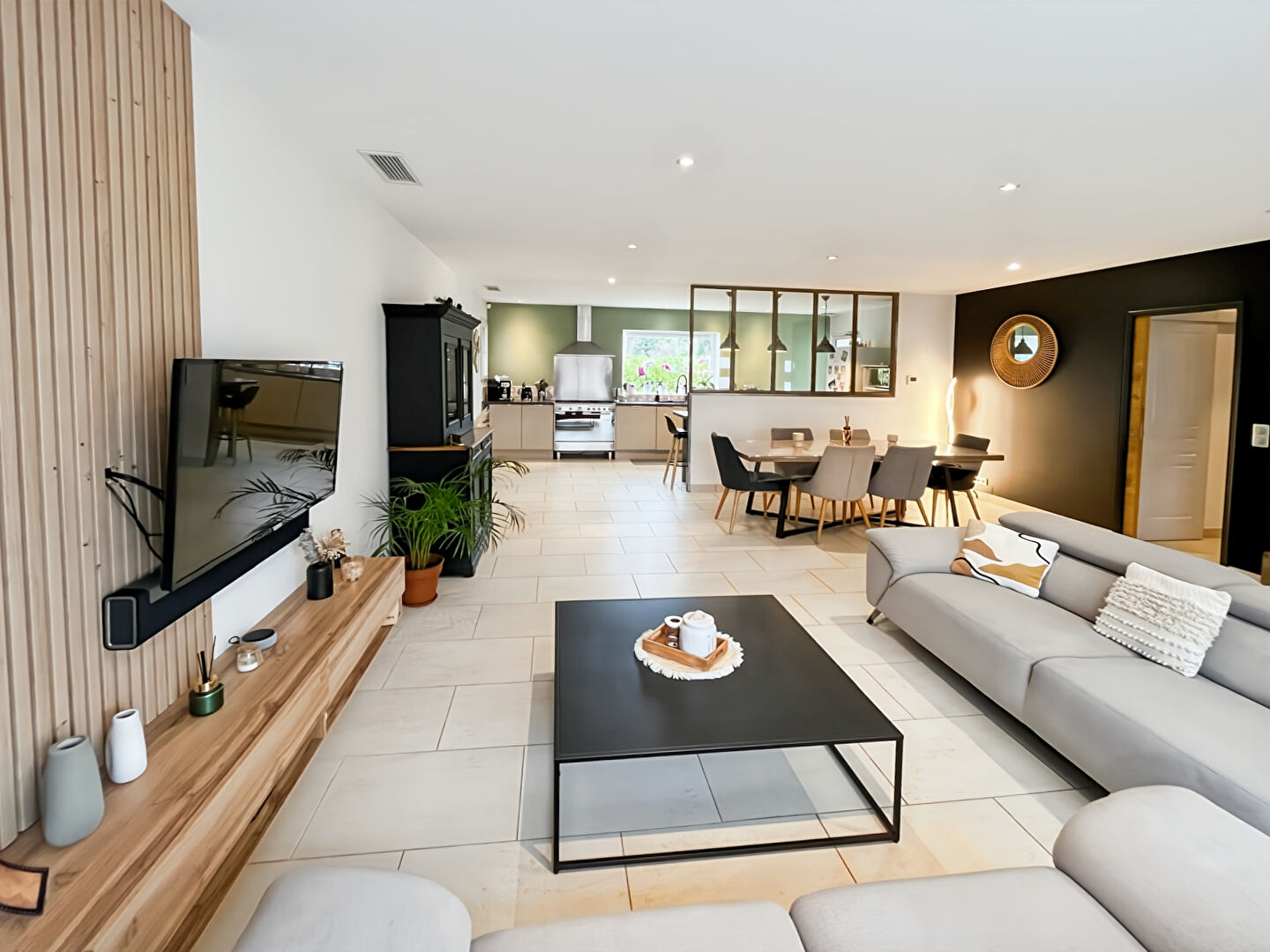 Magnifique villa de plain-pied composée d'une belle pièce de vie lumineuse et spacieuse, avec une cuisine aménagée et équipée, séparée par une verrière qui laisse passer la lumière tout en apportant un côté convivial et moderne. La partie nuit se compose d'une salle de bain avec douche et baignoire, de deux chambres de belle taille avec placards aménagés, exposées plein sud, ainsi que d'une troisième chambre parentale disposant d'un dressing et d'une salle d'eau privative. Un bureau, une buanderie et un bel espace de rangement viennent compléter l'ensemble. Côté extérieur, vous profiterez d'une belle terrasse avec pool house et piscine équipée d'un volet roulant. La propriété dispose également d'un parking, d'un atelier et d'un terrain de pétanque. Le tout situé en fond d'impasse, sans vis-à-vis, offrant calme et intimité.