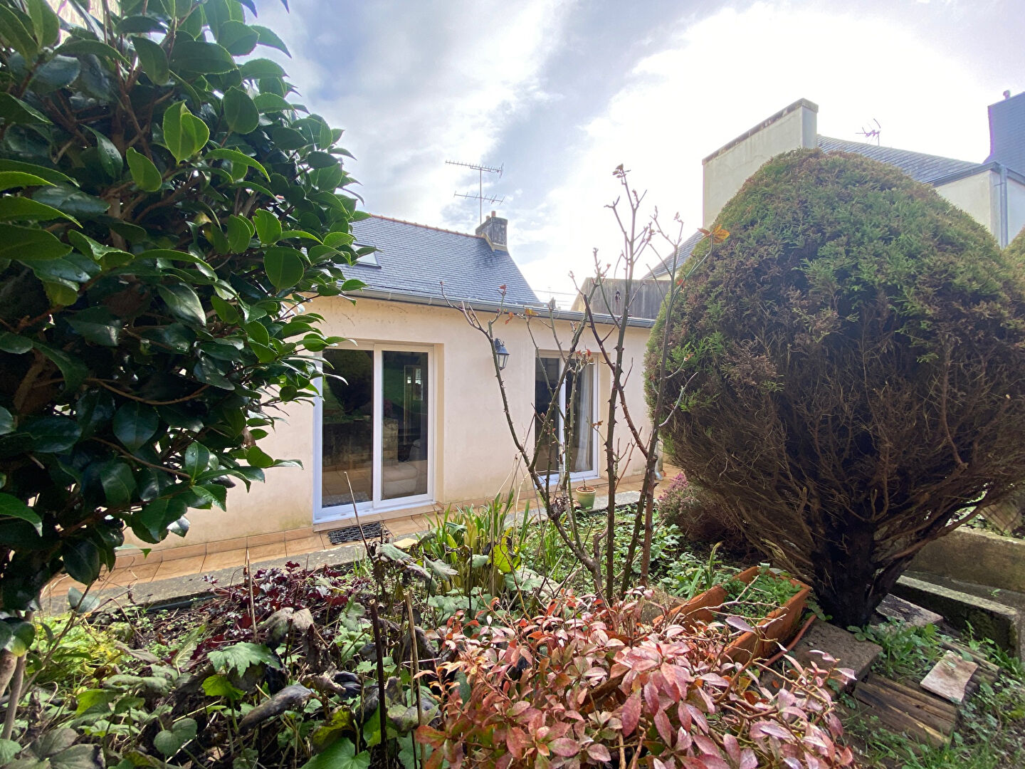 VIE DE PLAIN-PIED et idéalement située au coeur d'un quartier prisé et proche des écoles, cette agréable maison familiale très bien entretenue, mitoyenne d'un côté, offre des volumes fonctionnels et une distribution idéale pour une vie de famille confortable. Au rez-de-chaussée, vous serez tout de suite séduit par une belle entrée avec placard, menant à une pièce de vie lumineuse exposée Sud-Ouest composée d'un salon convivial et d'une salle à manger attenante à une cuisine semi-ouverte. Ce niveau dispose également d'une chambre, d'une salle de bains, d'une buanderie et de WC indépendants. A l'étage, l'espace nuit se compose de deux chambres, d'une salle d'eau et de WC séparés. Les extérieurs proposent une agréable terrasse, un jardin, un cabanon de rangement et un emplacement de stationnement privatif . Toiture refaite entièrement (ardoise et zinc). (5.00 % honoraires TTC à la charge de l'acquéreur.)