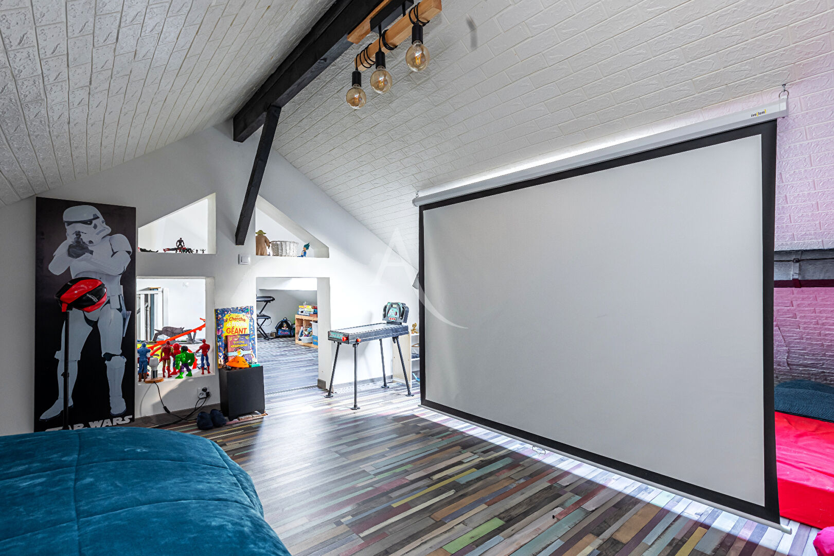 Coup de coeur pour cette splendide maison entièrement rénovée, idéalement située à Créteil, quartier Centre Ancien, à proximité immédiate de la rue piétonne et des bords de Marne. Vous serez séduits par ces beaux volumes, sa belle hauteur sous plafond. et ses 245 m² de surface utile, elle se compose : Au rez-de-chaussée d'une spacieuse entrée, d'une très belle cuisine aménagée ouverte sur la salle à manger, d'un grand salon doté d'un beau parquet massif en chevron, d'un poil à granules et d'une charmante véranda donnant sur un grand jardin. Au premier étage trois chambres et un dressing, une magnifique salle de bain de 11 m² avec douche à l'italienne baignoire et WC. Au deuxième étage les combles sont aménagés en salle de jeux et salle de cinéma. Le sous-sol est entièrement aménagé avec plusieurs espaces : salle de sport, dressing, bureau. Vivre dans cette maison c'est d'être à proximité de tout à pied : rue piétonne à 300 m métro à 10 min. Vous pouvez prendre contact avec Élodie au 06.52.66.70.71 elle se fera un plaisir de vous renseigner. (1.27 % honoraires TTC à la charge de l'acquéreur.)