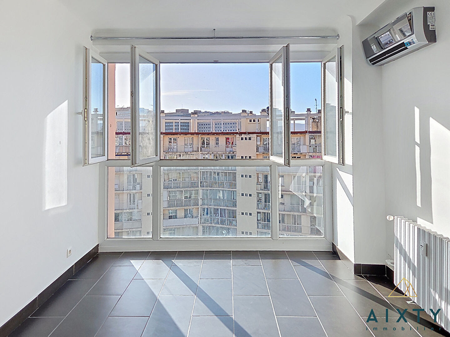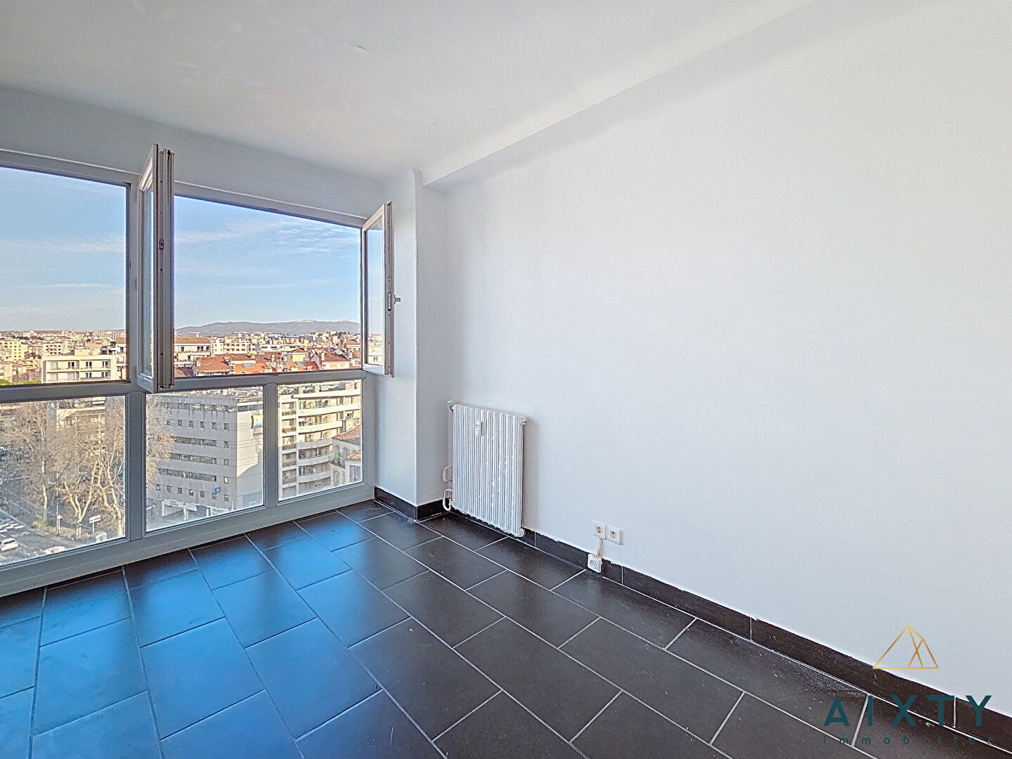 AIXTY Marseille - Famille ou Colocation A moins de 300 mètres de la Faculté de Médecine et de la Timone, découvrez ce bel appartement de 93 m², situé au 10eme étage d'un immeuble des années 60. Traversant Sud/Nord, lumineux avec son balcon. Une entrée spacieuse distribue harmonieusement les espaces. Un grand double séjour exposé plein Sud, parquet chaleureux au sol, climatisation, accès au balcon où une table pour deux s'installe facilement. Une cuisine indépendante avec loggia fermée et une première chambre côté Nord bénéficiant d'une vue dégagée jusqu'au Pic de l'étoile. Coté nuit : Une chambre Sud avec placard et climatisation Une chambre Nord avec moulures et vue dégagée Une salle d'eau avec douche à l'italienne Deux placards de rangement, et un WC séparé Double vitrage partout. Pas de gros travaux à prévoir, hormis moderniser la cuisine selon vos goûts, et des finitions d'ordre esthétique. Actuellement en T4 (3 chambres + double séjour), l'appartement peut facilement devenir un T5 avec 4 chambres, idéal pour optimiser un projet locatif. Immeuble bien entretenu avec ascenseurs et gardien. Parking de résidence accessible aux copropriétaires (pas de place privative attitrée). Cave d'environ 4 m² incluse. Oui, 10eme étage, vue dégagée, exposition sud-ouest Oui, double séjour avec balcon confortable Oui, 3 chambres actuelles possibilité 4 eme chambre (colocation) Oui, double vitrage + climatisation Oui, cave 4 m² Oui, parking résidence copropriétaires non privatif DPE : A venir Estimation des dépenses d'énergie : A suivre Charges : 300 euros / mois (eau, ménage, gardien, ascenseurs, chauffage collectif gaz) Taxe foncière : environ 1900 euros Prix de vente : 269.000 euros Honoraires à la charge du vendeur RCS : 982 785 834 Marseille Les informations sur les risques auxquels ce bien est exposé sont disponibles sur le site Géorisques : www.georisques.gouv.fr Retrouvez toutes les photos, le descriptif détaillé et les informations quartier sur www.aixty.com
