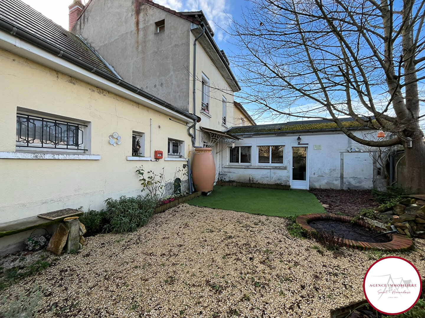 Cette agréable maison de ville sur trois niveaux offre de beaux volumes et un jardin avec garages. Au rez-de-chaussée, vous découvrirez une entrée avec bureau et rangement, un salon lumineux, une salle à manger conviviale et une cuisine équipée avec cellier. Une buanderie et une chaufferie donnent accès aux garages, tandis qu'une terrasse côté jardin est accessible depuis la cuisine et la salle à manger. A l'étage, trois chambres et une salle de bain avec WC composent l'espace nuit principal. Le dernier étage sous pente accueille deux chambres supplémentaires ainsi qu'une salle de jeux, avec un grenier exploitable au-dessus du bureau de l'entrée. La maison bénéficie d'un chauffage au gaz de ville et d'un puits dans le jardin. Elle représente une opportunité idéale pour une famille recherchant confort, espace et proximité des commerces et du centre-ville. (7.00 % honoraires TTC à la charge de l'acquéreur.)