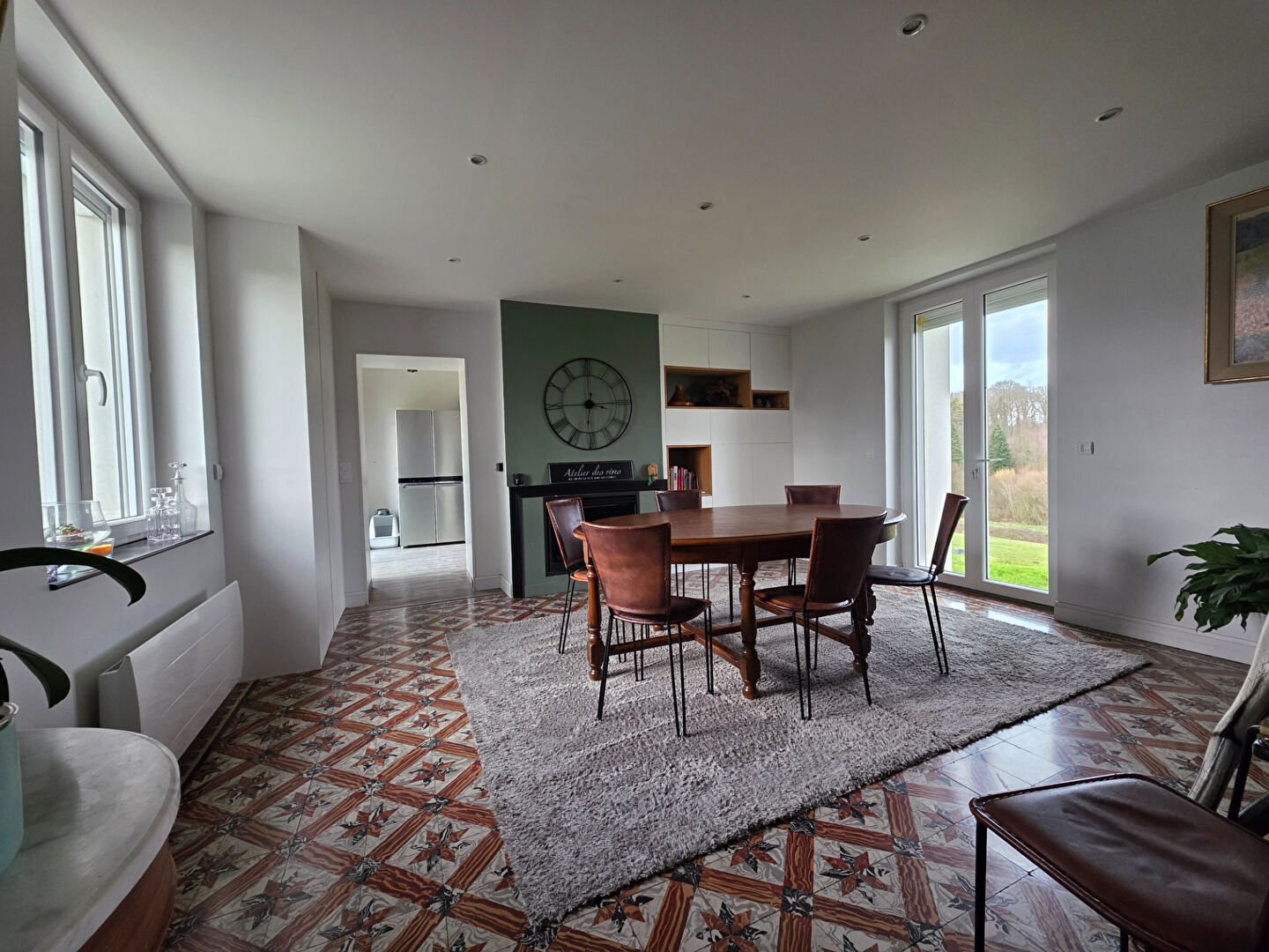 Ancienne fermette rénovée de 128,90 m² sur 3 niveaux ( 135 m² de plancher). Au coeur d'une vallée Normande, belle vue boisée. Bonne performance énergétique , classé en C, maison très bien isolée avec un système de chauffage bois et granulé. Un bien rare. Idéal pour une famille ou un projet de vie à la campagne. Nombreux bâtiments. Aménagé extérieurement pour chevaux. Au rdc: Entrée, séjour avec insert à pellets, salon avec poêle à bois, cuisine aménagée et équipée, buanderie, WC; Au 1 er: Palier: 2 chambres dont une parentale, salle d'eau , salle de bains, WC, dressing. Au 2 ème: 2 chambres. Terrain d'environ 2 hectares 17. (4.89 % honoraires TTC à la charge de l'acquéreur.)