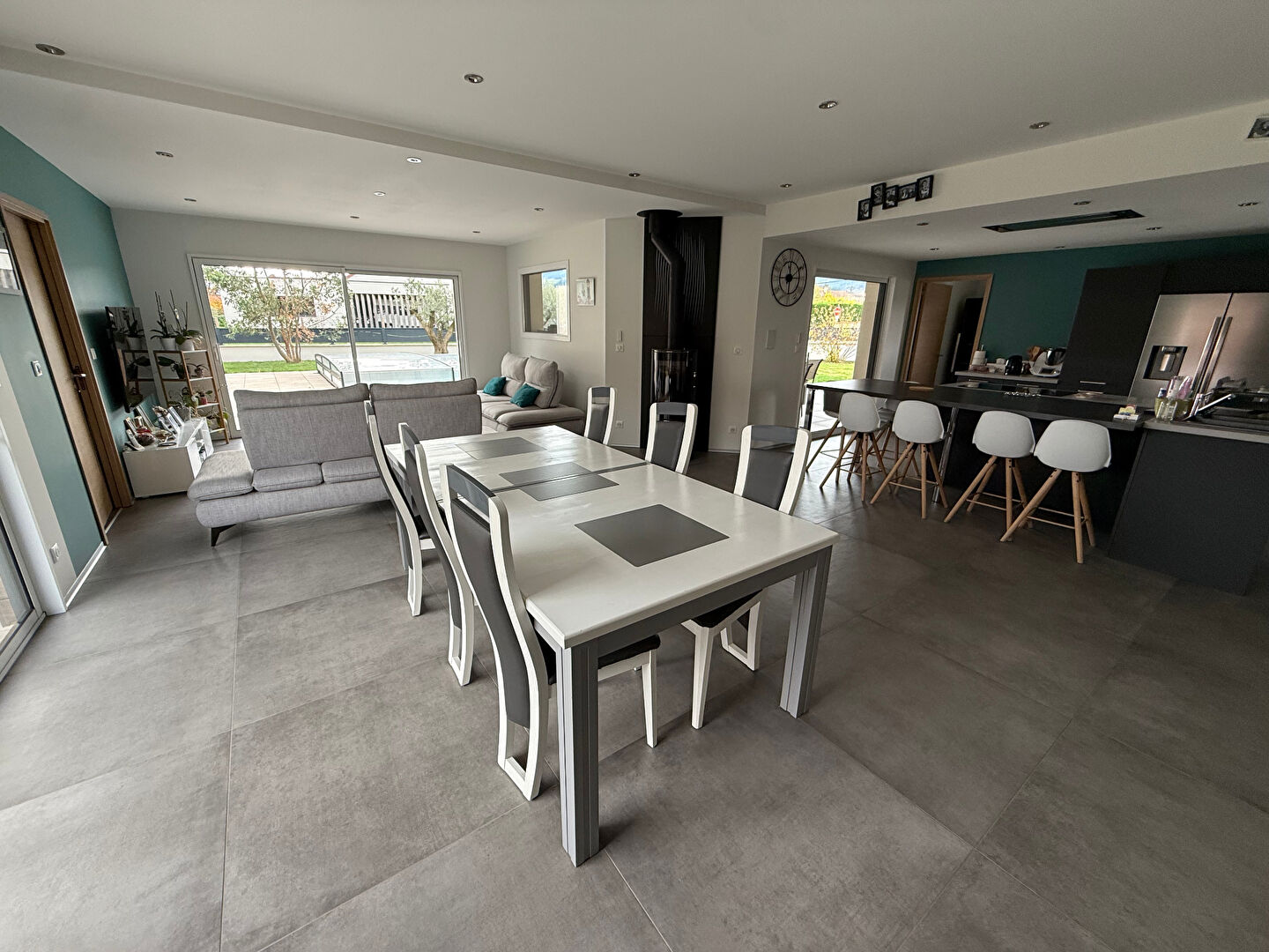 Région Auvergne Rhone-Alpes - Département Loire (42) - A moins de 15 minutes de Roanne,Sur la Cote Roannaise, Rare au centre de Renaison 42370, village dynamique de la Cote Roannaise avec tous commerces, écoles maternelles, primaires et collège, accessibles à pied, Villa contemporaine achevée en 2023 de 158 m² habitables comprenant de plain pied hall d'entrée, vaste espace de vie avec cuisine équipée ouverte 64 m², buanderie cellier, bureau, suite parentale avec dressing et salle d'eau, wc avec lave mains ; à l'étage : palier, 3 chambres, salle d'eau aménagée, dressings, wc. 70 m² de dépendances : garage double isolé, atelier, chaufferie, carport ; Cour, terrain clos et paysagé 1231 m² avec piscine et pool house. Chauffage au sol par pompe à chaleur, poêle à bois. Prestations de qualité, intérieur et extérieur totalement terminés. Tout y est bien pensé et rien ne manque ! DPE A Contactez-moi par mail carole@digustoimmobilier.fr ou par téléphone 06.60.78.82.71 pour plus d'infos et prévoir une visite de cette opportunité de l'Agence DI GUSTO IMMOBILIER RENAISON Selon l'article L.561.5 du Code Monétaire et Financier, pour l'organisation de la visite, la présentation d'une pièce d'identité vous sera demandée, ainsi qu'une validation de votre financement. VENTE IMMOBILIER RENAISON Information Loi Alur : Mandat de vente signé par Madame Carole DI GUSTO, titulaire de la carte professionnelle TRANSACTIONS n° CPI 4201 2016 000 008 195, agissant en sa qualité de gérante. COPROPRIETE = NON