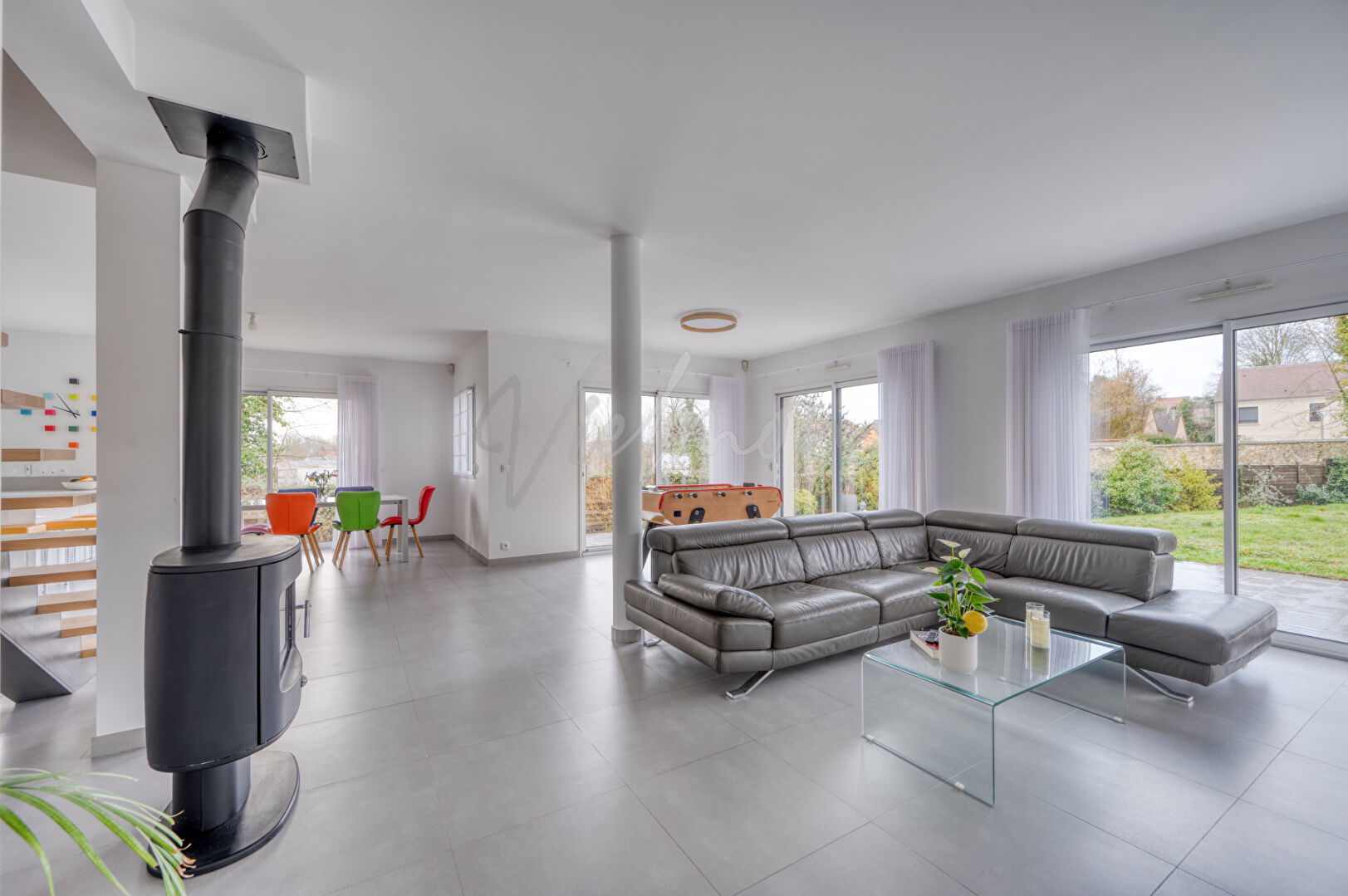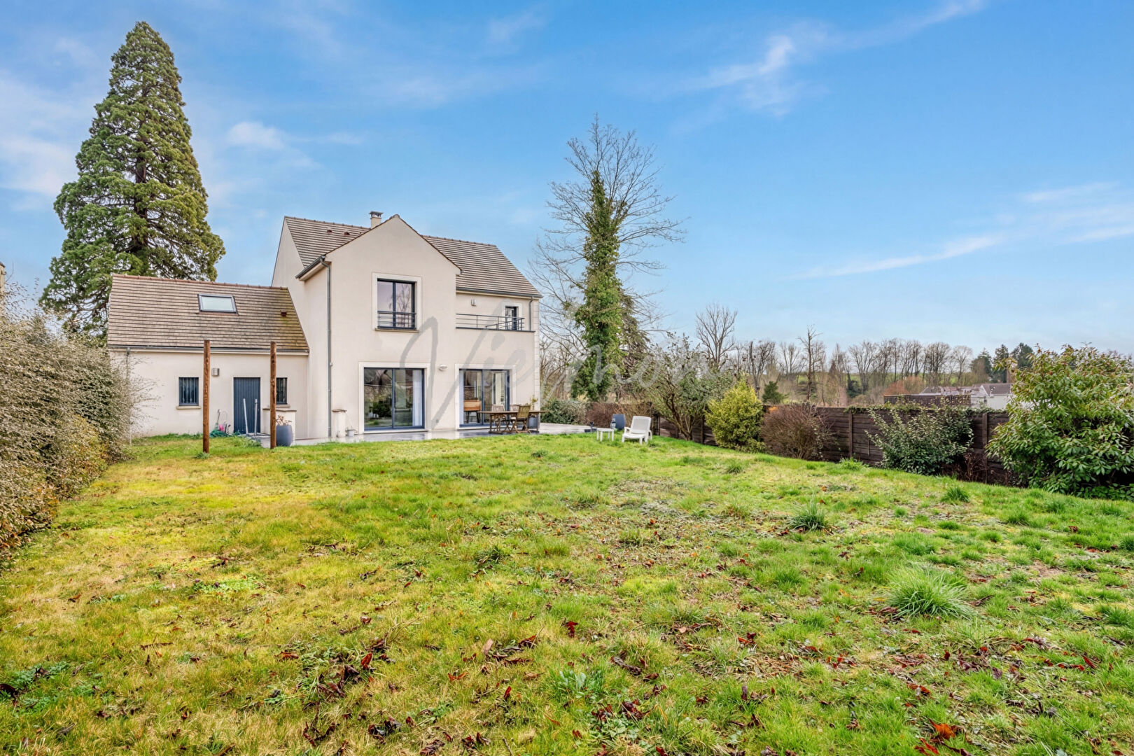 Select By Vielmon vous propose cette maison contemporaine construite en 2016 située dans un environnement résidentiel calme et recherché de Crespières. Développant environ 200 m² habitables, elle séduit dès l'entrée par ses volumes généreux et la qualité de sa distribution. Le rez-de-chaussée s'organise autour d'un vaste espace de vie de plus de 71 m², baigné de lumière grâce à son exposition ouest, intégrant un séjour agrémenté d'un poêle à bois et une cuisine ouverte, entièrement aménagée et équipée, tournée vers les extérieurs. A ce niveau, une chambre de 12m² avec sa salle d'eau permet une vie de plain-pied ou l'accueil confortable d'invités. A l'étage, les espaces nuit offrent de belles surfaces avec une grande suite parentale de 25m² avec dressing, salle d'eau et terrasse privative, 4 chambres de bonne taille (12 à plus de 14 m²), complétées par une salle de bain. L'ensemble est parfaitement entretenu et ne nécessite aucun travaux. Un double garage de 32m² avec un espace buanderie et en sous-sol un cave complètent ce bien. Implantée sur un terrain arboré de 1 120 m², la maison dispose également d'une terrasse ouvrant sur le jardin, d'un double garage de 32m² ainsi que d'un espace buanderie, d'une cave et de stationnements extérieurs. L'environnement est à la fois paisible et pratique, avec des arrêts de bus accessibles en deux minutes et la proximité des écoles maternelle, élémentaire et du collège. Une maison rare sur le secteur, alliant modernité, volumes et qualité de vie, idéale pour une installation familiale durable. A visiter sans tarder ! Annonce rédigée sous la responsabilité de Xavier Laval (EI) - R.S.A.C : 910 405 380 Versailles (TEL : 06 61 41 32 39) Mail : xavier.laval@selectby.fr (3.52 % honoraires TTC à la charge de l'acquéreur.)