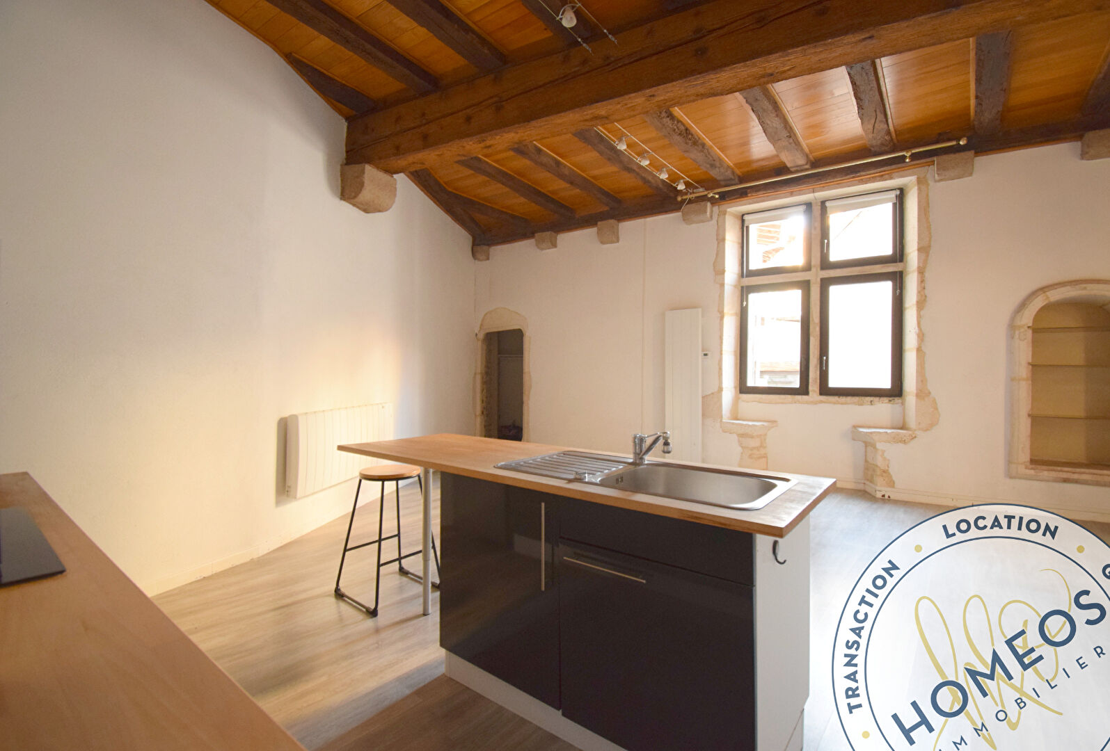 BOURG-EN-BRESSE - Rue Victor Basch - Au 1er étage d'une copropriété typiquement Burgienne à l'esprit traboule située en hypercentre, venez découvrir cet appartement type 2 plein de charme. Vous ne pourrez que tomber sous le charme de ce merveilleux cocon, partiellement meublé, alliant le cachet de l'ancien et les lignes modernes de ses équipements. Il se compose d'une spacieuse pièce à vivre comprenant une belle hauteur sous plafond avec sa cuisine ouverte avec ilot central, entièrement aménagée et équipée (plaques, hotte, réfrigérateur/congélateur, micro-onde, meubles, vaisselle). Coté nuit, vous trouverez une chambre avec rangement mais également une salle d'eau avec WC et emplacement lave-linge. Chauffage par convecteurs électriques haute performance. Libre pour début mars !